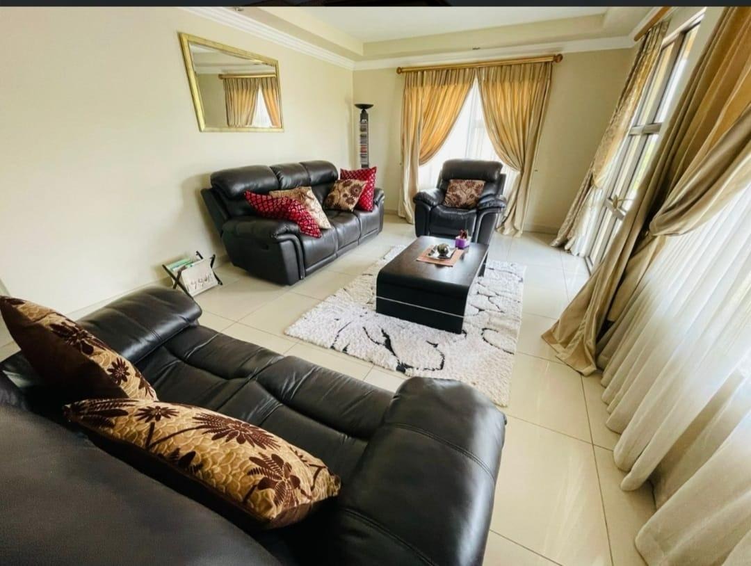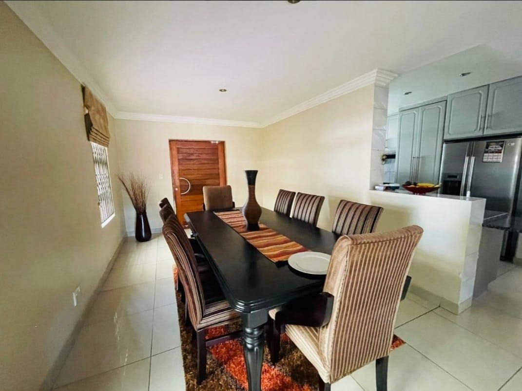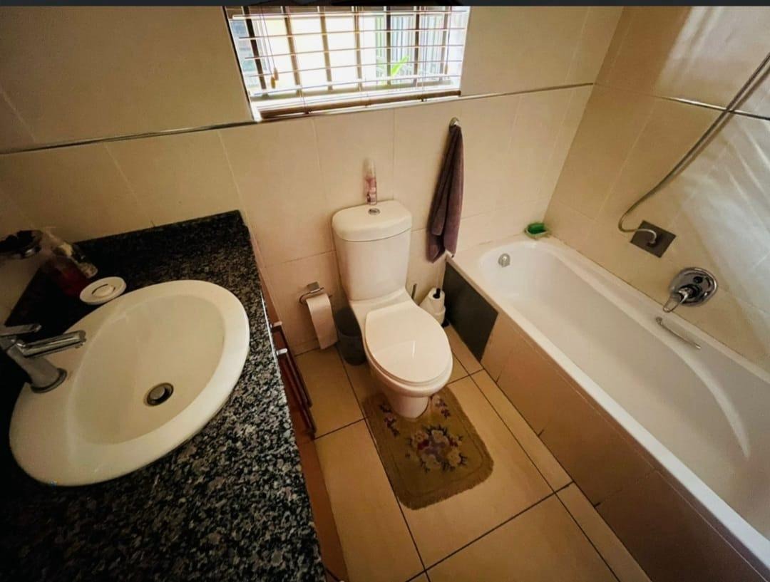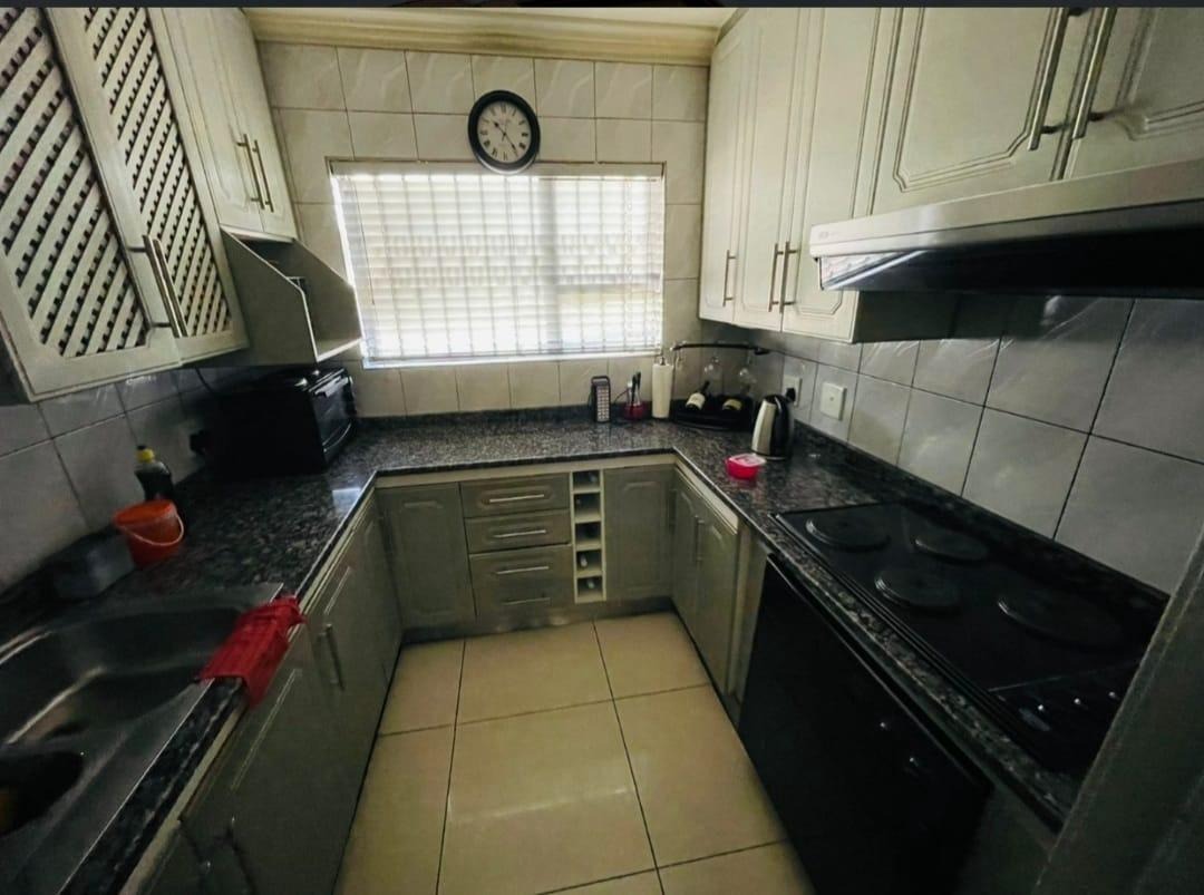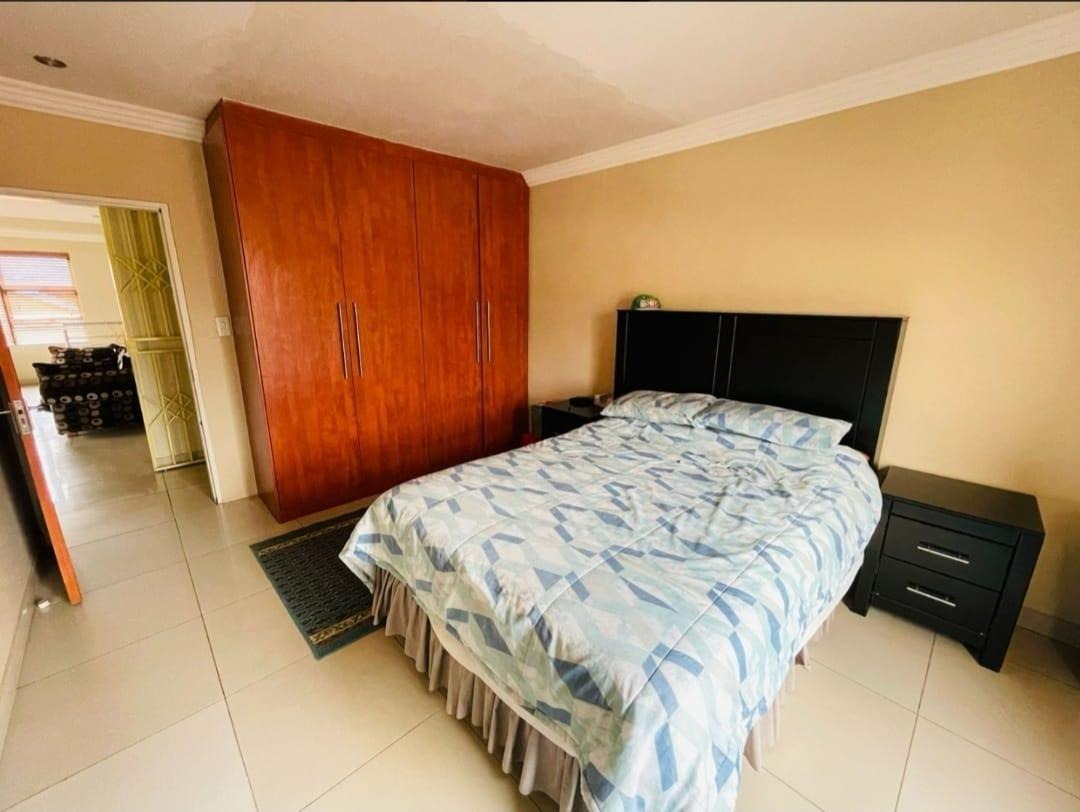 This spectacular property offers the perfect blend of luxury, space, and endless possibilities for a growing family located in Meredale, Johannesburg. The property offers five spacious bedrooms with built in cupboards and tiled flooring. The main bedroom offers his and hers walk-in-closets leading to the on suite bathroom with shower, bath, basin and toilet. The guest bedroom located downstairs has on suite bathroom with bath, shower, basin and toilet. There are two additional stunning full bathrooms one located downstairs and another one upstairs.