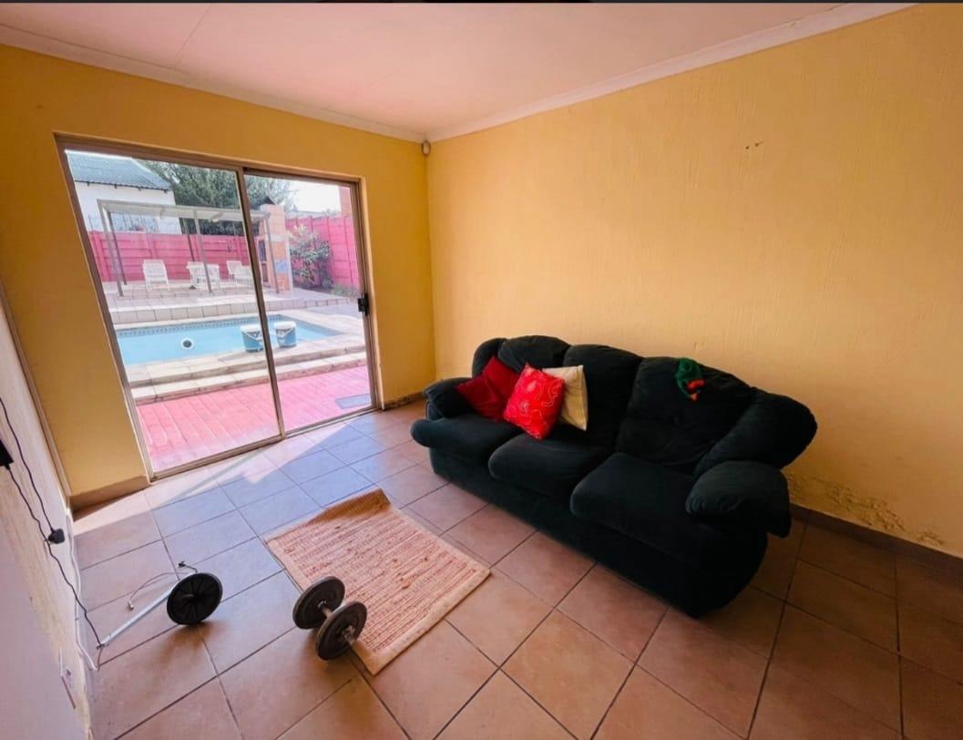PLUS A FULL FLATLET ..with bedroom, lounge, kitchen and bathroom. PLUS OFFICE ROOM…..PLUS LAUNDRY ROOM….The property also offers 4 car garages, well-maintained garden, a sparkling pool with lapa. Security includes alarm system, electric fence, security beams and burglar bars.
