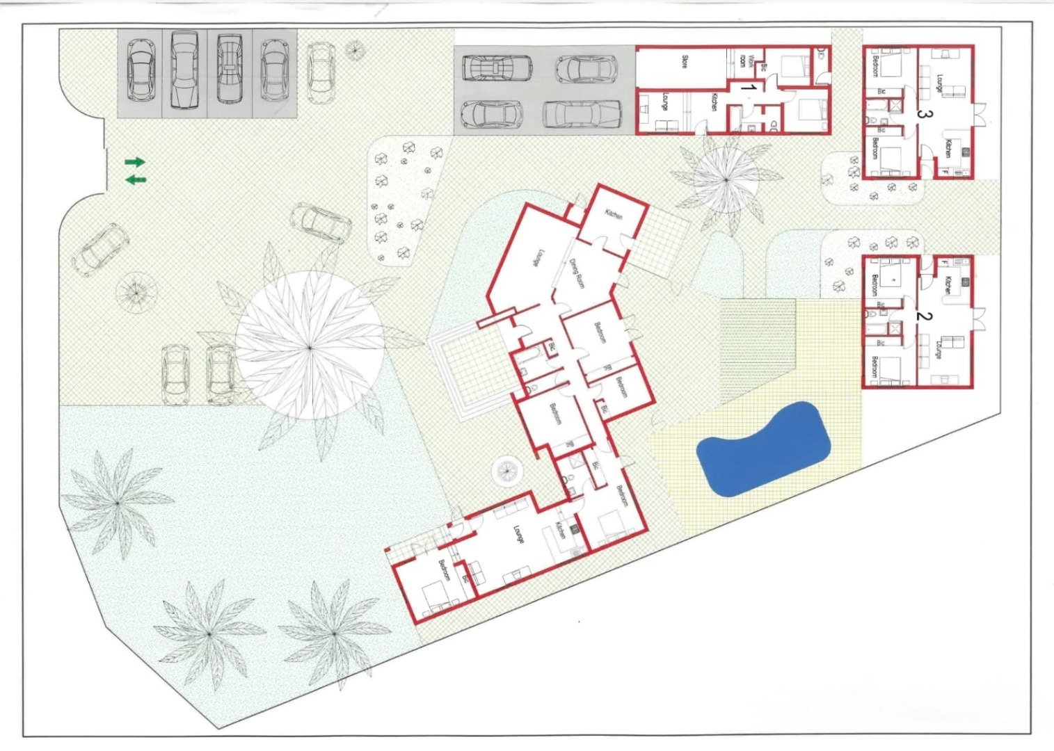 This property is perfectly suited for investors seeking multiple rental incomes or buyers looking for a spacious home with additional accommodation options. The generous outdoor areas and communal facilities enhance both lifestyle appeal and rental potential.