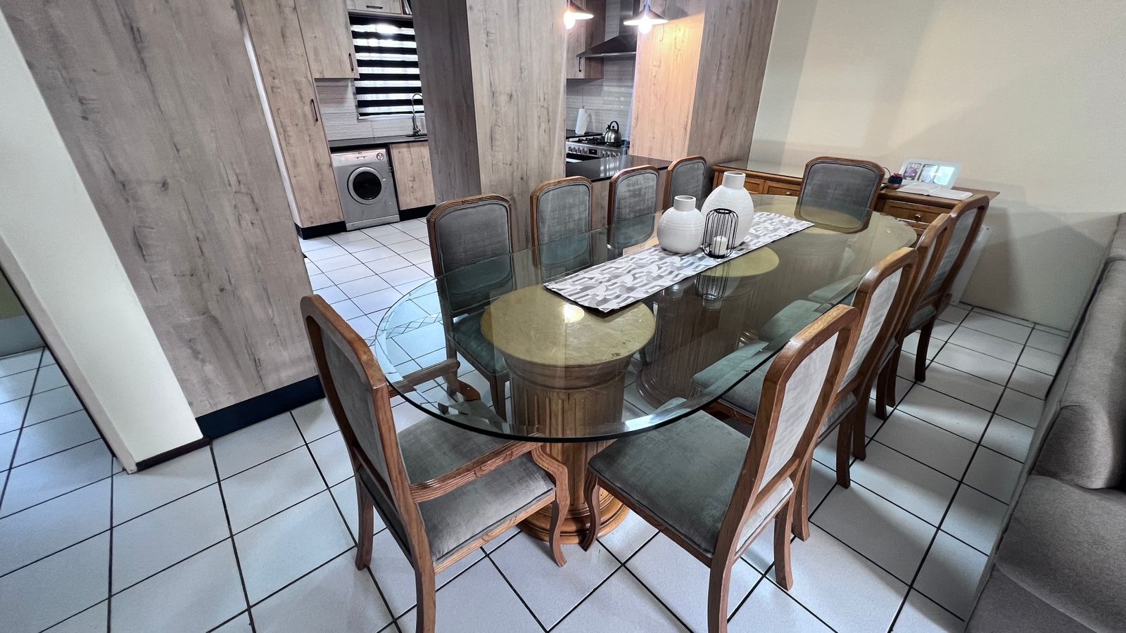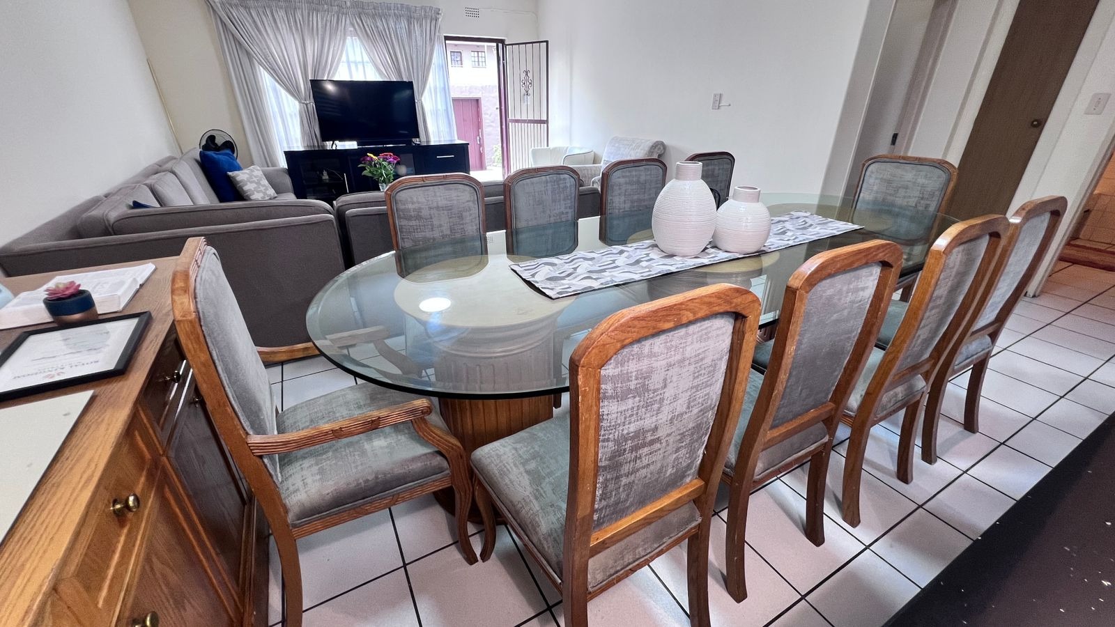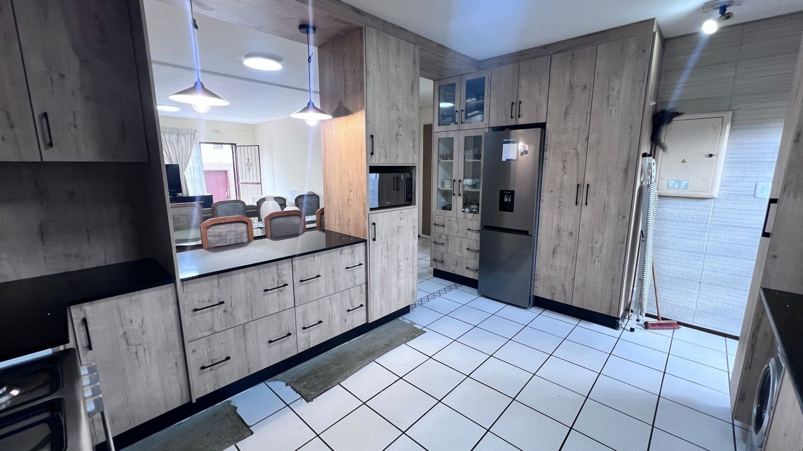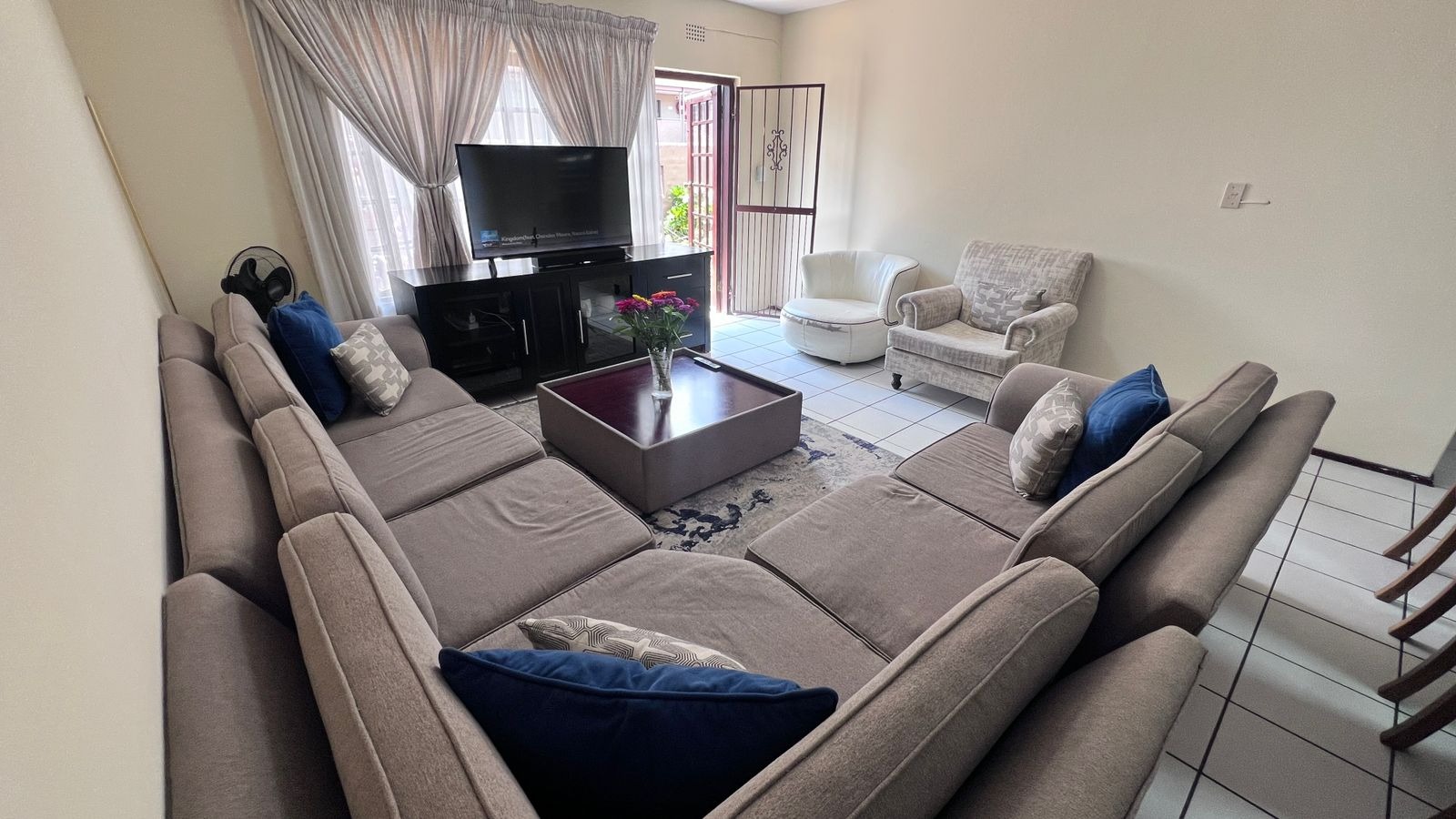Upon entry from the main access, you are welcomed by a generously sized private patio, ideal for outdoor seating and braai/BBQ entertaining. The patio leads into the apartment’s main entrance, opening into a spacious open-plan lounge and dining area, designed for relaxed everyday living.
