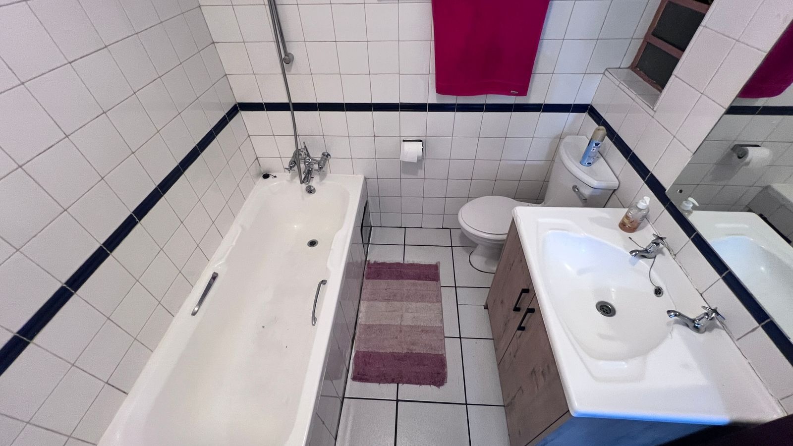Accommodation includes two well-sized bedrooms and one full bathroom fitted with a sink, toilet, and bathtub.