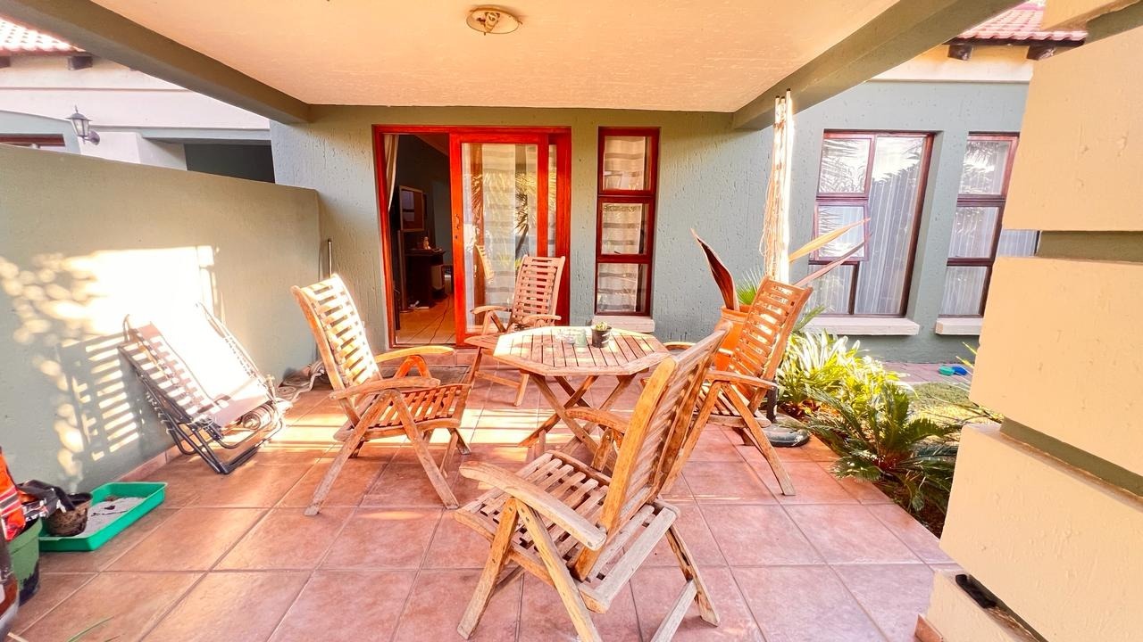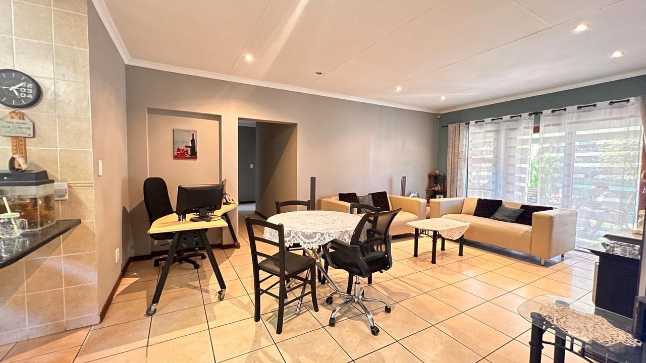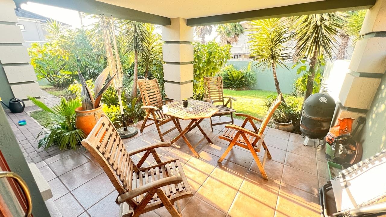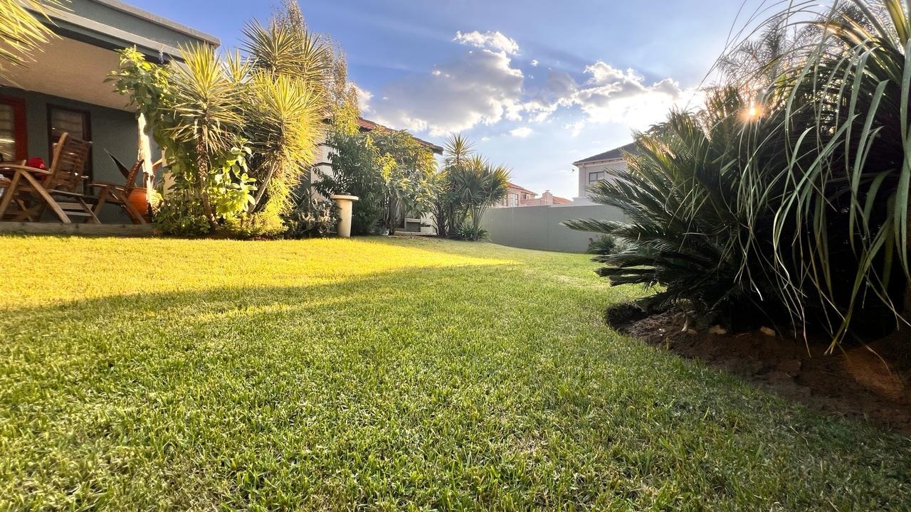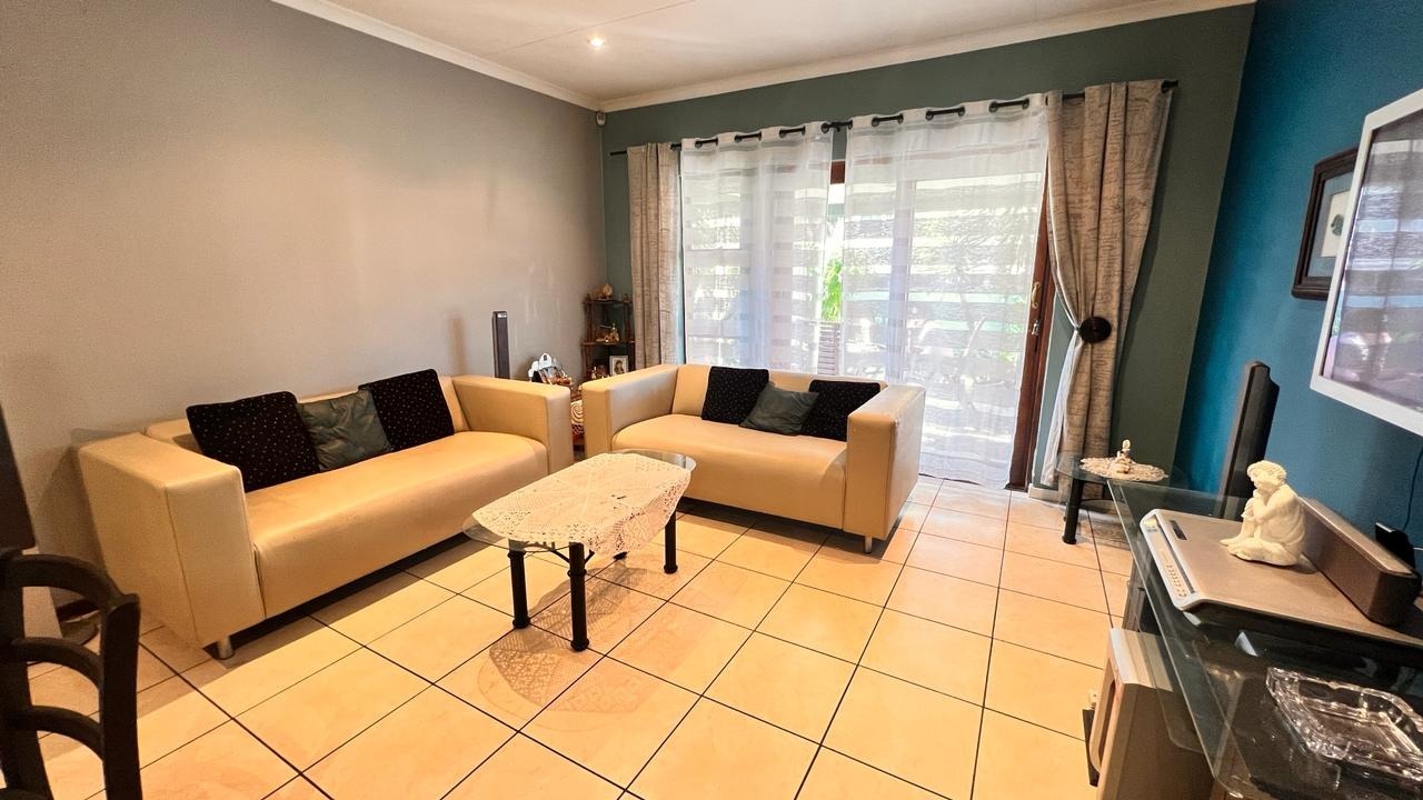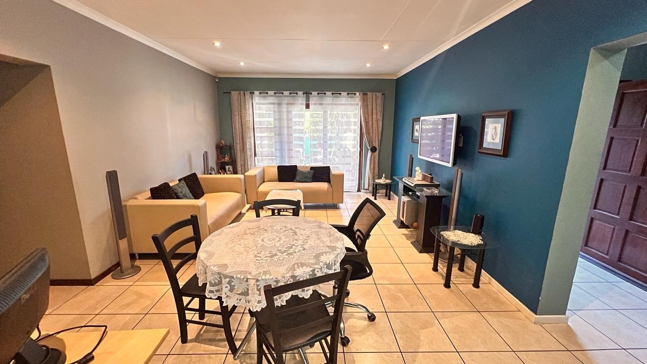 Large sliding doors extend the living area into a beautiful private garden, offering a tranquil outdoor setting perfect for family gatherings, weekend braais, children at play, or simply enjoying peaceful moments surrounded by greenery.
