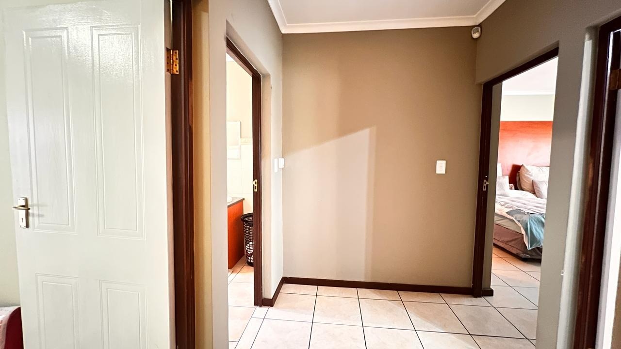 From the moment you arrive, this elegant home exudes a sense of warmth, sophistication, and effortless style. The property features three generously sized bedrooms and two immaculate bathrooms, including a private main en-suite complemented by a spacious walk-in cupboard, creating a serene retreat for the homeowner.
