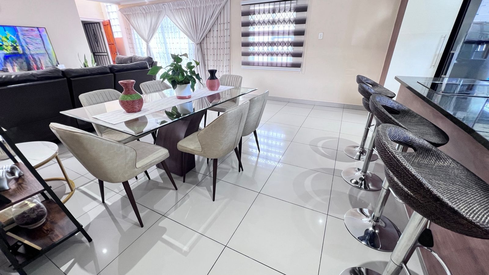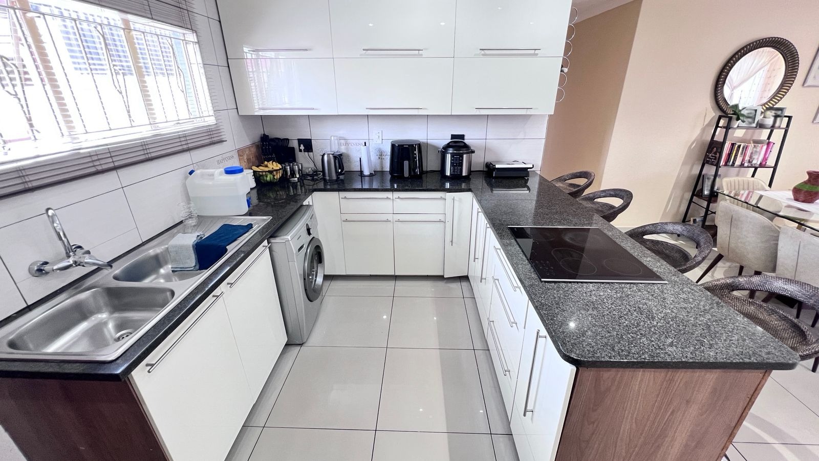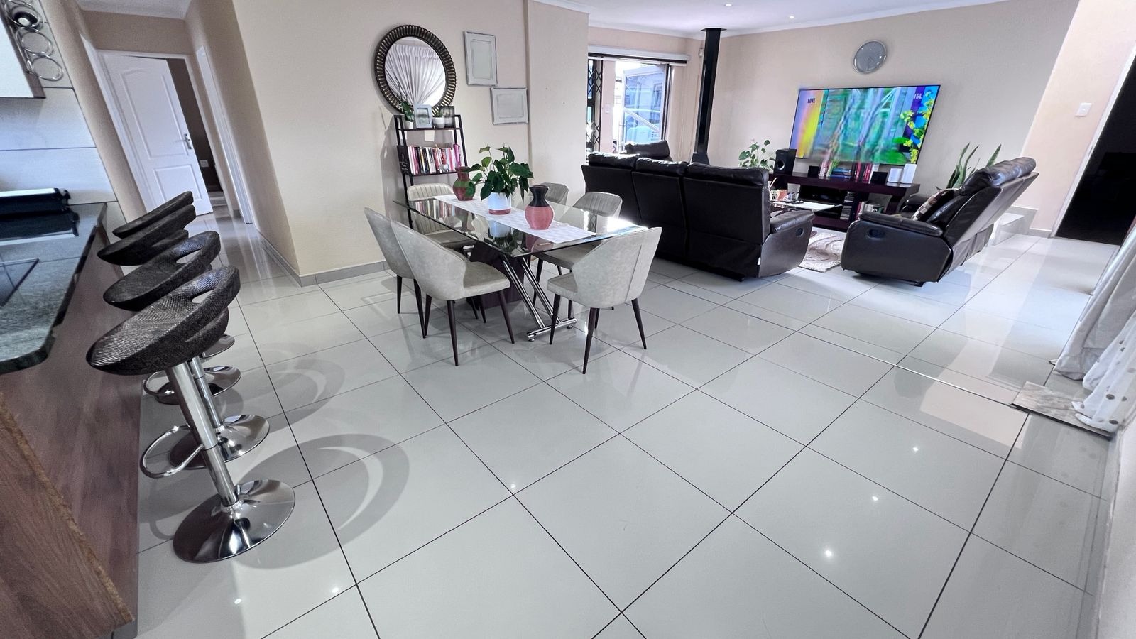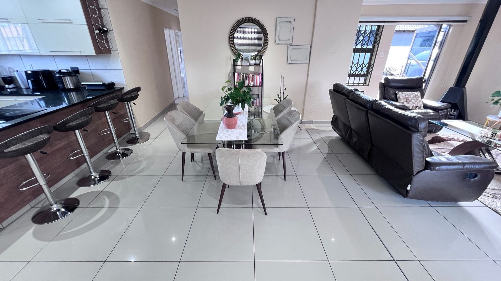 The spacious yard offers great flexibility — it can comfortably park multiple cars or be transformed into a wonderful family entertainment area for gatherings and special occasions. Vehicles can also park outside, allowing the yard to be fully enjoyed for hosting. The backyard garden provides another excellent space for braais, celebrations, or relaxed family time.