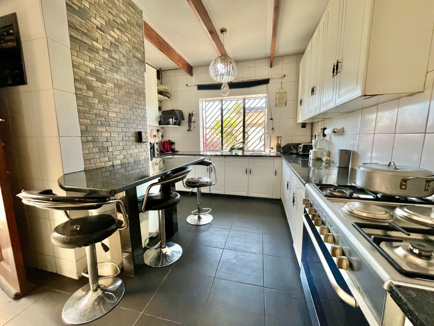 Enjoy leisurely afternoons around the swimming pool, or gather under the covered braai area, perfect for traditional get-togethers in any season. A separate guest suite offers privacy and comfort for visiting family or friends.
