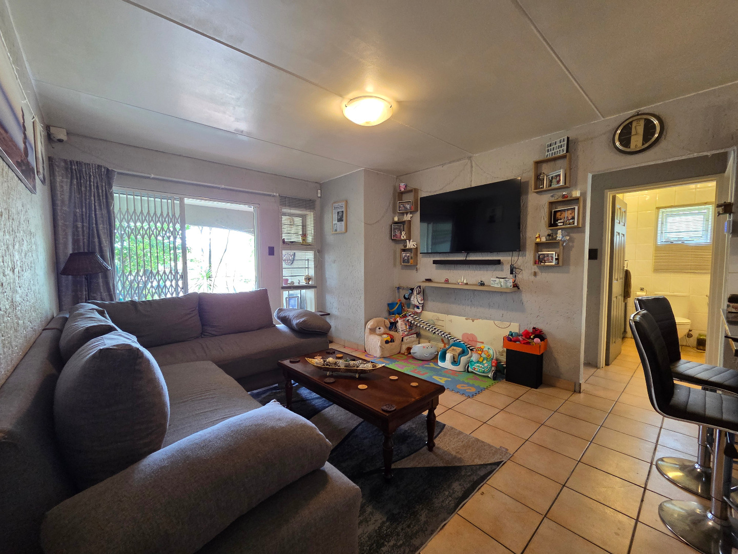 The open-plan kitchen and lounge are finished in a clean, modern style and create a comfortable everyday living space. The layout flows effortlessly onto a covered patio, extending the living area outdoors and allowing seamless access to the expansive garden.