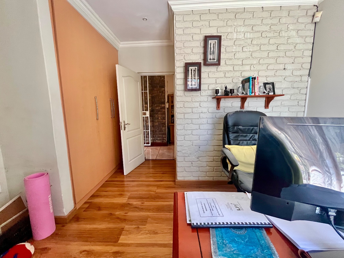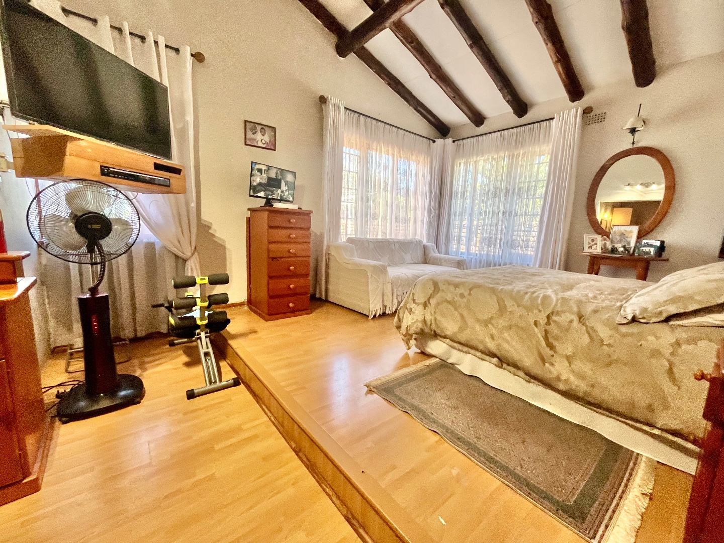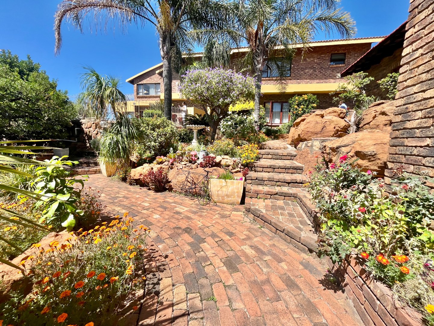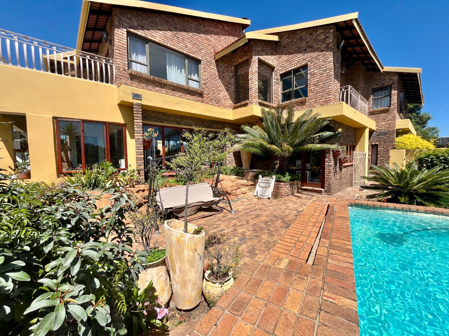 Discover this expansive five-bedroom family home nestled in the desirable suburban area of Ridgeway, Johannesburg. Boasting a generous 430 sqm under roof on a 1010 sqm erf, this multi-story residence offers ample space for comfortable living and entertaining. The interior features three spacious lounges, a dedicated dining room, and two well-appointed kitchens, providing flexibility for various lifestyle needs. Enjoy the warmth of a fireplace and the convenience of a family TV room. Architectural details like tiled and hardwood flooring, along with charming brick accent walls and crown molding, add character throughout the home, including a dedicated study and laundry room. Accommodation comprises five bedrooms and three and a half bathrooms, including three en-suite facilities and a guest toilet. Bedrooms offer comfortable retreats, some featuring exposed wooden ceiling beams and wood-look flooring, complemented by ample closet space. Step outside to a private oasis featuring a sparkling swimming pool, an expansive brick-paved patio, and a lush, established garden with scenic views. The property also includes a braai room, balconies, two garages, and six additional parking spaces, making it ideal for hosting. Pets are welcome. This home is equipped with practical sustainability features, including a borehole, solar panels, and a battery inverter, ensuring reduced utility costs and energy independence. An access gate enhances security, while domestic rooms and outside toilets provide added convenience. Key Features: * 5 Bedrooms, 3.5 Bathrooms (3 En-suite) * 3 Lounges, 1 Dining Room, 2 Kitchens * Private Swimming Pool & Braai Room * Study, Laundry, Storage, Domestic Rooms * Borehole, Solar Panels & Battery Inverter * 2 Garages, 6 Parking Spaces * Scenic Views & Established Garden * Access Gate & Pet-Friendly