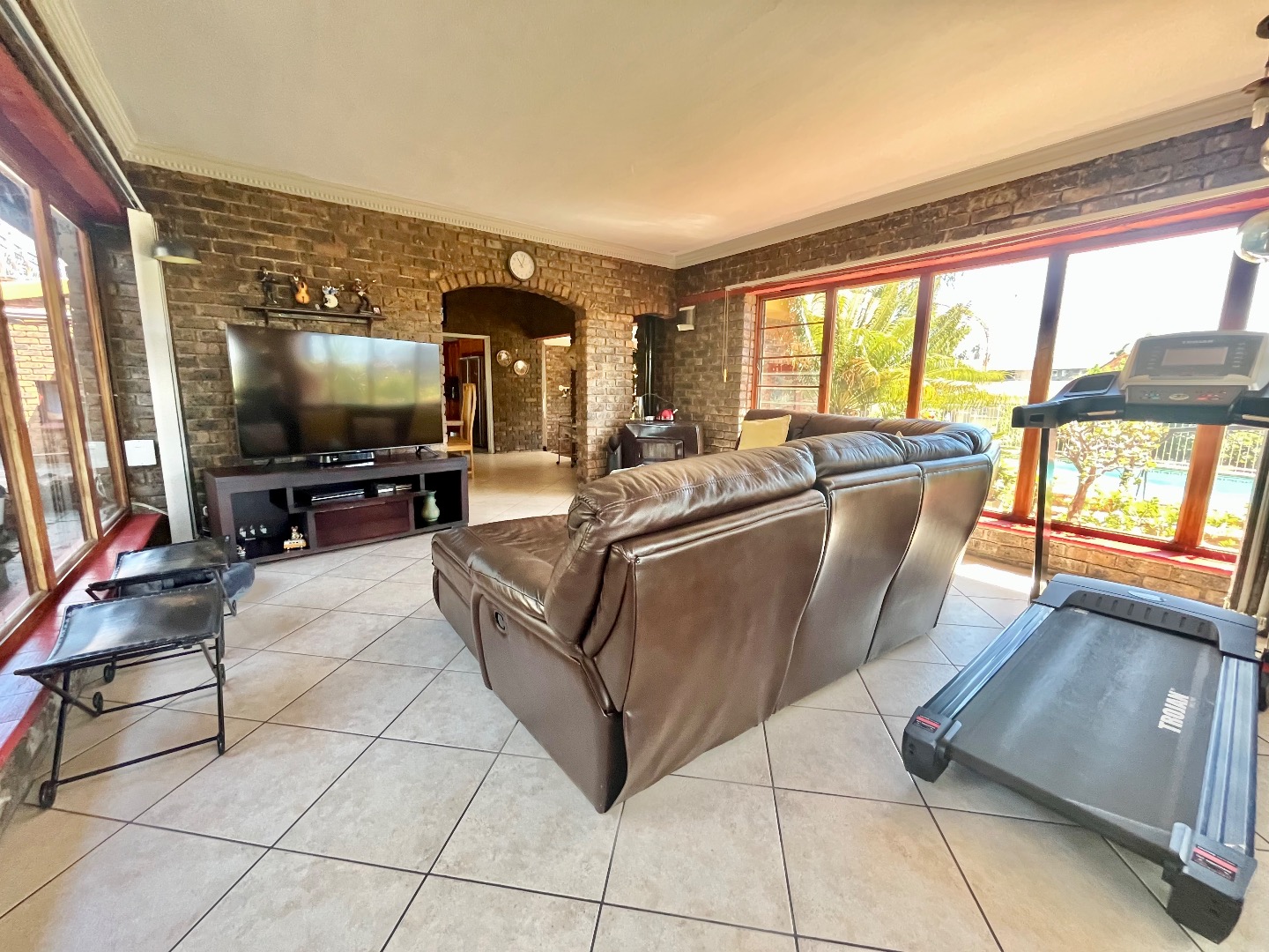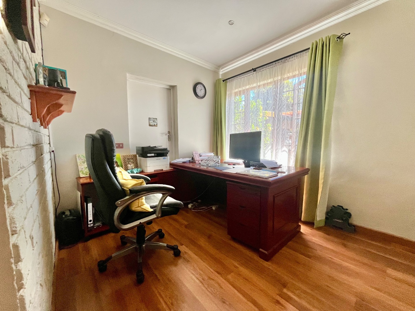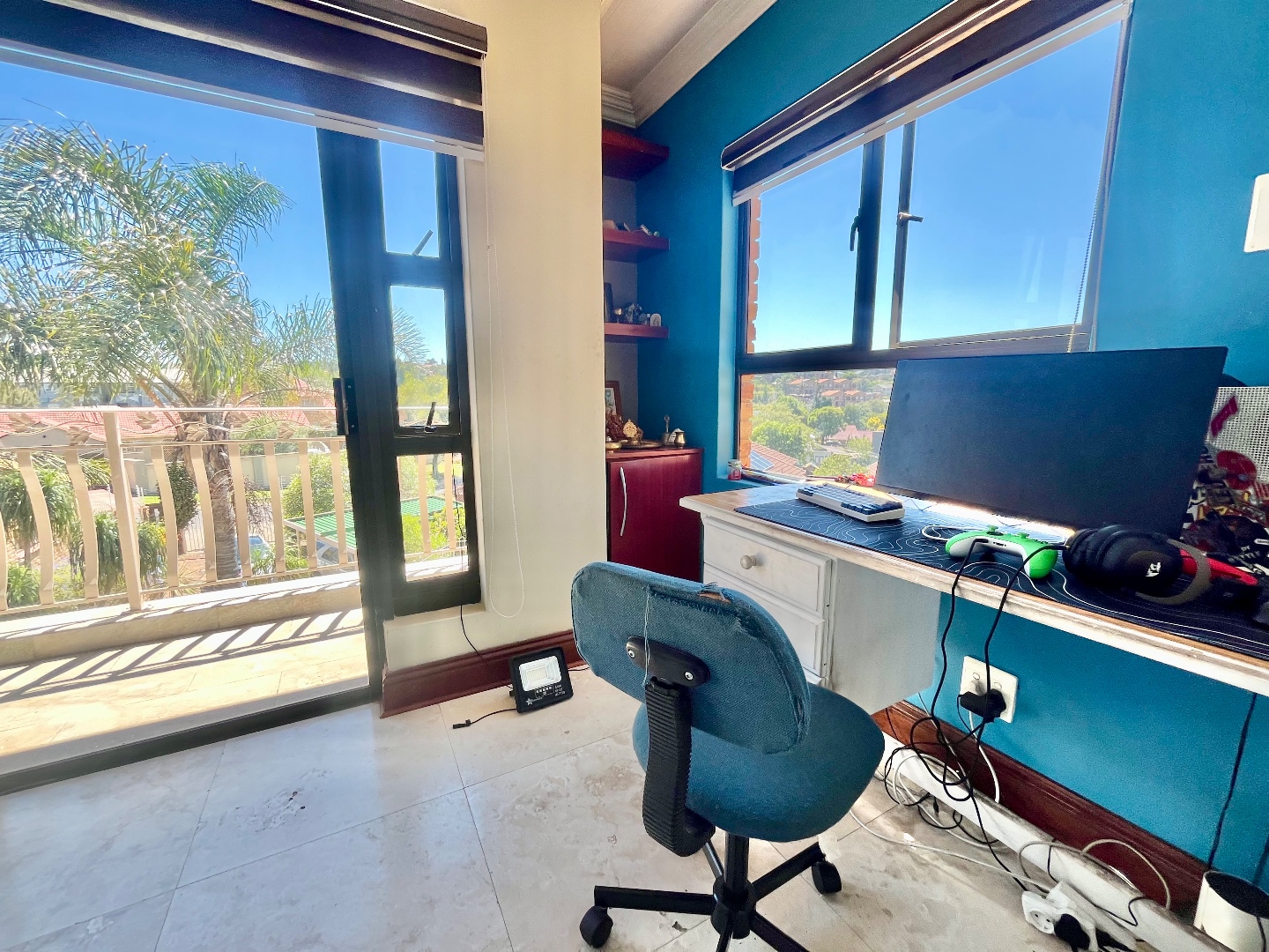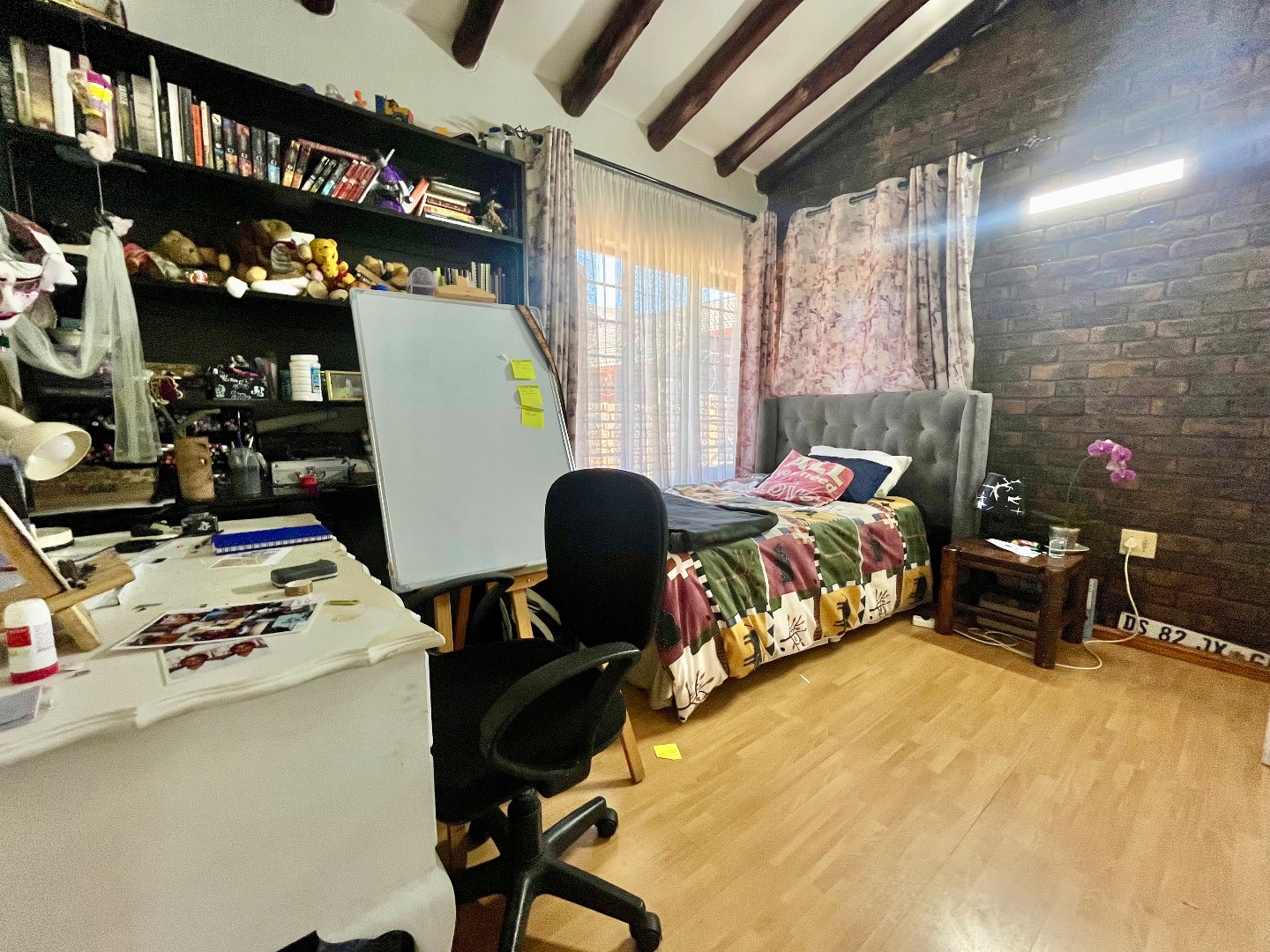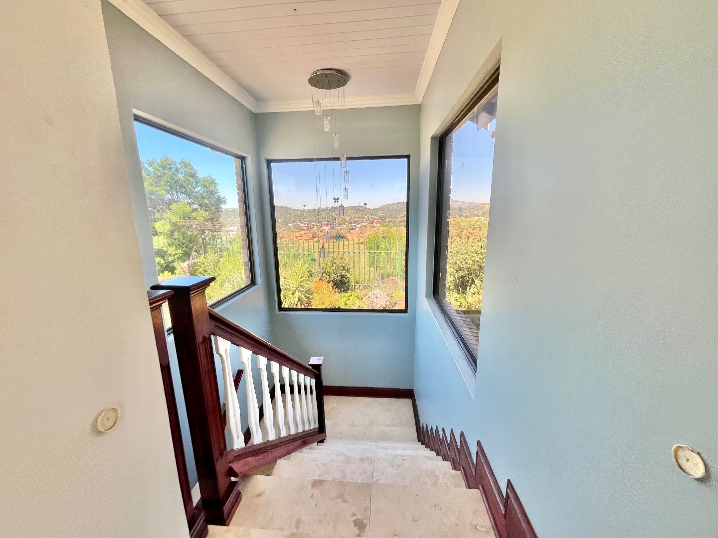 Discover this expansive five-bedroom family home nestled in the desirable suburban area of Ridgeway, Johannesburg. Boasting a generous 430 sqm under roof on a 1010 sqm erf, this multi-story residence offers ample space for comfortable living and entertaining. The interior features three spacious lounges, a dedicated dining room, and two well-appointed kitchens, providing flexibility for various lifestyle needs. Enjoy the warmth of a fireplace and the convenience of a family TV room. Architectural details like tiled and hardwood flooring, along with charming brick accent walls and crown molding, add character throughout the home, including a dedicated study and laundry room. Accommodation comprises five bedrooms and three and a half bathrooms, including three en-suite facilities and a guest toilet. Bedrooms offer comfortable retreats, some featuring exposed wooden ceiling beams and wood-look flooring, complemented by ample closet space. Step outside to a private oasis featuring a sparkling swimming pool, an expansive brick-paved patio, and a lush, established garden with scenic views. The property also includes a braai room, balconies, two garages, and six additional parking spaces, making it ideal for hosting. Pets are welcome. This home is equipped with practical sustainability features, including a borehole, solar panels, and a battery inverter, ensuring reduced utility costs and energy independence. An access gate enhances security, while domestic rooms and outside toilets provide added convenience. Key Features: * 5 Bedrooms, 3.5 Bathrooms (3 En-suite) * 3 Lounges, 1 Dining Room, 2 Kitchens * Private Swimming Pool & Braai Room * Study, Laundry, Storage, Domestic Rooms * Borehole, Solar Panels & Battery Inverter * 2 Garages, 6 Parking Spaces * Scenic Views & Established Garden * Access Gate & Pet-Friendly