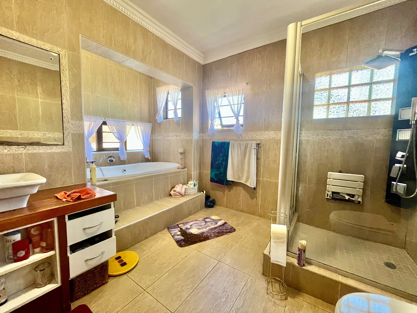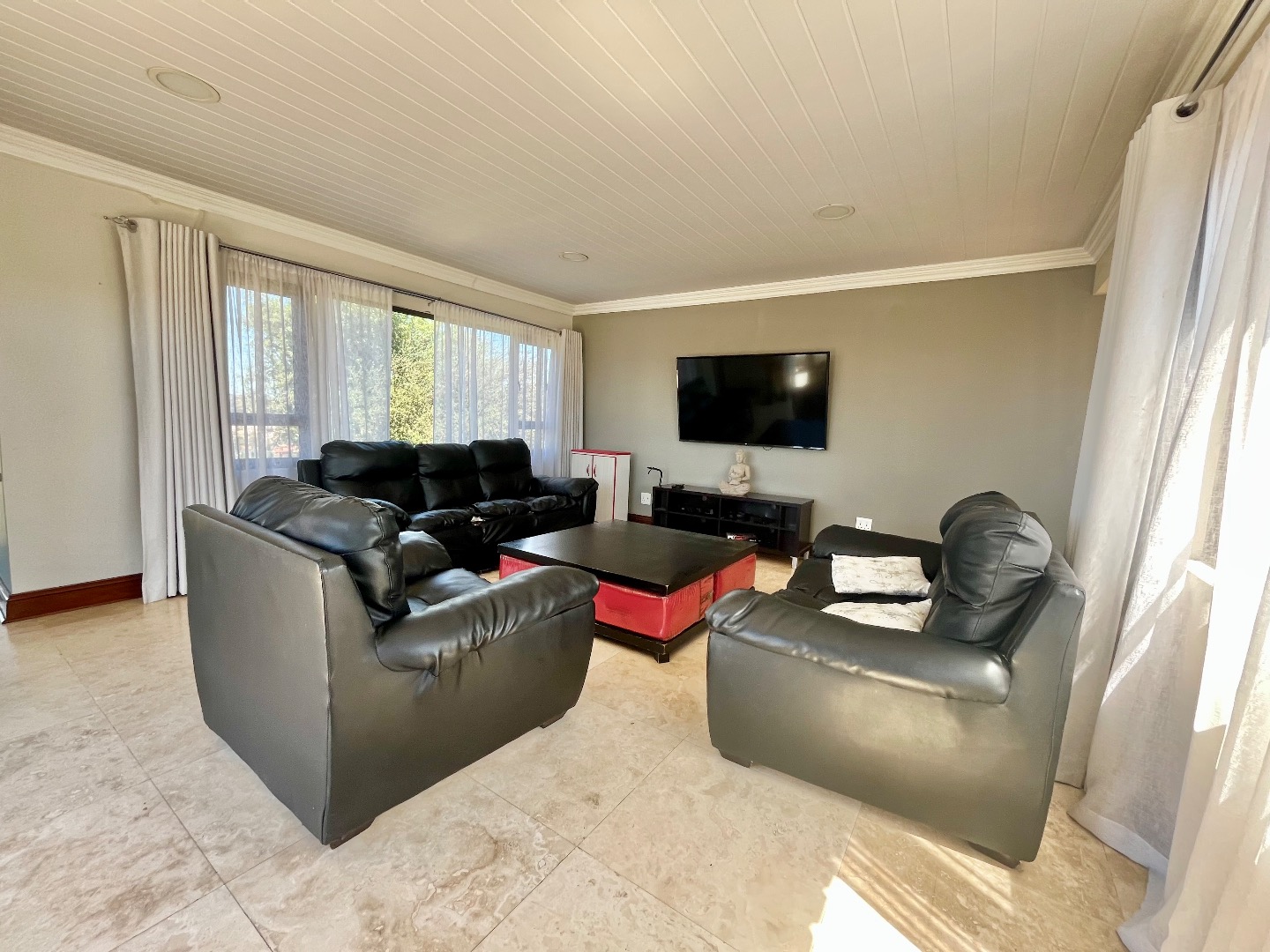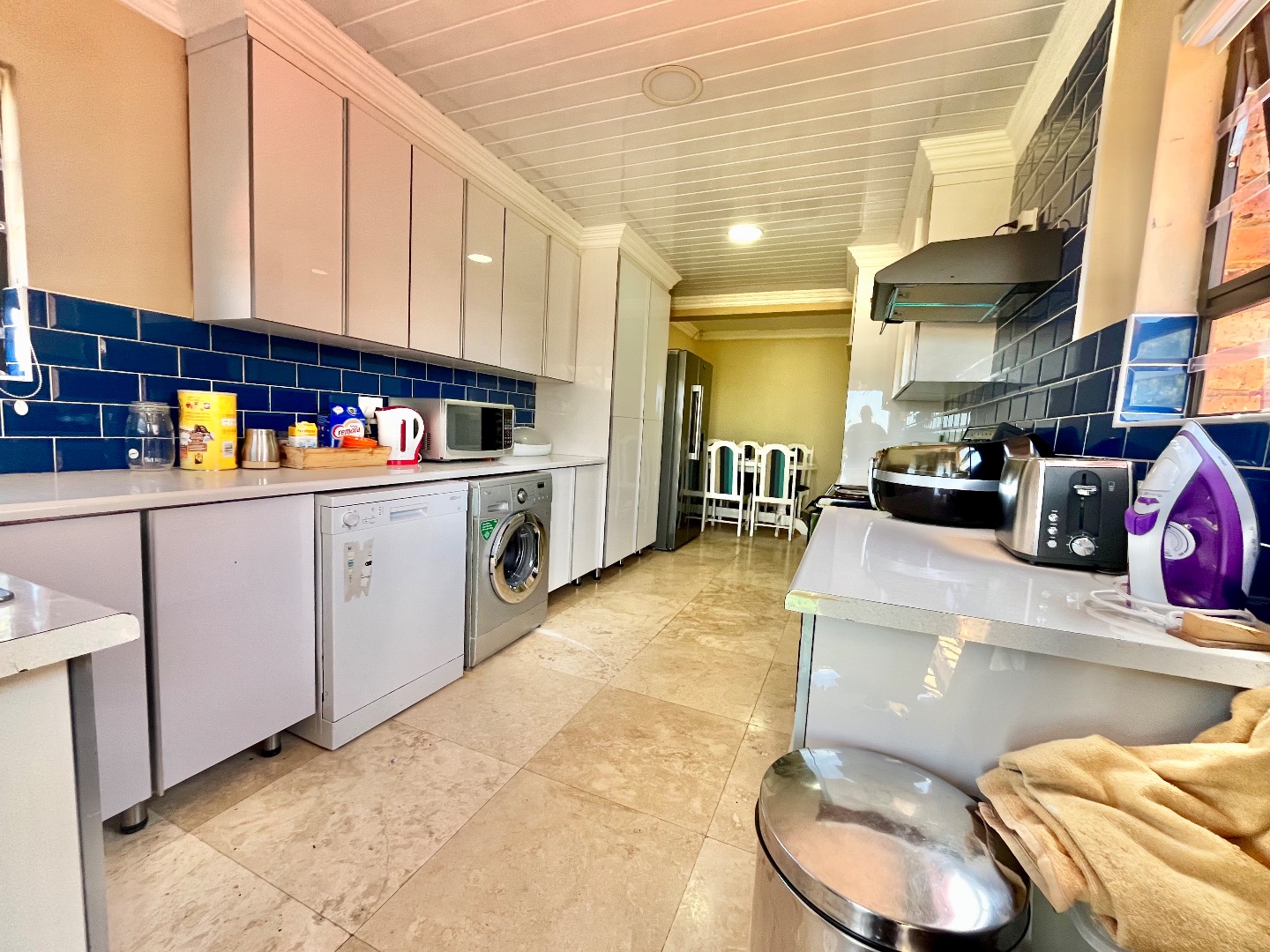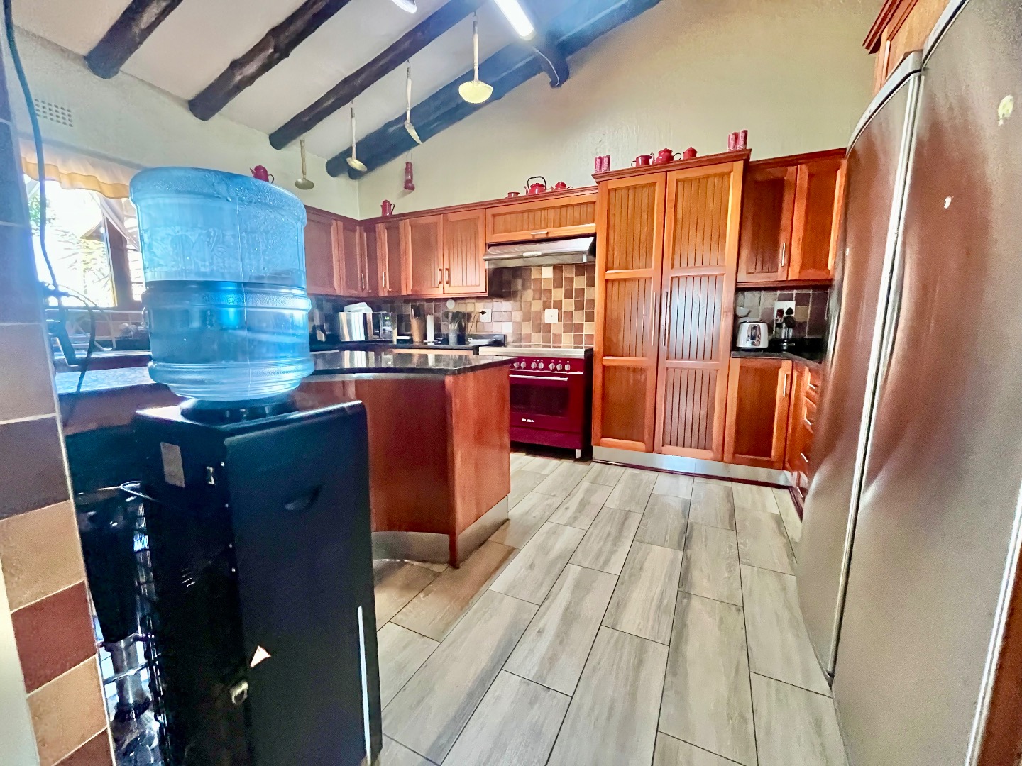 Discover this expansive five-bedroom family home nestled in the desirable suburban area of Ridgeway, Johannesburg. Boasting a generous 430 sqm under roof on a 1010 sqm erf, this multi-story residence offers ample space for comfortable living and entertaining. The interior features three spacious lounges, a dedicated dining room, and two well-appointed kitchens, providing flexibility for various lifestyle needs. Enjoy the warmth of a fireplace and the convenience of a family TV room. Architectural details like tiled and hardwood flooring, along with charming brick accent walls and crown molding, add character throughout the home, including a dedicated study and laundry room. Accommodation comprises five bedrooms and three and a half bathrooms, including three en-suite facilities and a guest toilet. Bedrooms offer comfortable retreats, some featuring exposed wooden ceiling beams and wood-look flooring, complemented by ample closet space. Step outside to a private oasis featuring a sparkling swimming pool, an expansive brick-paved patio, and a lush, established garden with scenic views. The property also includes a braai room, balconies, two garages, and six additional parking spaces, making it ideal for hosting. Pets are welcome. This home is equipped with practical sustainability features, including a borehole, solar panels, and a battery inverter, ensuring reduced utility costs and energy independence. An access gate enhances security, while domestic rooms and outside toilets provide added convenience. Key Features: * 5 Bedrooms, 3.5 Bathrooms (3 En-suite) * 3 Lounges, 1 Dining Room, 2 Kitchens * Private Swimming Pool & Braai Room * Study, Laundry, Storage, Domestic Rooms * Borehole, Solar Panels & Battery Inverter * 2 Garages, 6 Parking Spaces * Scenic Views & Established Garden * Access Gate & Pet-Friendly