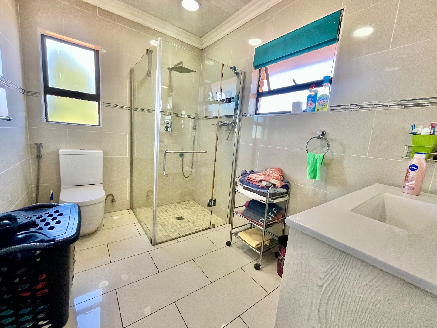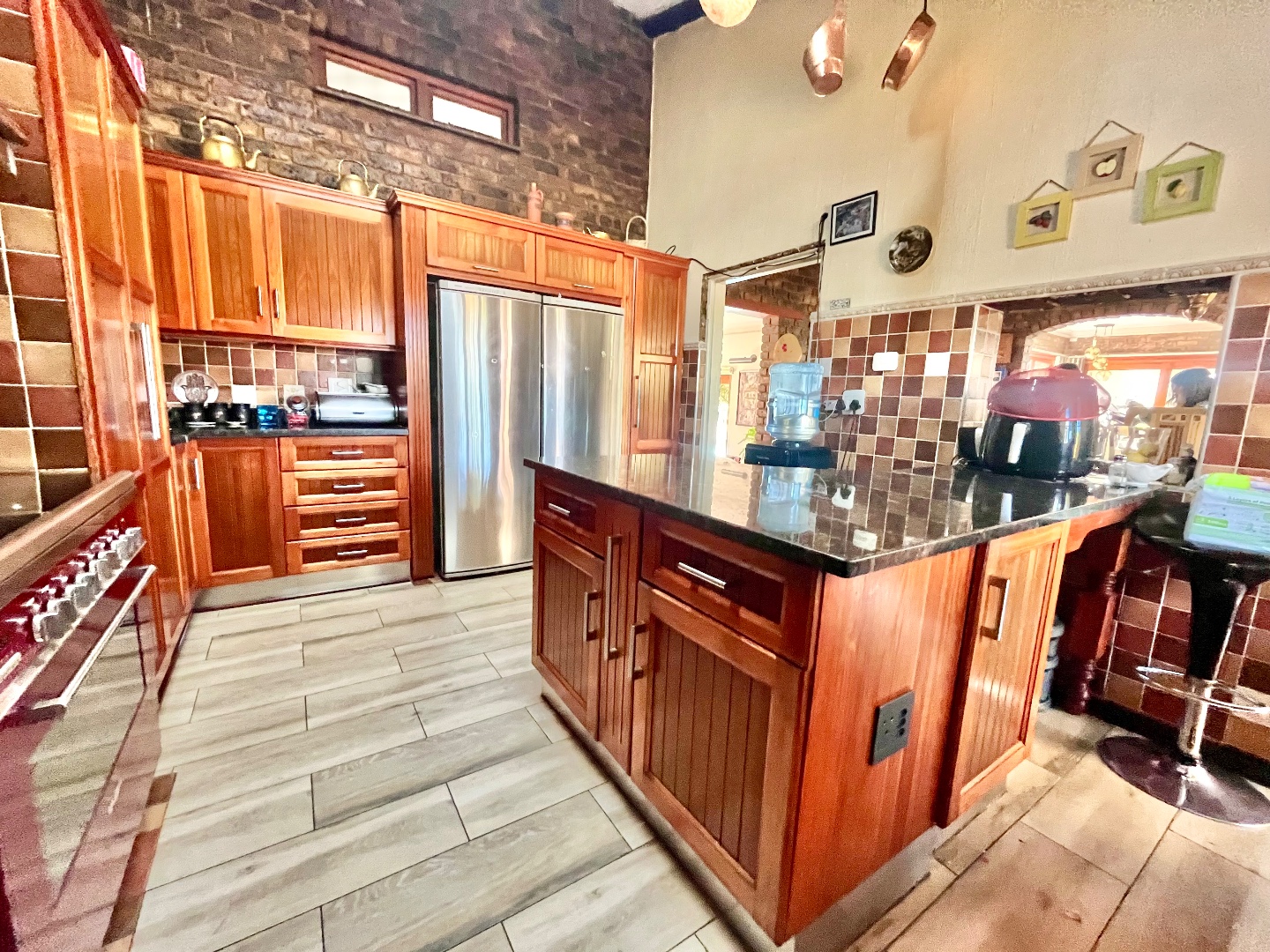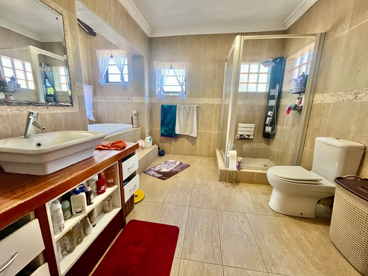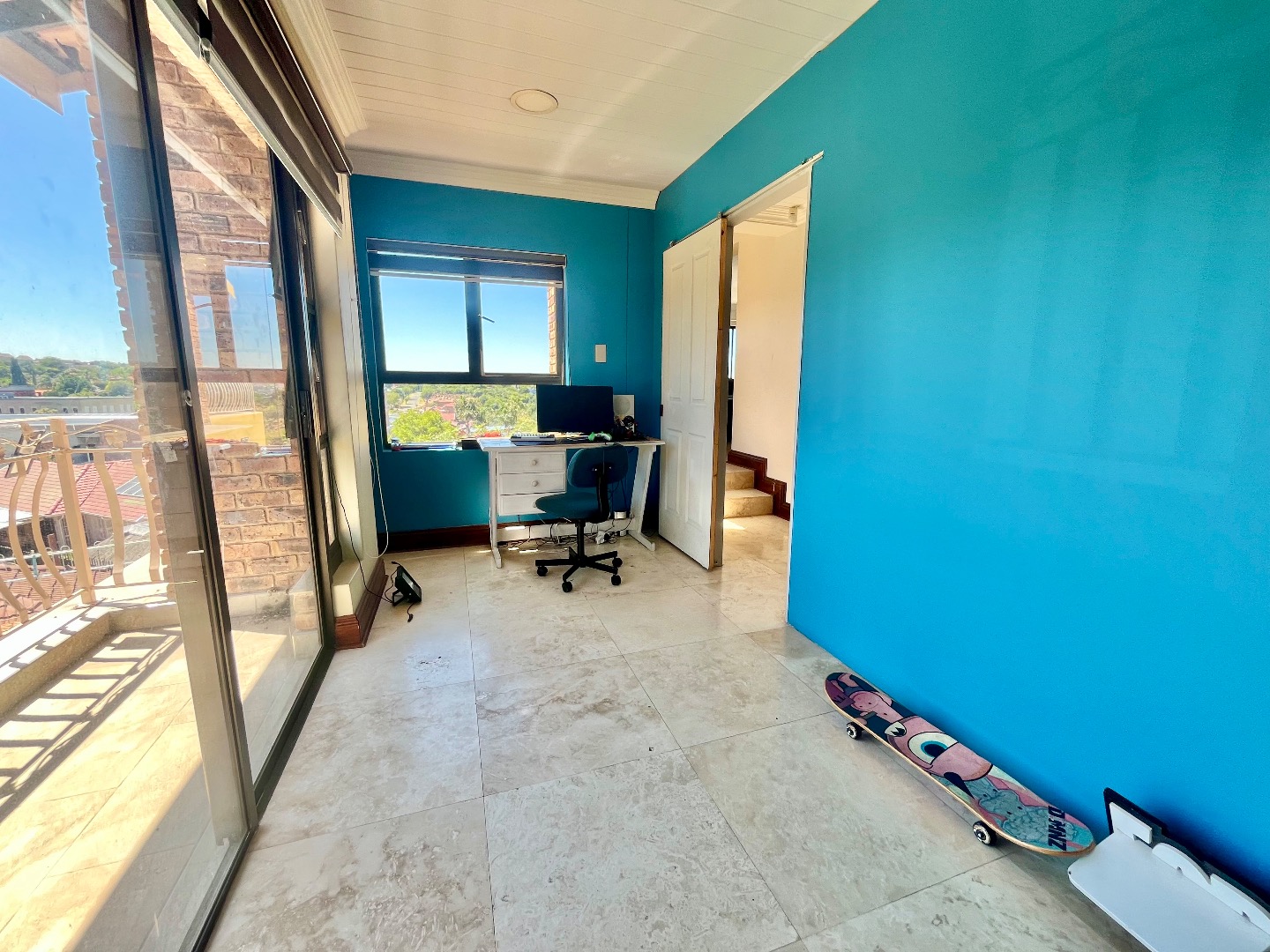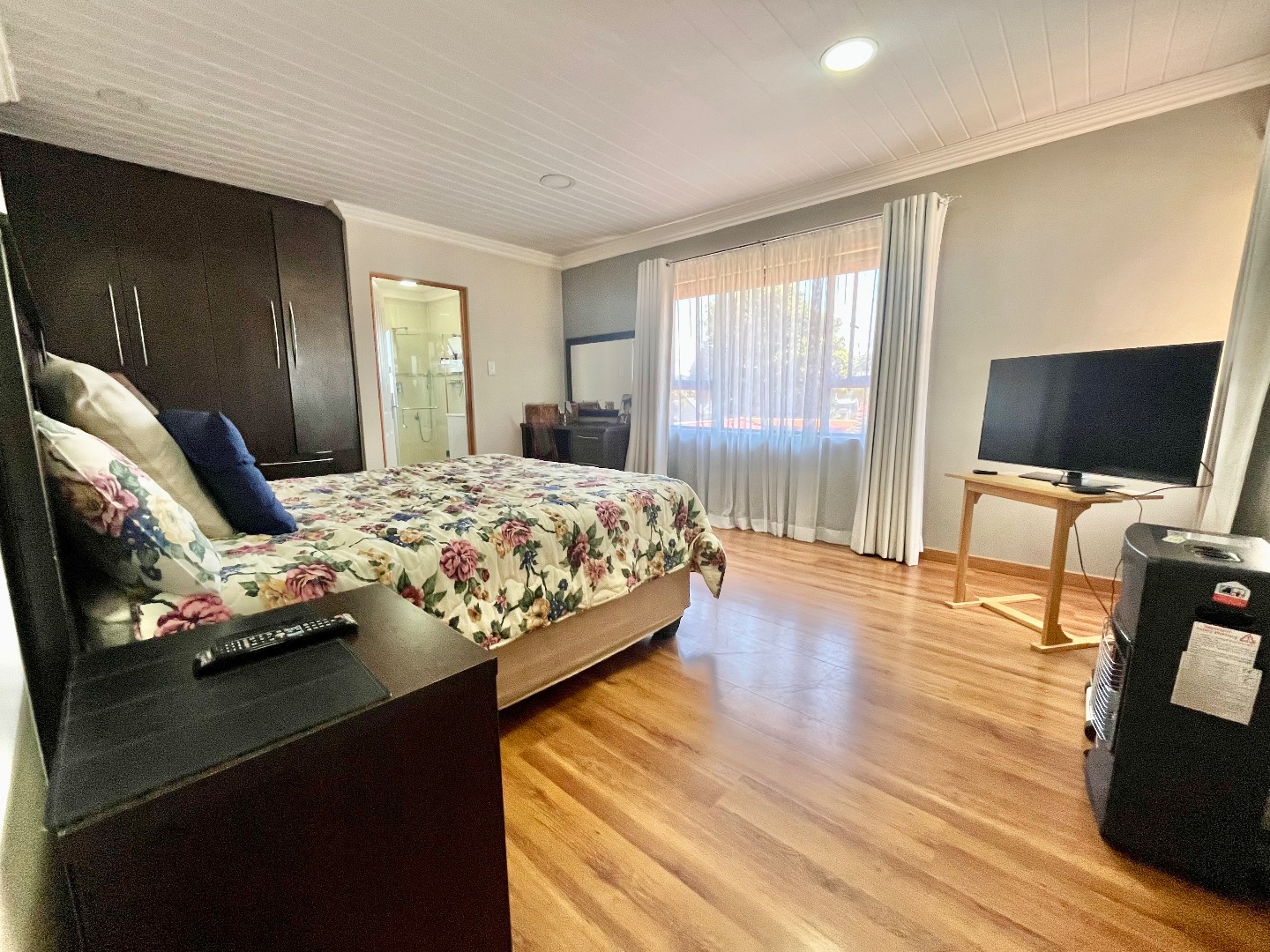Discover this expansive five-bedroom family home nestled in the desirable suburban area of Ridgeway, Johannesburg. Boasting a generous 430 sqm under roof on a 1010 sqm erf, this multi-story residence offers ample space for comfortable living and entertaining. The interior features three spacious lounges, a dedicated dining room, and two well-appointed kitchens, providing flexibility for various lifestyle needs. Enjoy the warmth of a fireplace and the convenience of a family TV room. Architectural details like tiled and hardwood flooring, along with charming brick accent walls and crown molding, add character throughout the home, including a dedicated study and laundry room. Accommodation comprises five bedrooms and three and a half bathrooms, including three en-suite facilities and a guest toilet. Bedrooms offer comfortable retreats, some featuring exposed wooden ceiling beams and wood-look flooring, complemented by ample closet space. Step outside to a private oasis featuring a sparkling swimming pool, an expansive brick-paved patio, and a lush, established garden with scenic views. The property also includes a braai room, balconies, two garages, and six additional parking spaces, making it ideal for hosting. Pets are welcome. This home is equipped with practical sustainability features, including a borehole, solar panels, and a battery inverter, ensuring reduced utility costs and energy independence. An access gate enhances security, while domestic rooms and outside toilets provide added convenience. Key Features: * 5 Bedrooms, 3.5 Bathrooms (3 En-suite) * 3 Lounges, 1 Dining Room, 2 Kitchens * Private Swimming Pool & Braai Room * Study, Laundry, Storage, Domestic Rooms * Borehole, Solar Panels & Battery Inverter * 2 Garages, 6 Parking Spaces * Scenic Views & Established Garden * Access Gate & Pet-Friendly