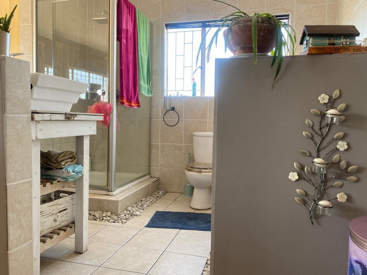 The home boasts three generously sized bedrooms, with the main bedroom located upstairs and featuring its own en suite bathroom for added privacy. The second bedroom also includes an en suite, offering convenience for guests or family members. A third full bathroom serves the rest of the home. Outside, a charming lapa next to the splash pool provides the perfect setting for summer entertaining or quiet outdoor retreats.