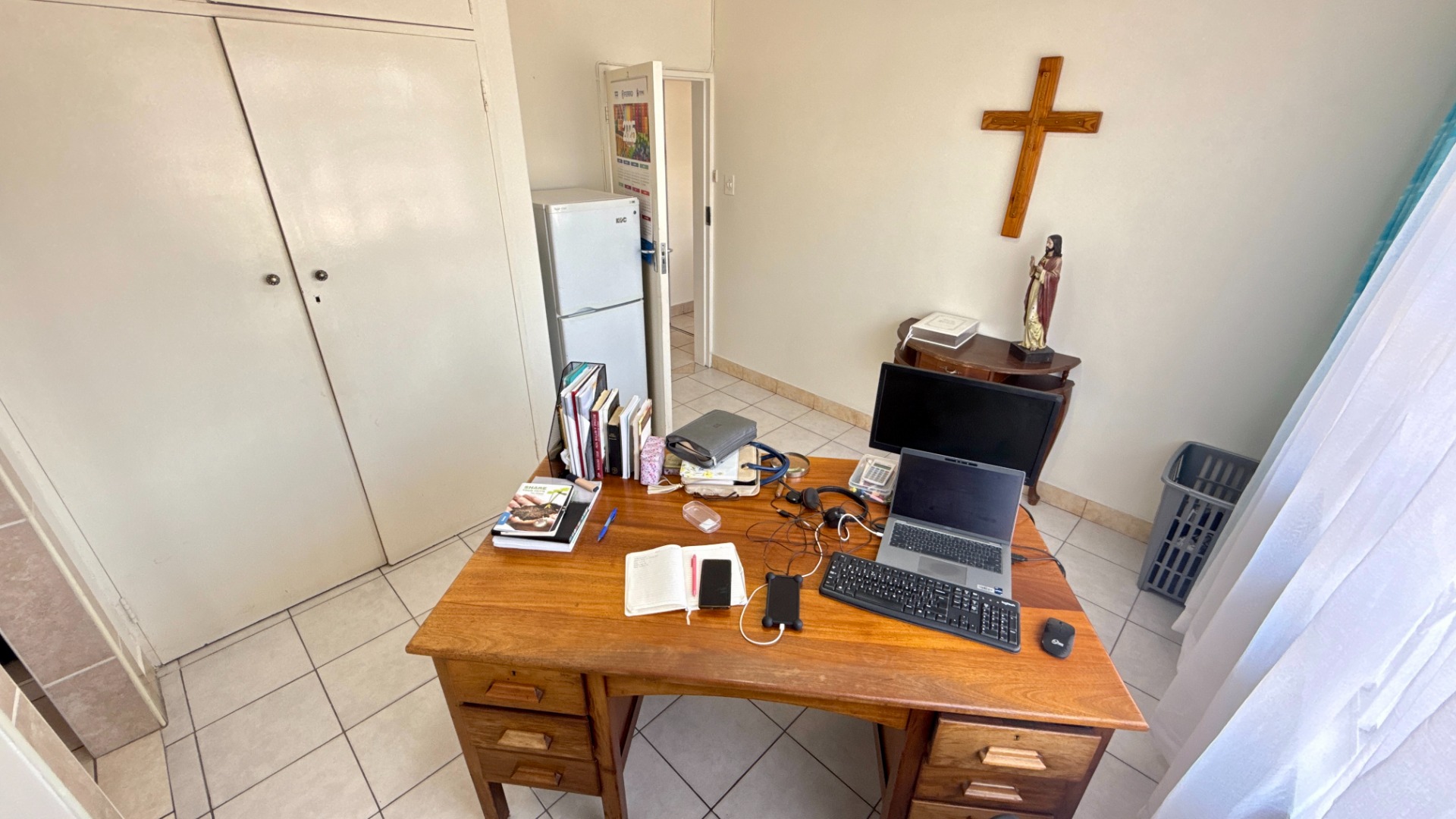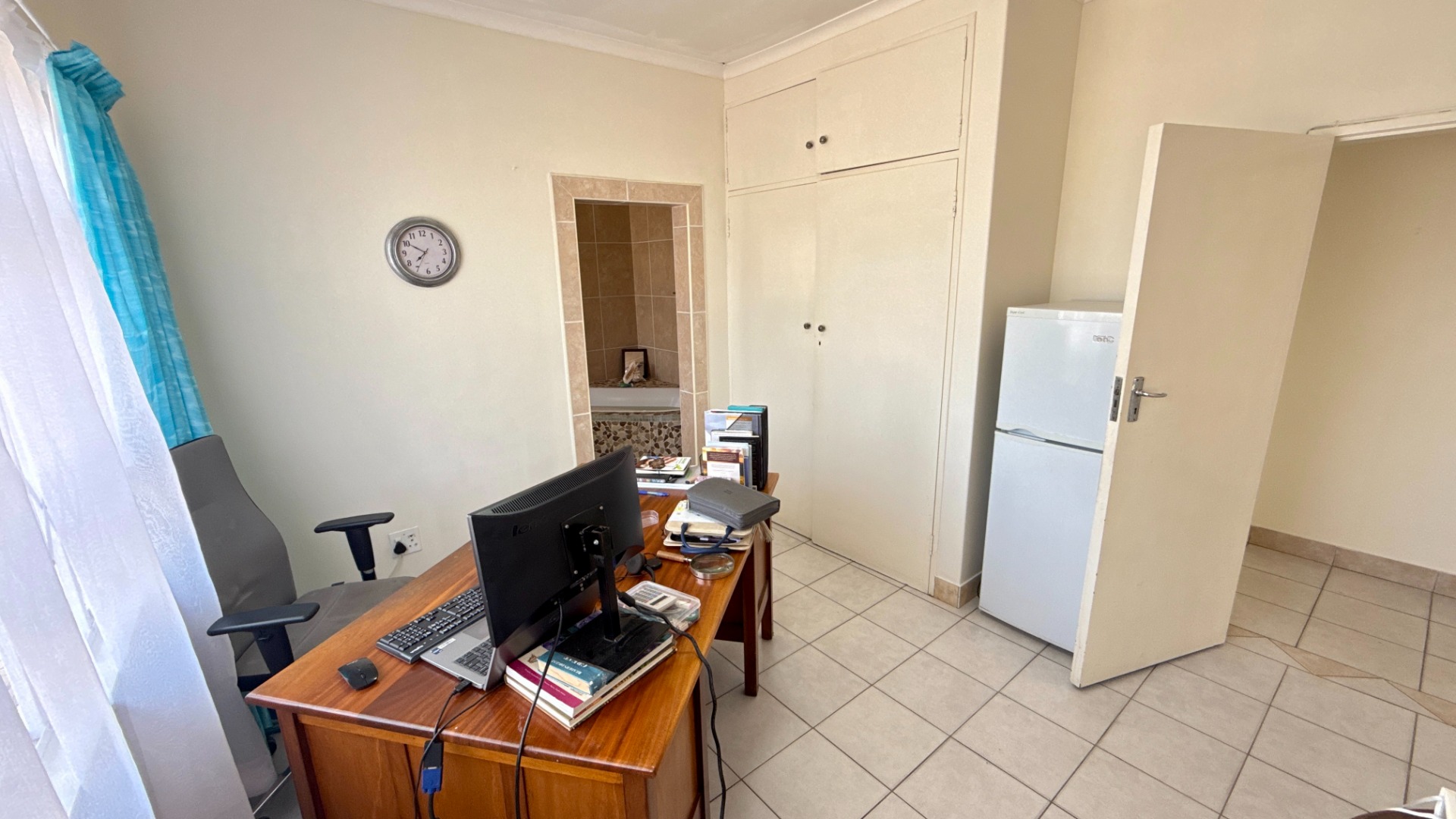 bedroom is designed with comfort in mind and comes with built-in cupboards,