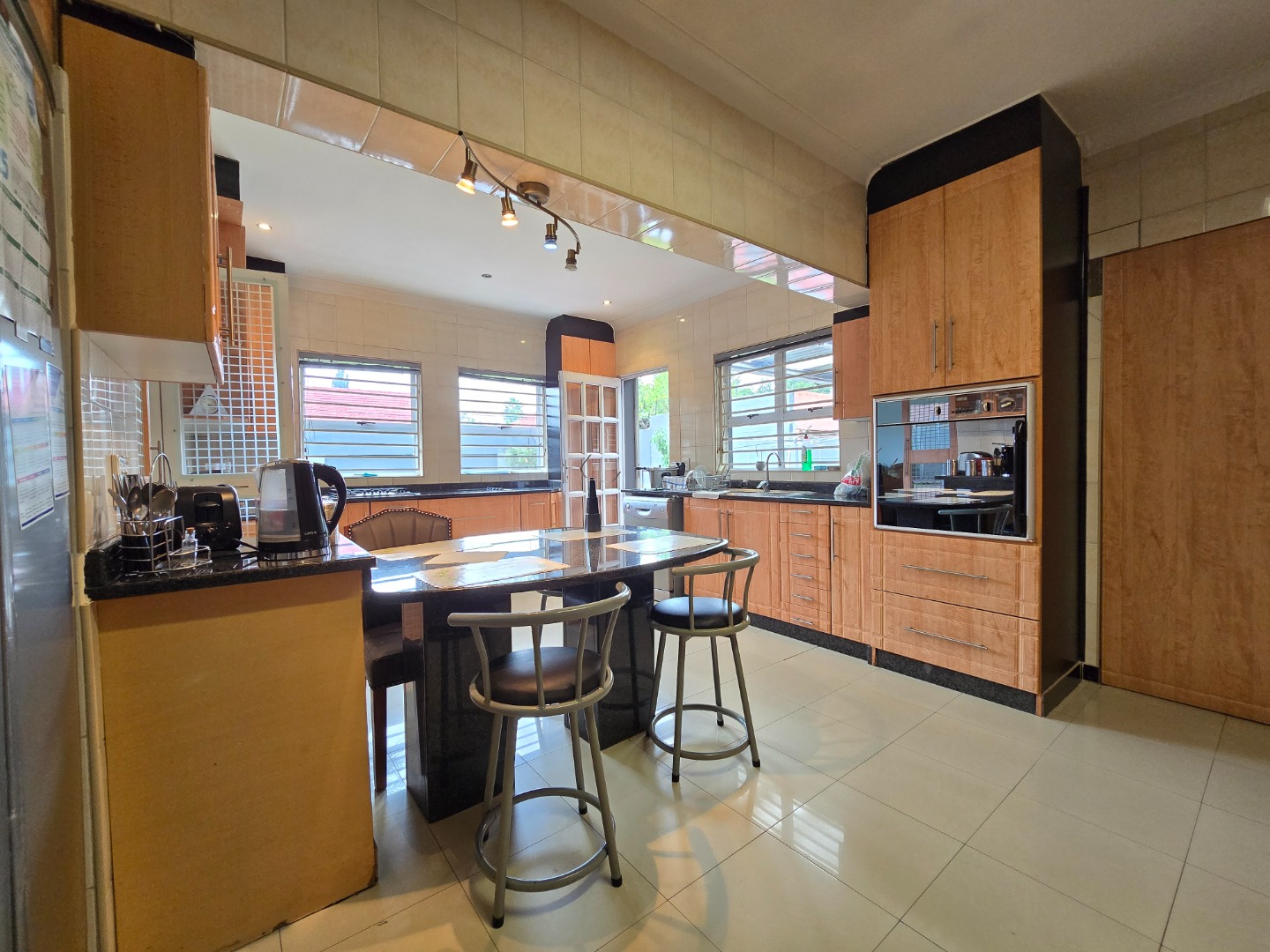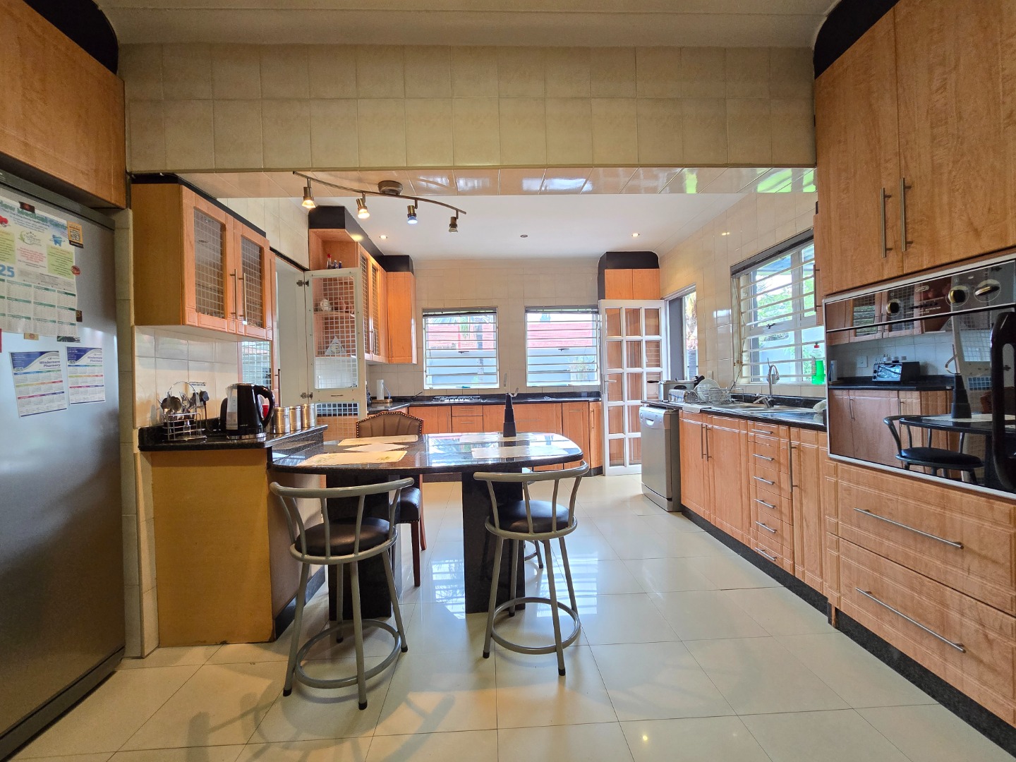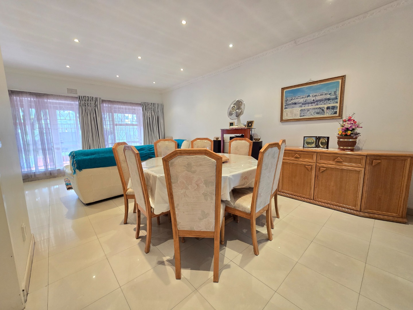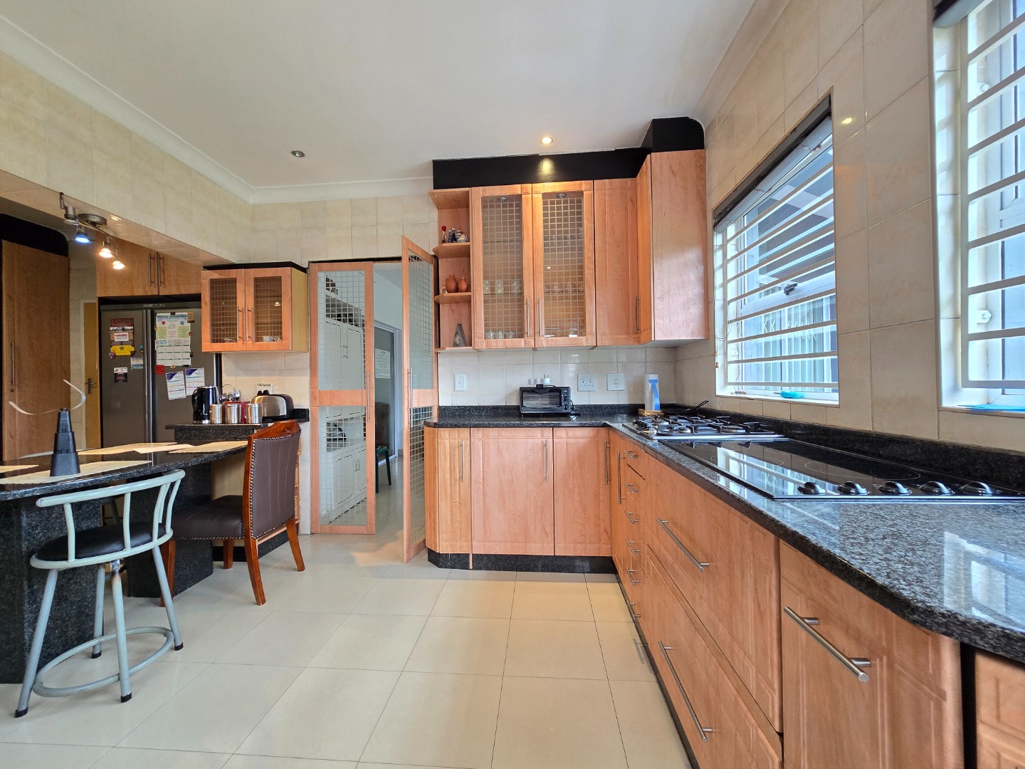 Step inside and enjoy two generous lounges, beautifully finished with modern porcelain tiles—one ideal for everyday family use and the other perfect for entertaining guests. The adjacent dining area seamlessly connects the living spaces, making this home an entertainer’s dream.