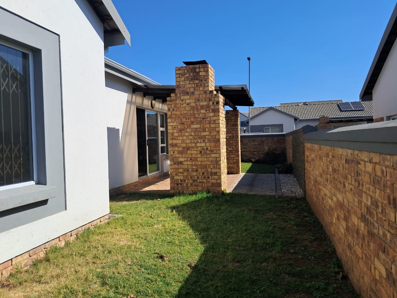 All three generously sized bedrooms include built-in wardrobes, with the master bedroom featuring a beautifully appointed en-suite bathroom. Step outside into your private garden oasis—landscaped and ready for relaxed afternoons or weekend braais, complete with a patio for laid-back lounging. The home also includes a single garage and is located in a strictly access-controlled estate with 24-hour security, offering peace of mind and privacy. Please note: no pets are allowed on this property.