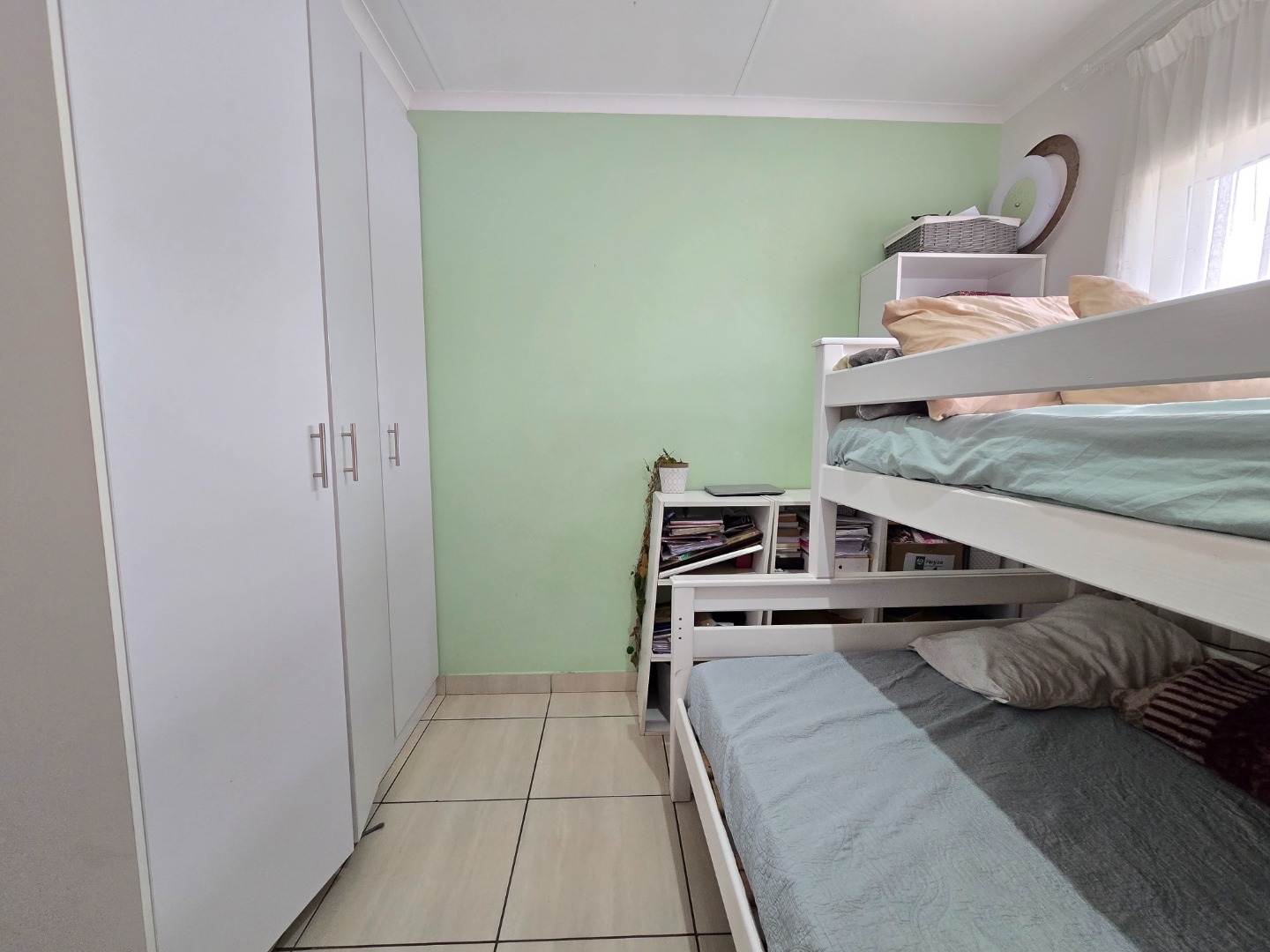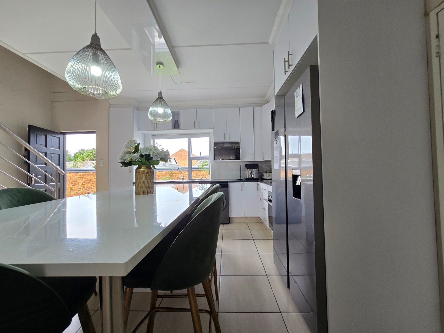 The kitchen flows effortlessly into the warm and inviting lounge area, ideal for hosting guests or enjoying family time. Adjacent to the lounge is a guest toilet and a well-sized storage area, adding practicality to this thoughtfully designed home.