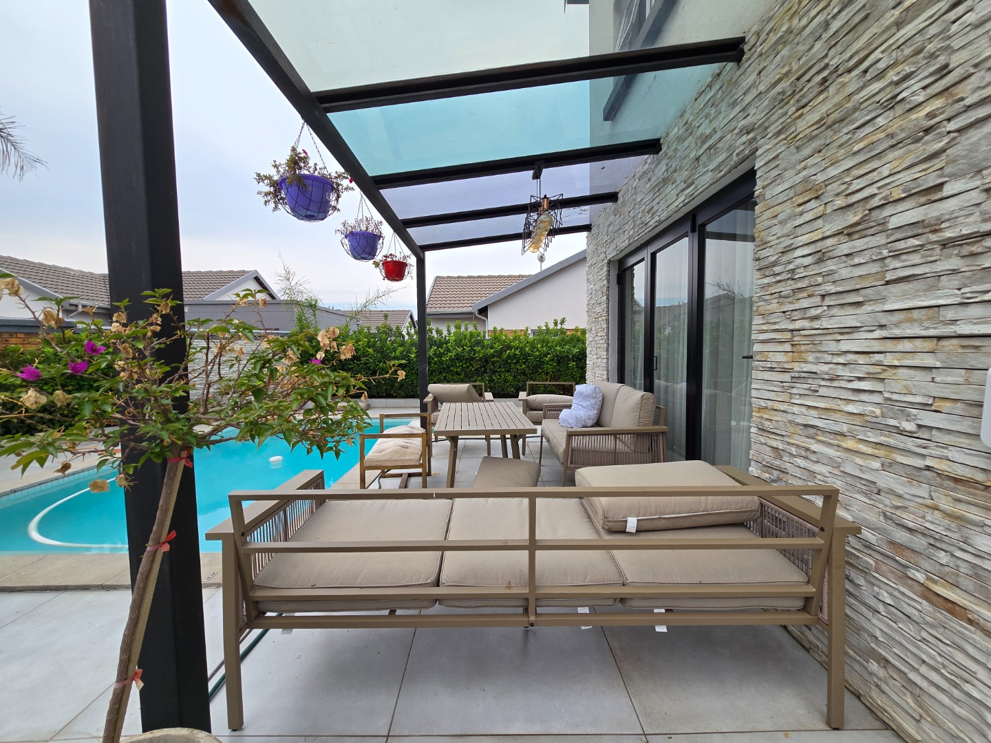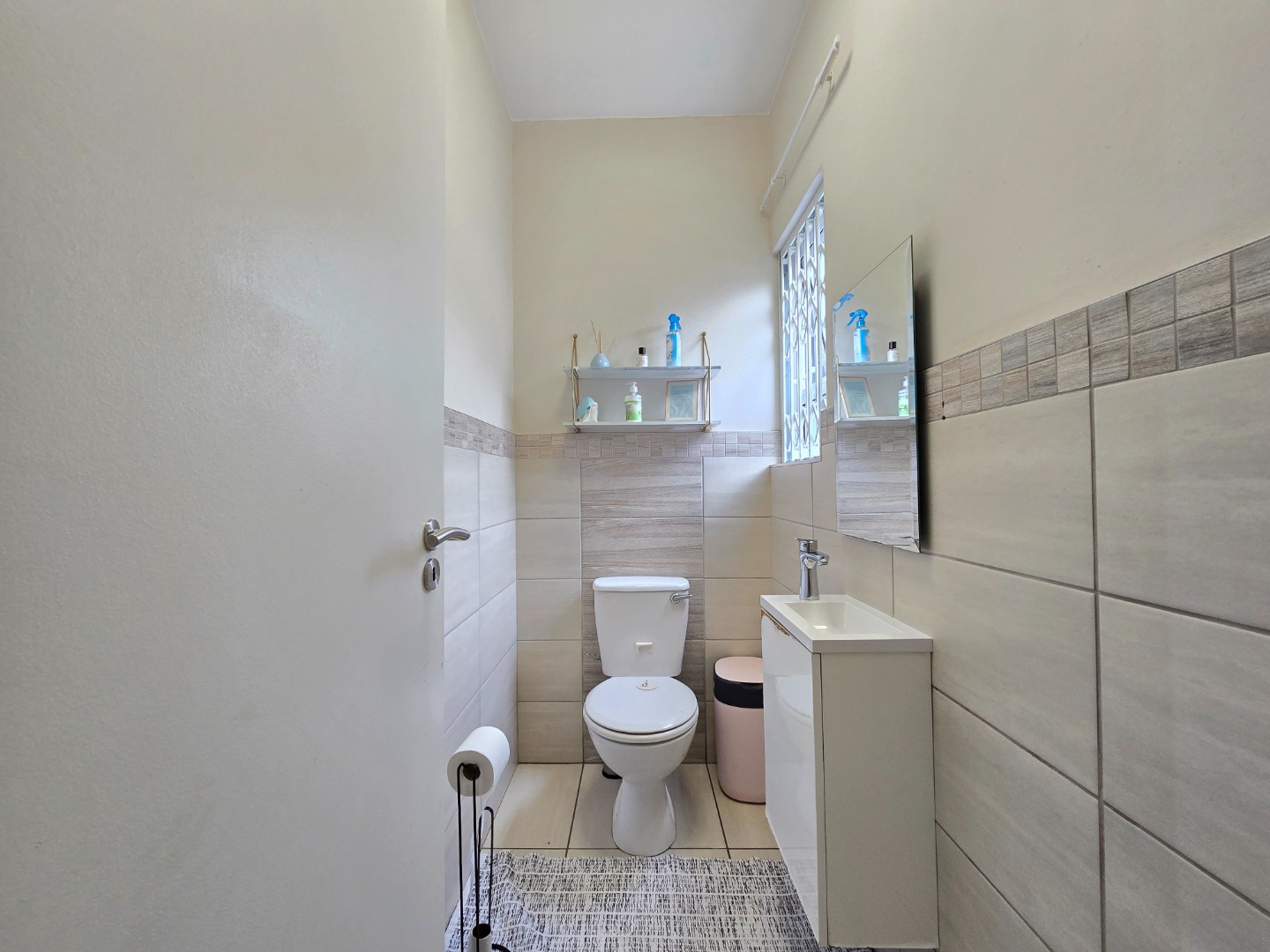 The kitchen flows effortlessly into the warm and inviting lounge area, ideal for hosting guests or enjoying family time. Adjacent to the lounge is a guest toilet and a well-sized storage area, adding practicality to this thoughtfully designed home.