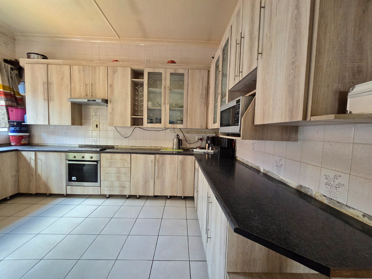 Both bedrooms are well appointed and include built-in cupboards, providing ample storage. The bathroom is neatly finished with a bathtub, toilet, and basin. The kitchen offers generous cupboard space and is fitted with a four-plate electric stove, oven, and extractor unit—perfect for everyday cooking.