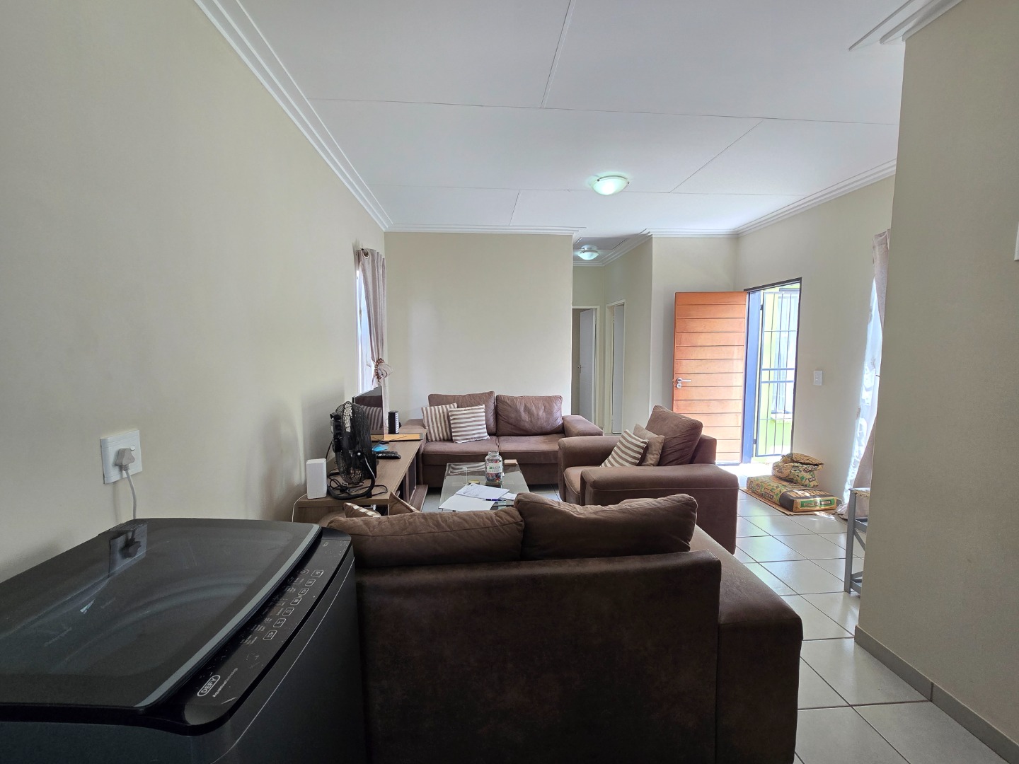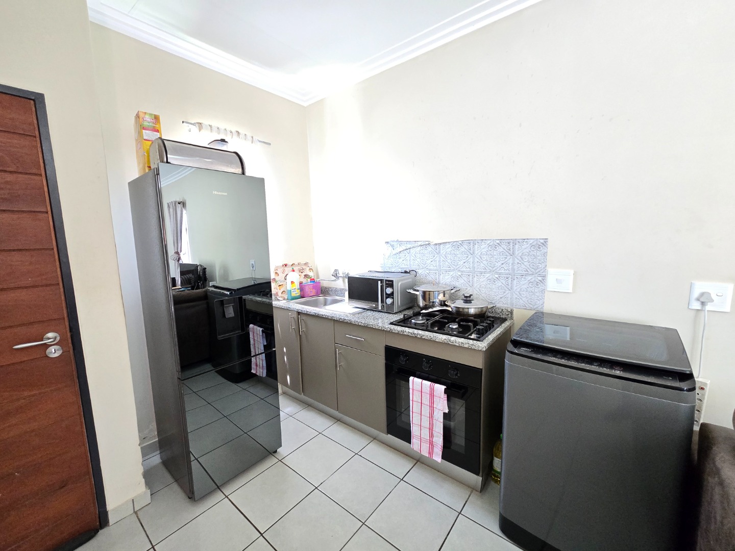 As you step inside, you're welcomed by a beautifully designed open-plan kitchen and lounge area. The modern kitchen boasts sleek finishes, ample cupboard space, and a 4-plate gas stove, making meal preparation a delight. Flowing seamlessly into the spacious lounge, this area is perfect for hosting family and friends.