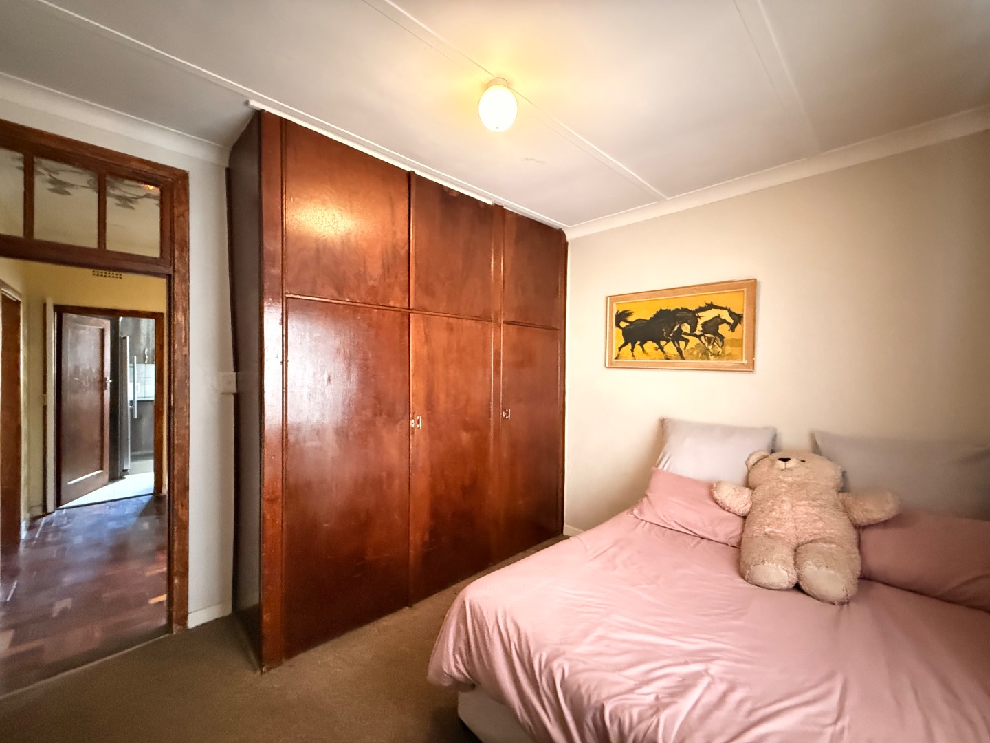 Step inside and feel the warmth — the main bedroom shows off that timeless parquet flooring, while the other two bedrooms are cozily carpeted for comfort (yes, those Sunday naps are about to hit different).