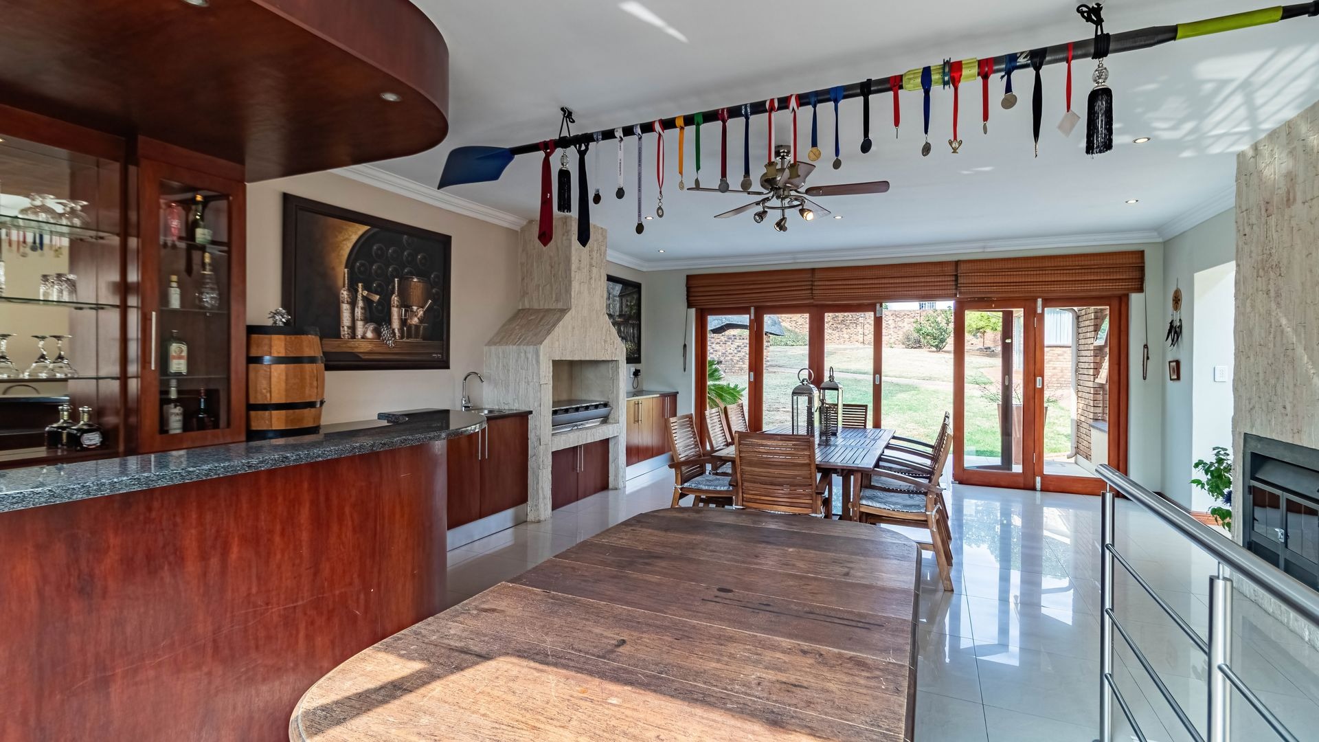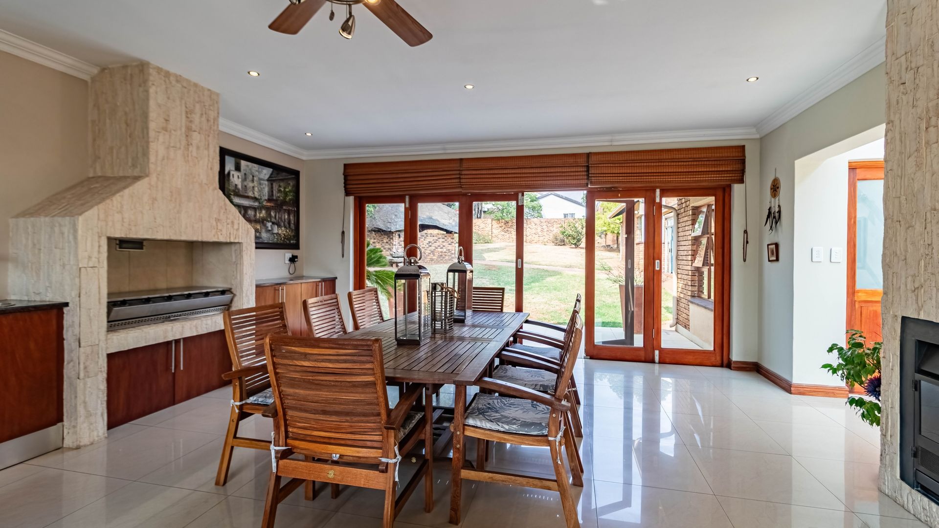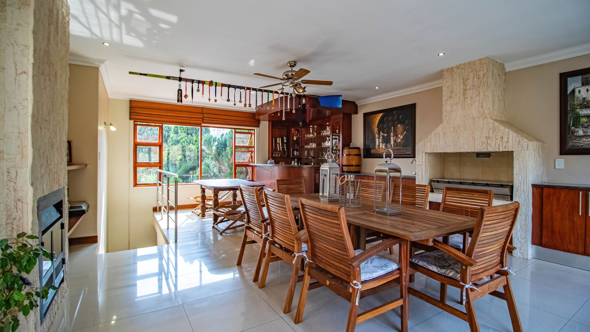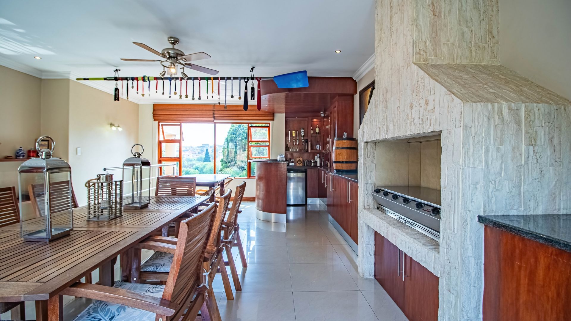 The living rooms are warm, welcoming and generously sized, flowing seamlessly into the dining room which leads out to a beautiful backyard. The kitchen and indoor entertainment area form the showpiece of the home. With a built-in bar, braai and open concept space, this is the perfect setting for gatherings, family events and weekend entertaining. The stunning views over the garden and area create the perfect lifestyle environment.