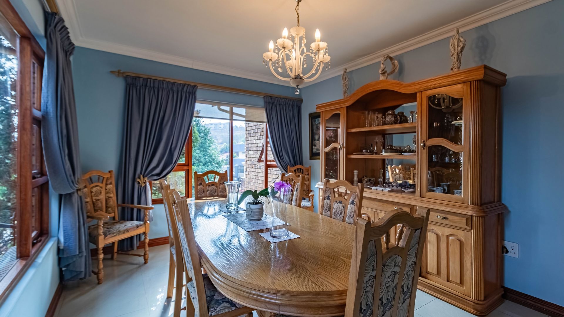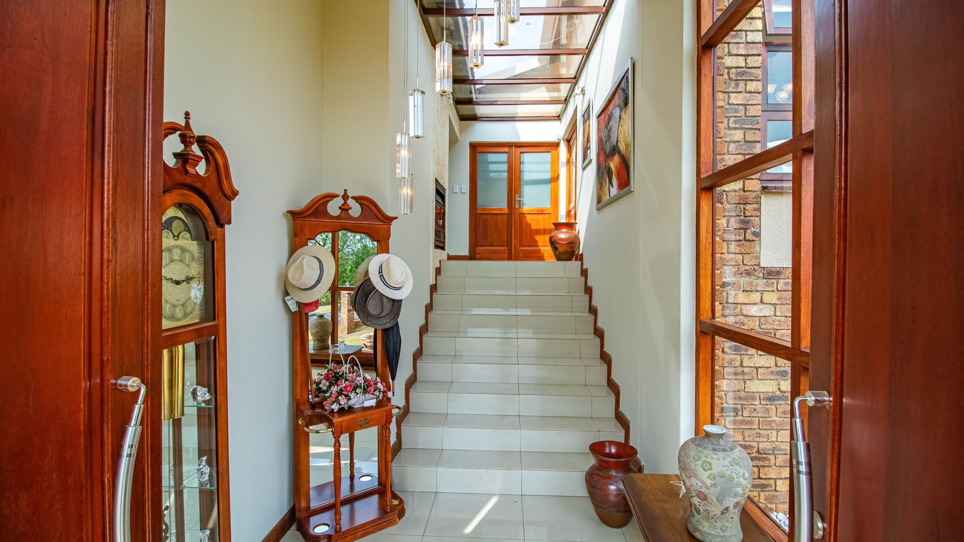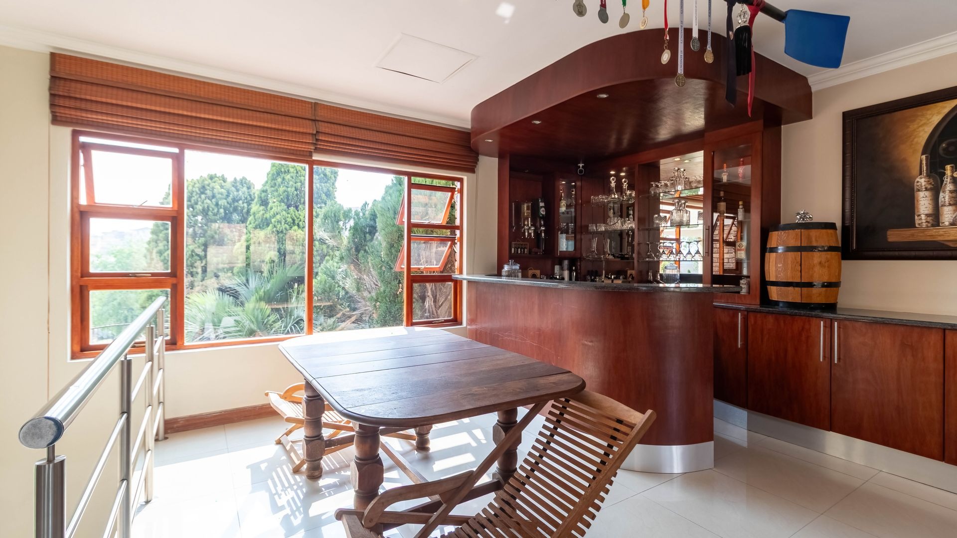 The living rooms are warm, welcoming and generously sized, flowing seamlessly into the dining room which leads out to a beautiful backyard. The kitchen and indoor entertainment area form the showpiece of the home. With a built-in bar, braai and open concept space, this is the perfect setting for gatherings, family events and weekend entertaining. The stunning views over the garden and area create the perfect lifestyle environment.