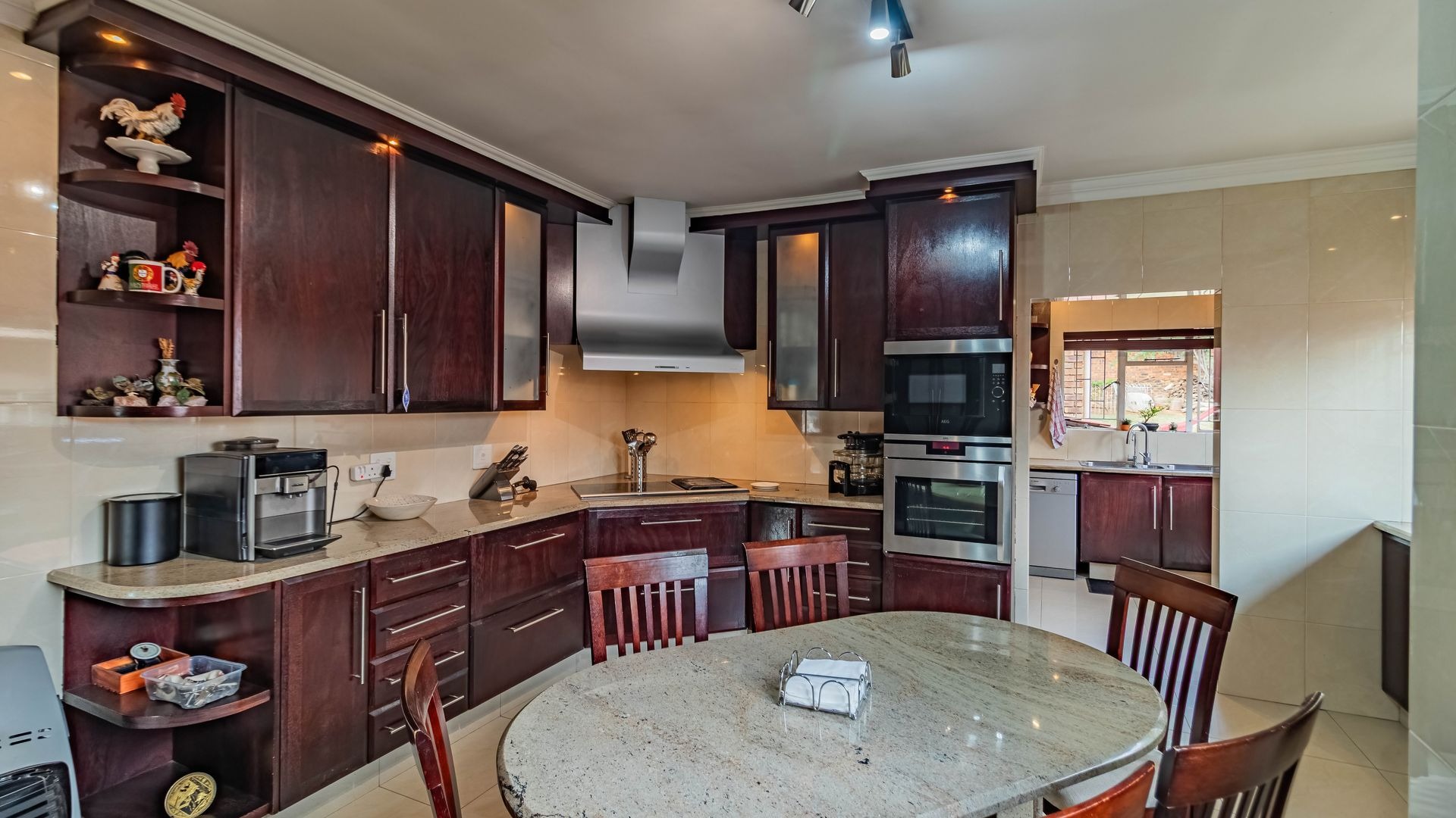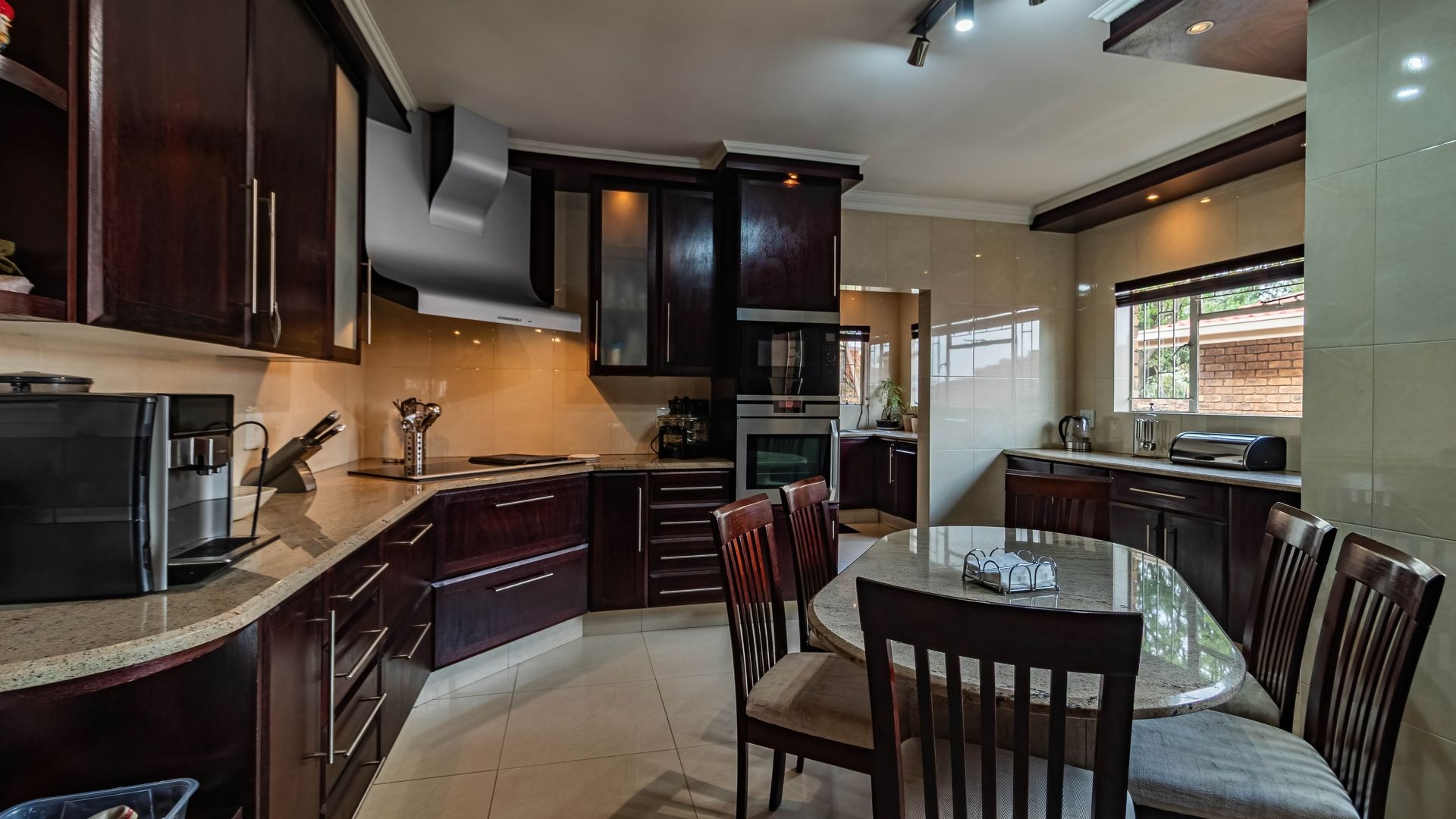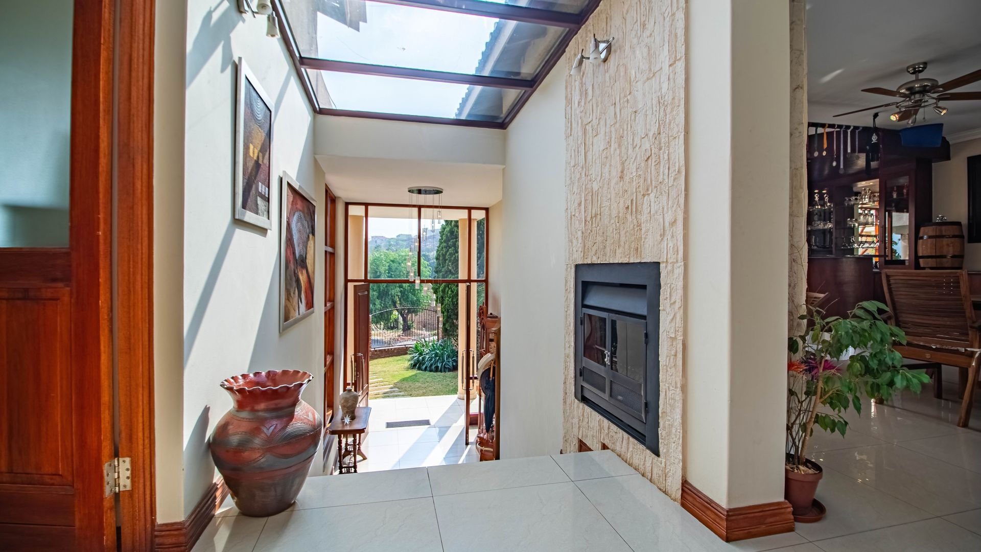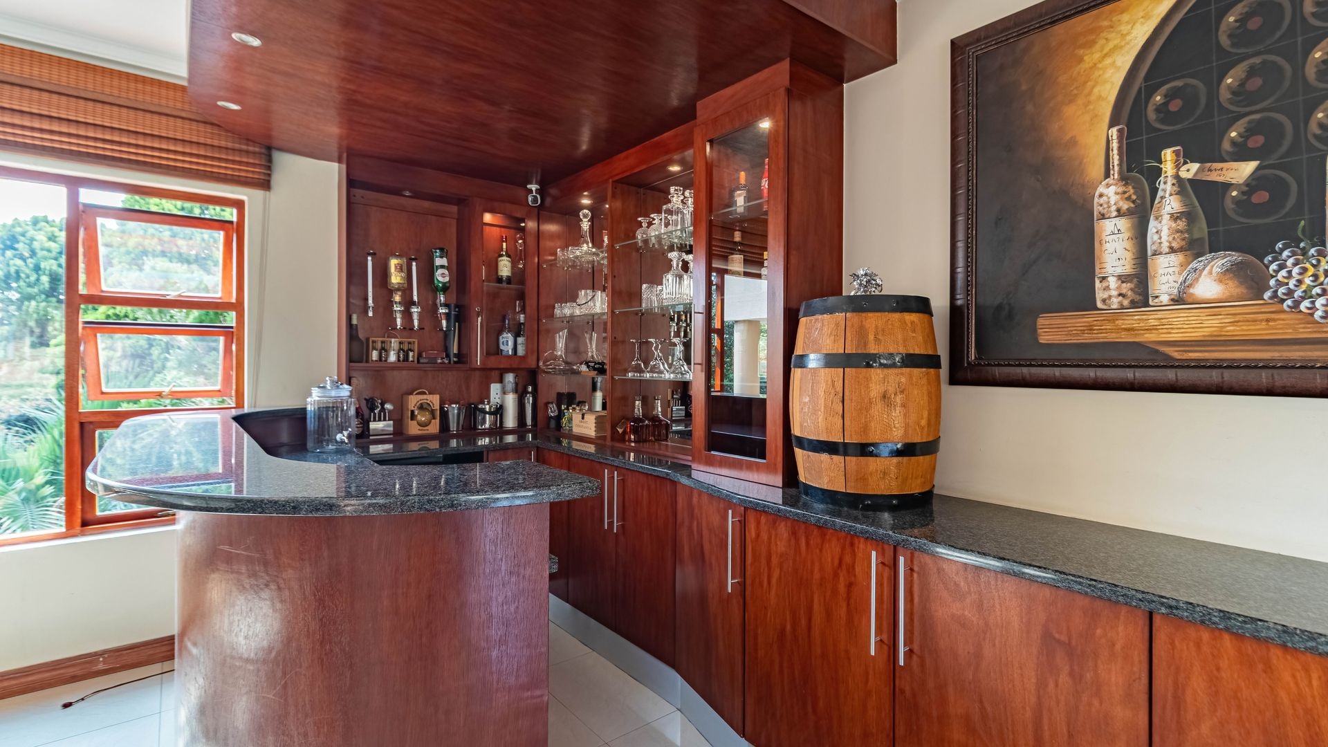 The living rooms are warm, welcoming and generously sized, flowing seamlessly into the dining room which leads out to a beautiful backyard. The kitchen and indoor entertainment area form the showpiece of the home. With a built-in bar, braai and open concept space, this is the perfect setting for gatherings, family events and weekend entertaining. The stunning views over the garden and area create the perfect lifestyle environment.