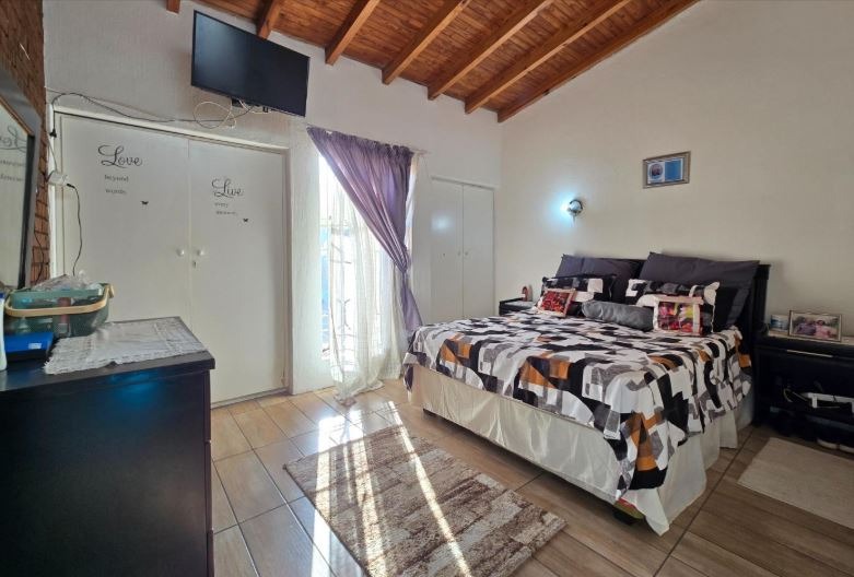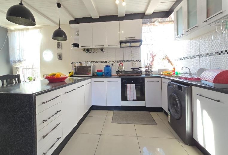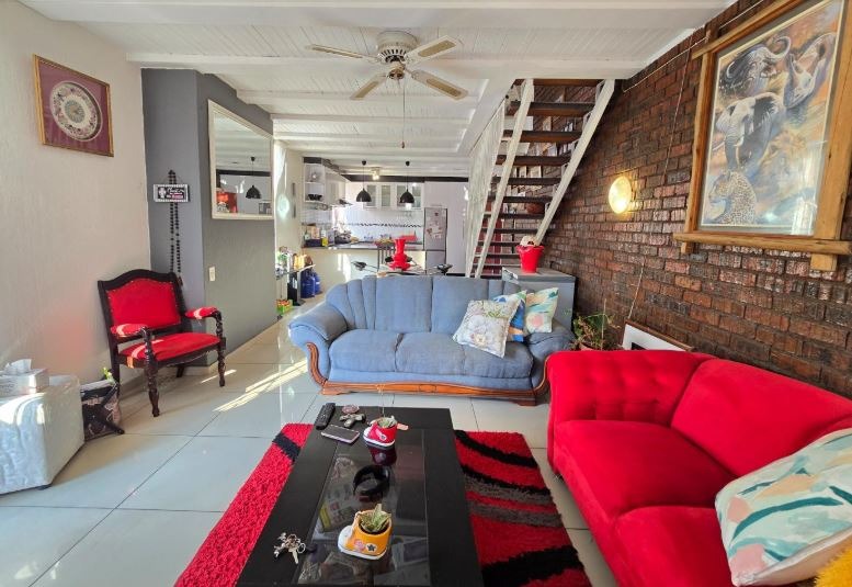 This lock up and go home features two spacious bedrooms with built in cupboards, two bathrooms, a sleek open plan kitchen with granite tops and modern finishes, a bright lounge and dining area leading to a private garden, and two parking bays, one covered.