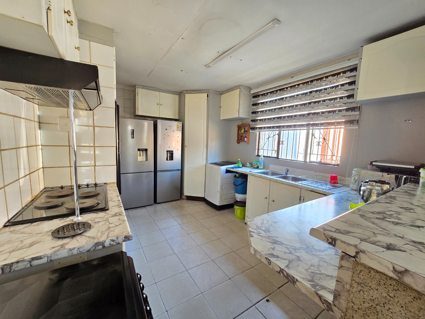Outdoor living is a pleasure with a built-in braai and lapa area, ideal for relaxing or entertaining. The yard also offers ample space for future extensions. Parking is effortless, with room for up to nine cars and two separate entrances ensuring easy access.