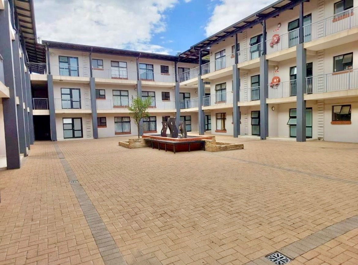 Discover modern living in this secure complex located in Winchester Hills, Johannesburg. This multi-story residential building boasts contemporary architectural design with attractive white facades and brick accents, nestled on a natural hillside. The complex ensures peace of mind with a secure gated entrance, electric fencing, and 24-hour security, providing a safe and tranquil environment for residents.