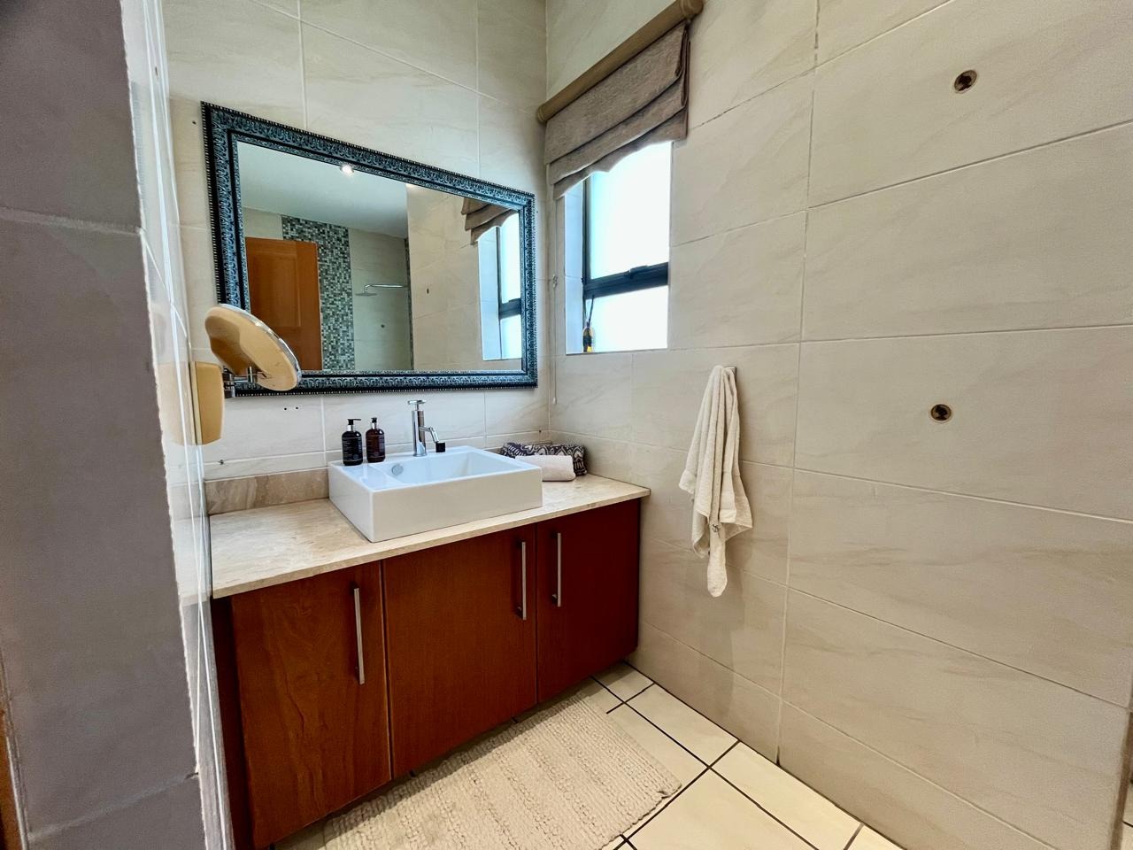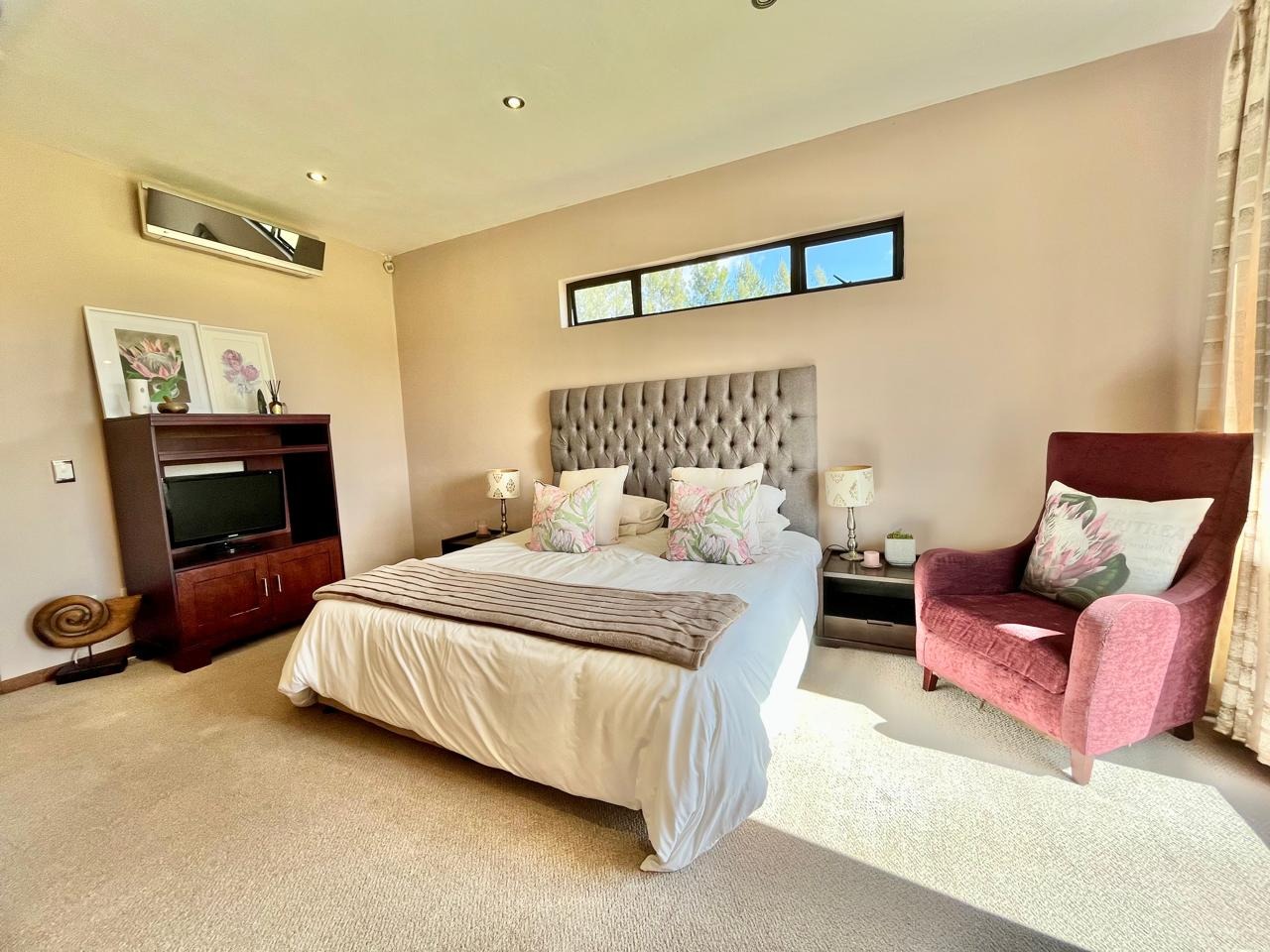 • Guest bedroom with carpeted floors and its own luxurious full en-suite bathroom