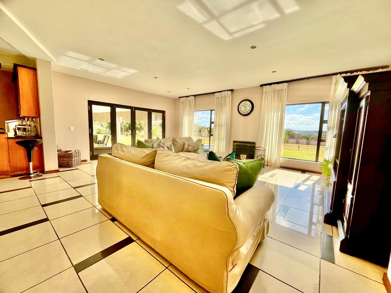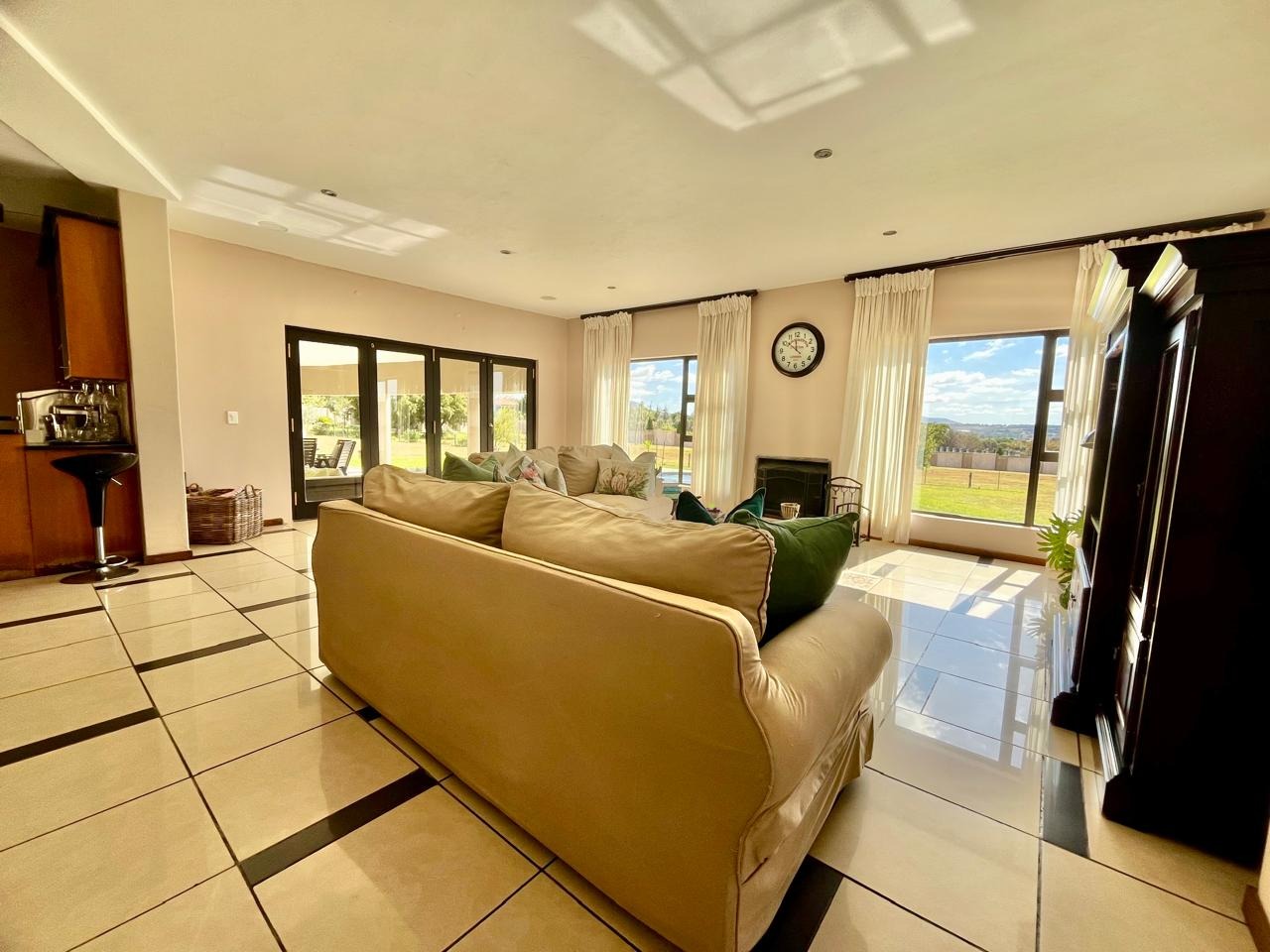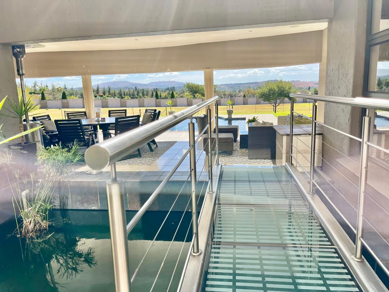 • Large windows throughout offering panoramic views of the estate