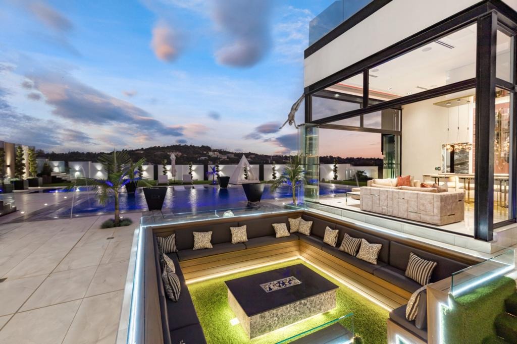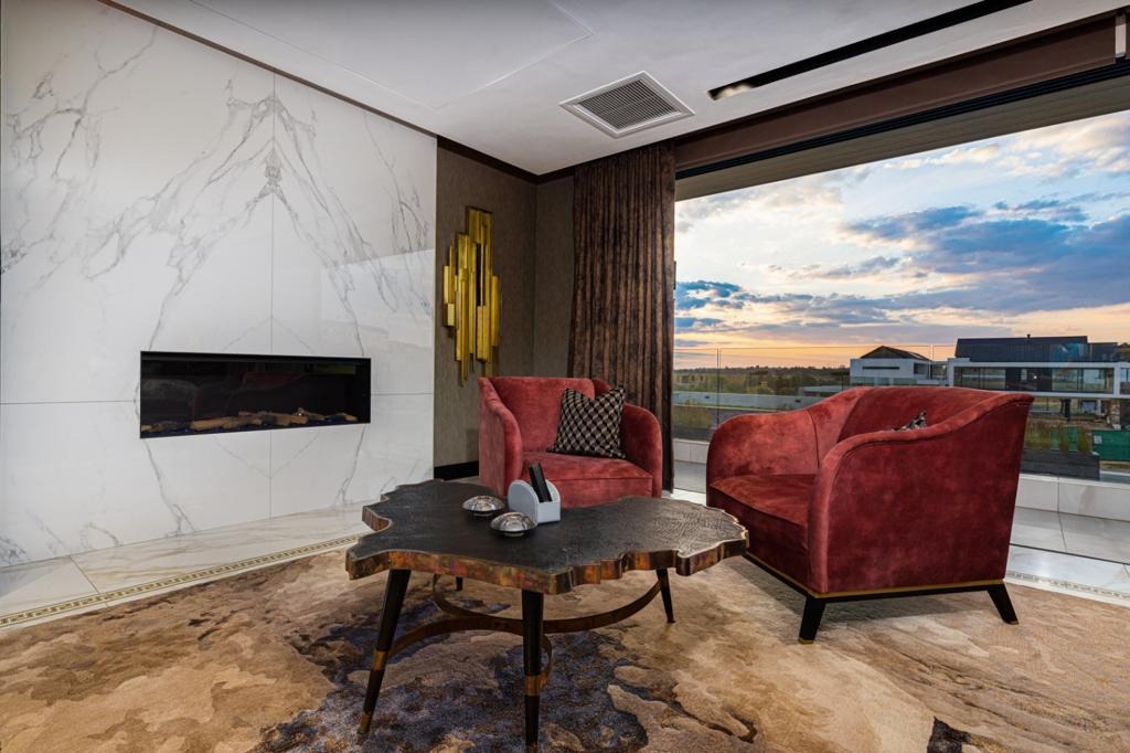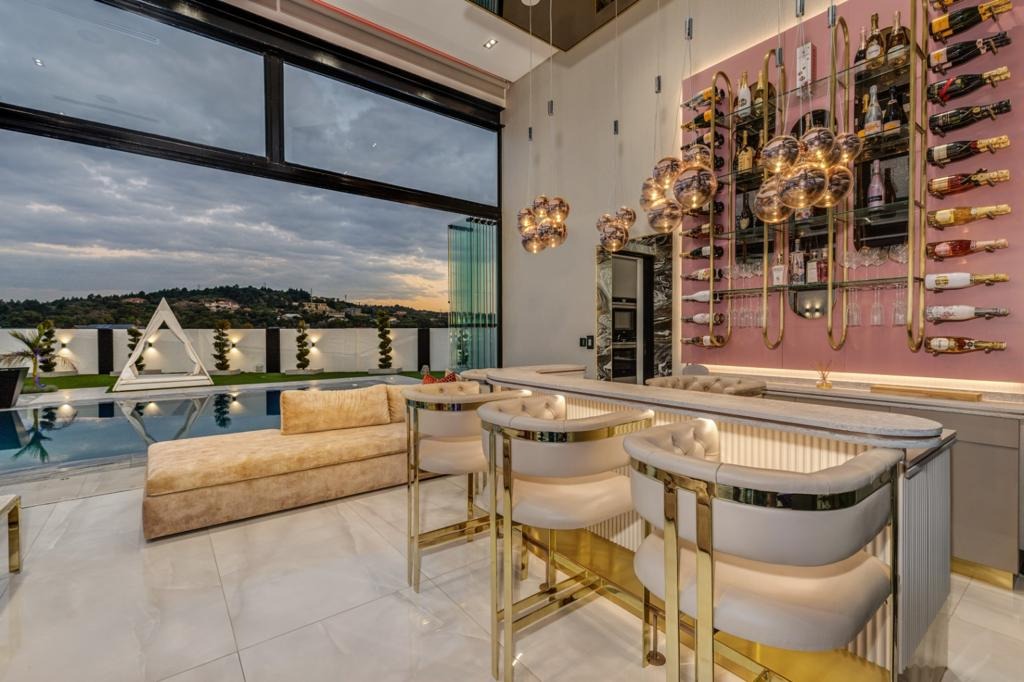 On the ground floor, two private guest suites offer comfort and discretion, while wellness reigns supreme with an indoor heated pool, gym, spa, sauna, and bespoke hydro showers. This sanctuary spills out to expansive entertainment zones custom his and hers bars, a vast infinity pool, jacuzzi, and a sunken boma firepit merging the boundaries between indoor and outdoor luxury living.