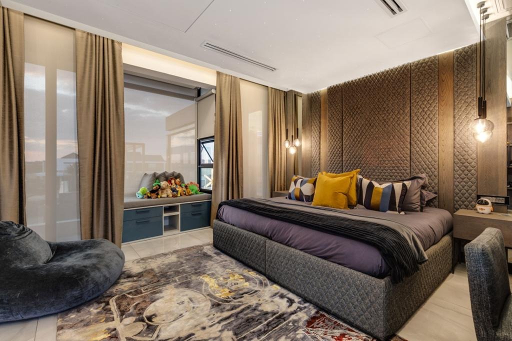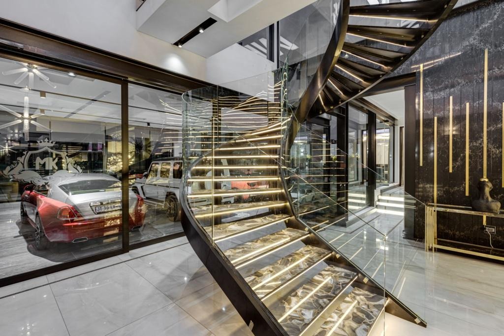 The home is a fully automated smart masterpiece, effortlessly merging technology and luxury. The grand spiral staircase leads to an upper level where a cinematic pyjama lounge opens to three exquisite en-suite bedrooms and an indulgent master wing complete with boutique-style dressing room, lavish bathroom, and private balcony.