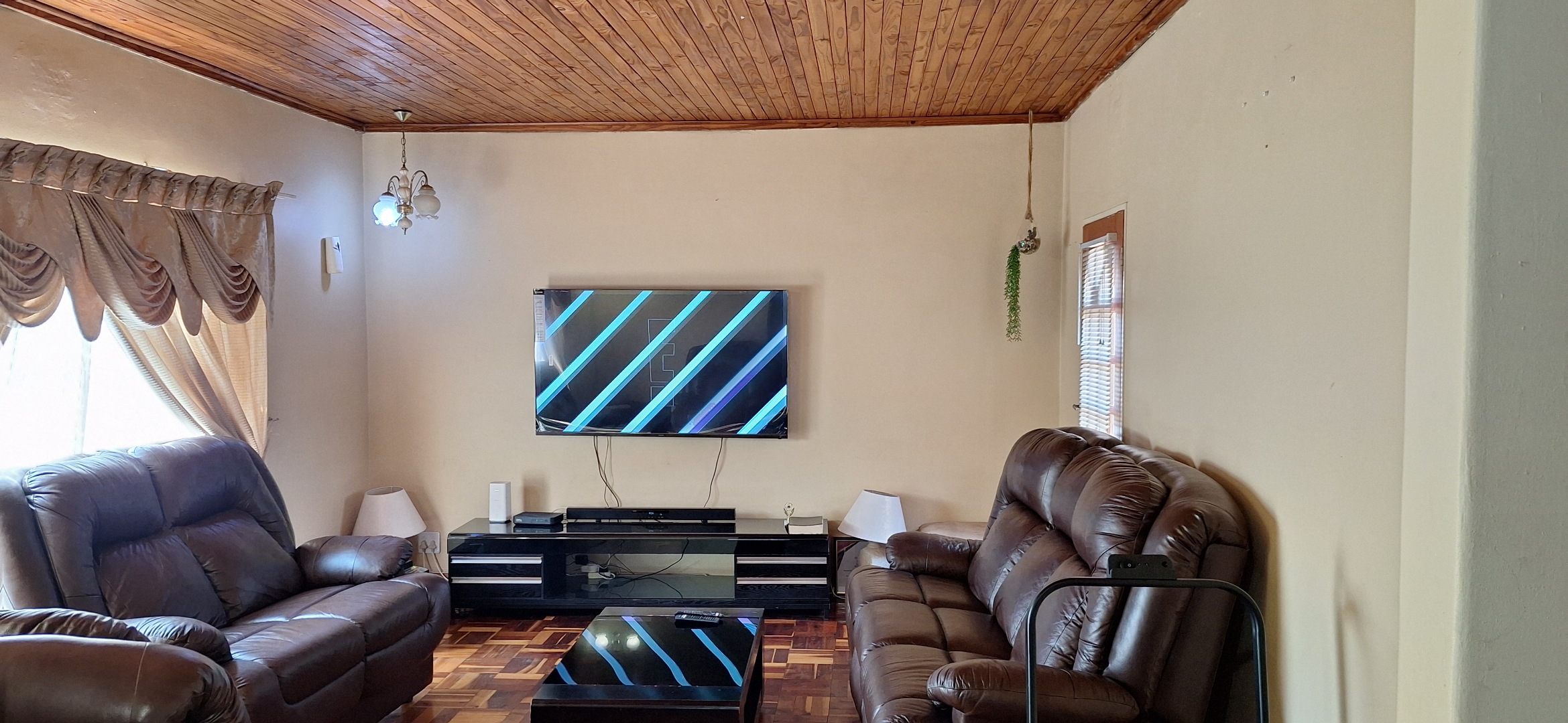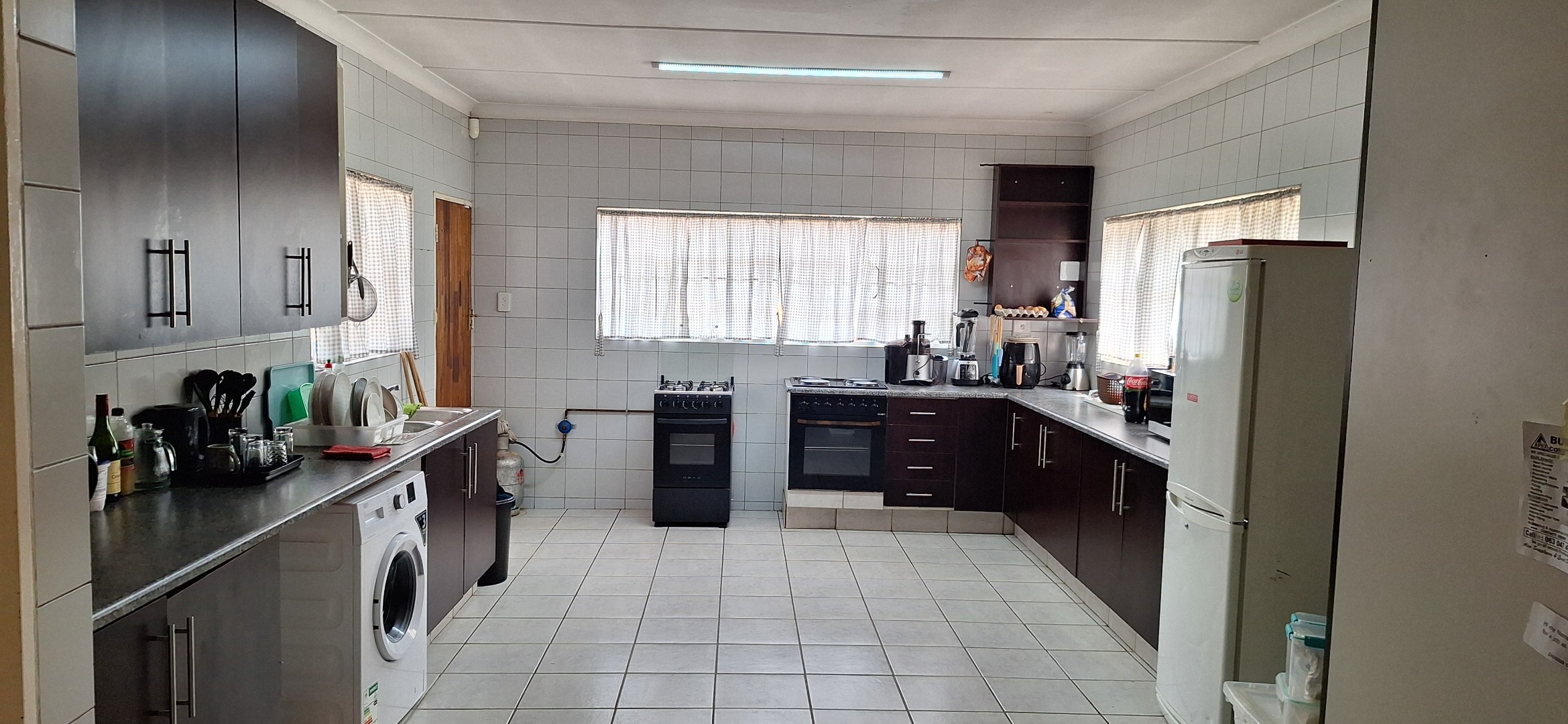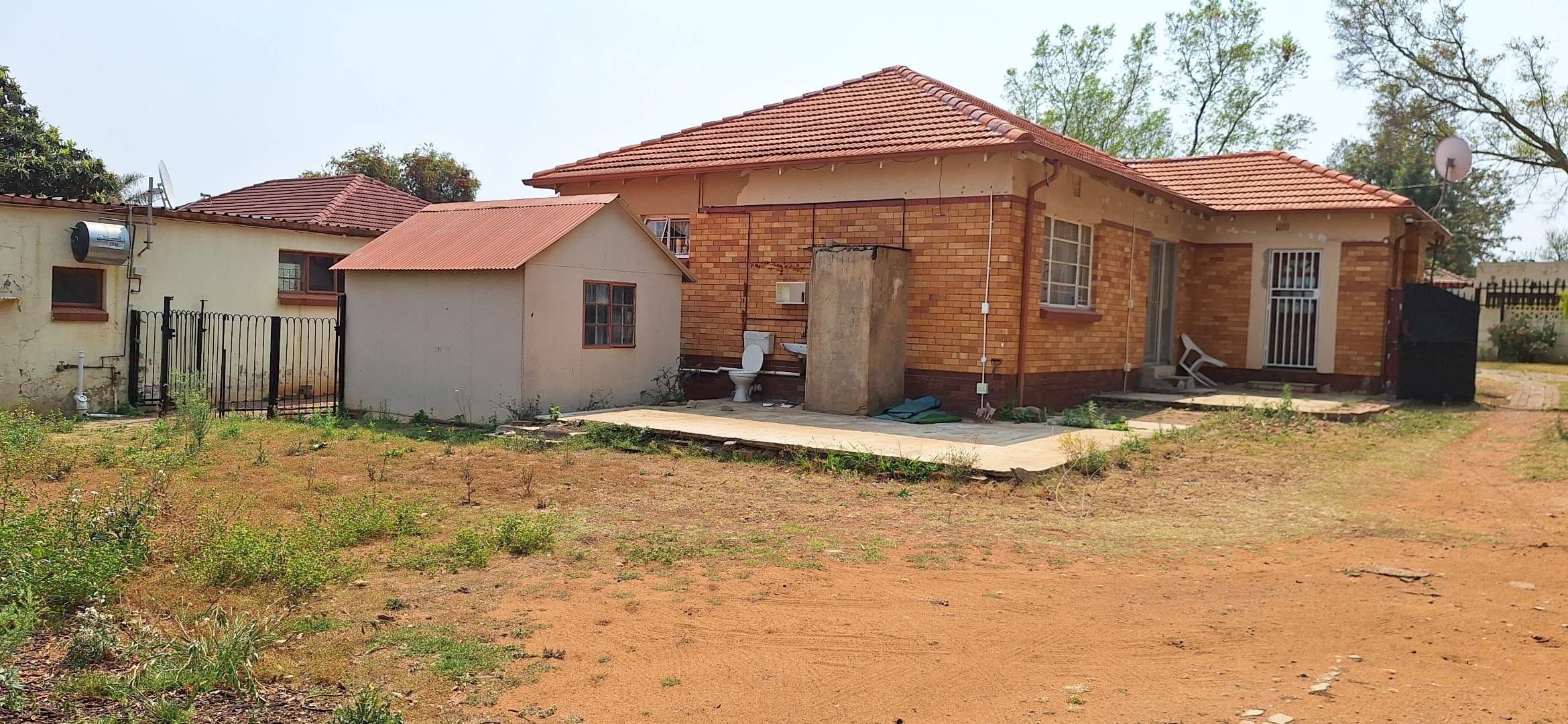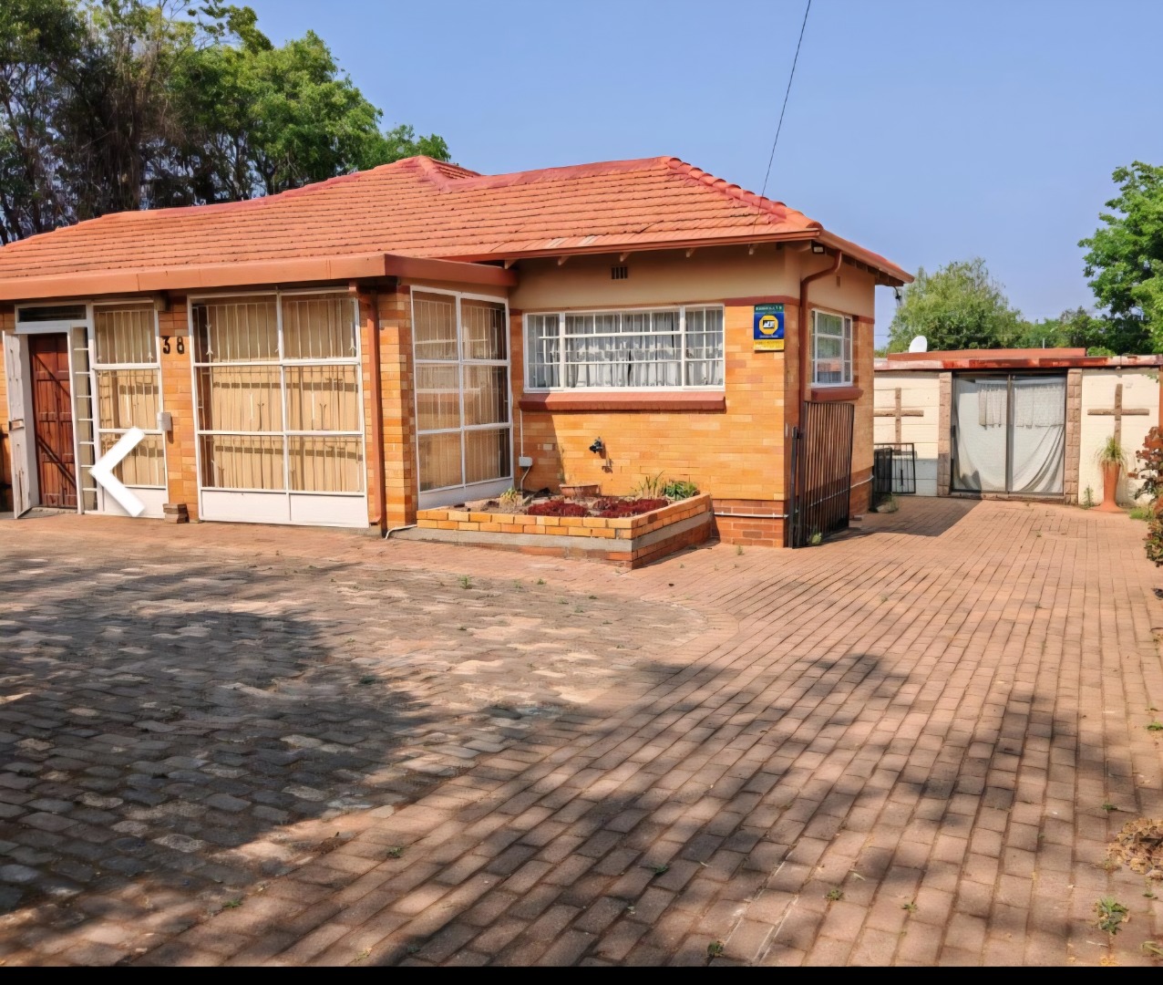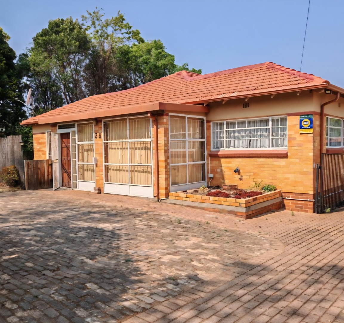 Discover this inviting three-bedroom, two-bathroom residential property nestled in the suburban heart of Horison, Roodepoort. This single-story brick home, set on a generous 1190 sqm erf, offers a blend of comfort and practicality for family living. Upon entering, you are greeted by a functional reception area leading into the main living spaces. The spacious lounge features distinctive wooden panel ceilings and warm parquet flooring, creating an inviting atmosphere. Adjacent to this, a dedicated family TV room provides additional space for relaxation and entertainment. The well-appointed kitchen is designed for efficiency, boasting ample dark cabinetry, light tiled walls and floor, and accommodating two freestanding stoves, a washing machine, and a large refrigerator, all bathed in natural light. The residence comprises three comfortable bedrooms, one of which includes convenient built-in wardrobes, offering practical storage solutions. There are two fully tiled bathrooms, with one being an ensuite, ensuring privacy and ease of maintenance. Externally, the property boasts significant appeal with its durable brick construction and red tiled roof. The secure perimeter is defined by a combination precast and steel palisade fence, complemented by an alarm system and burglar bars for enhanced safety. The expansive paved driveway provides parking for up to 15 vehicles, alongside a detached structure that could serve various purposes, and outside toilets. Mature trees add to the established charm, while a flatlet offers versatile accommodation options. This Horison home provides a secure and spacious environment, ideal for those seeking a well-located property with ample parking and flexible living arrangements. Key Features: • 3 Bedrooms, 2 Bathrooms (1 Ensuite) • Spacious Lounge & Family TV Room • Functional Kitchen with Ample Cabinetry • 1190 sqm Erf with Paved Parking for 15 Vehicles • Secure Fencing, Alarm System & Burglar Bars • Detached Structure & Flatlet • Outside Toilets • Pet-Friendly