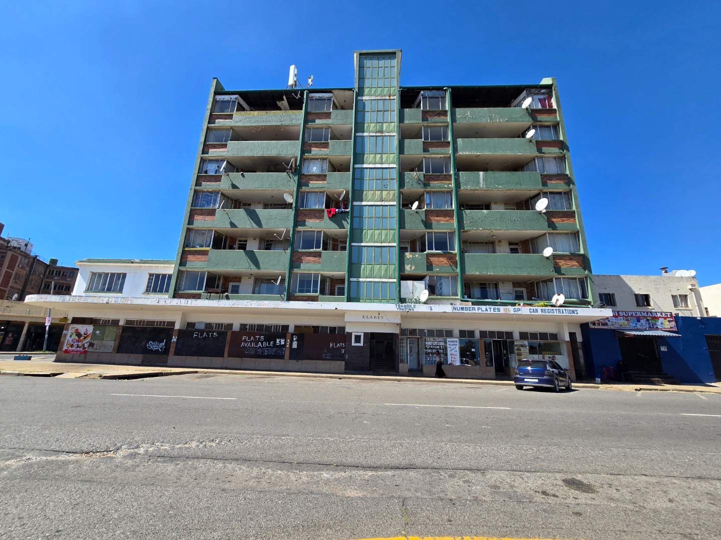 Above the retail component, the residential section spans six floors and comprises 43 units, consisting of 23 bachelor units, 18 one-bedroom units, and 2 double flats (two bachelor units combined to form spacious two-bedroom apartments). All units are fitted with prepaid electricity meters, while municipal water is divided across the total number of units. Each residential unit also benefits from its own private balcony, perfect for relaxing and taking in fresh air.