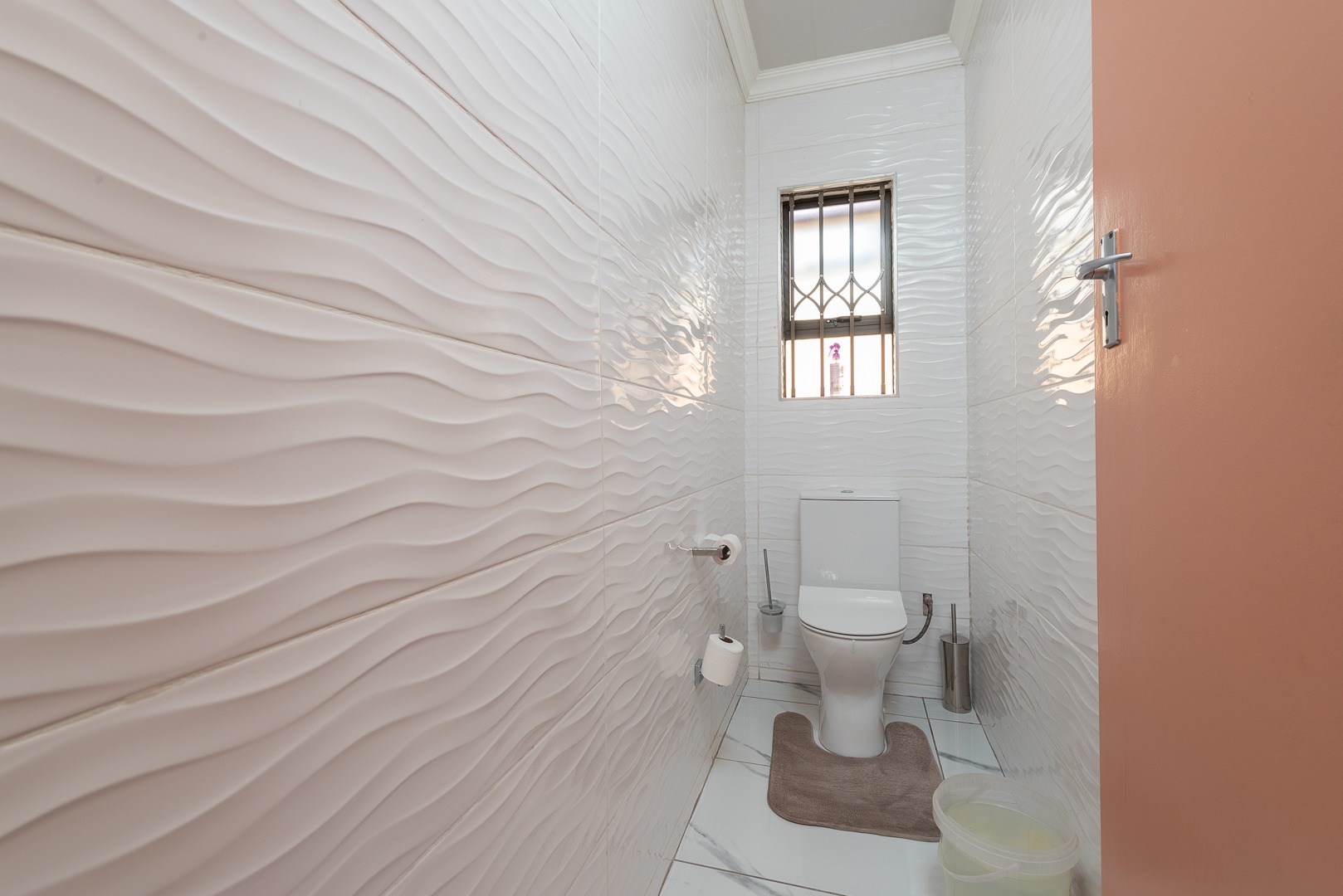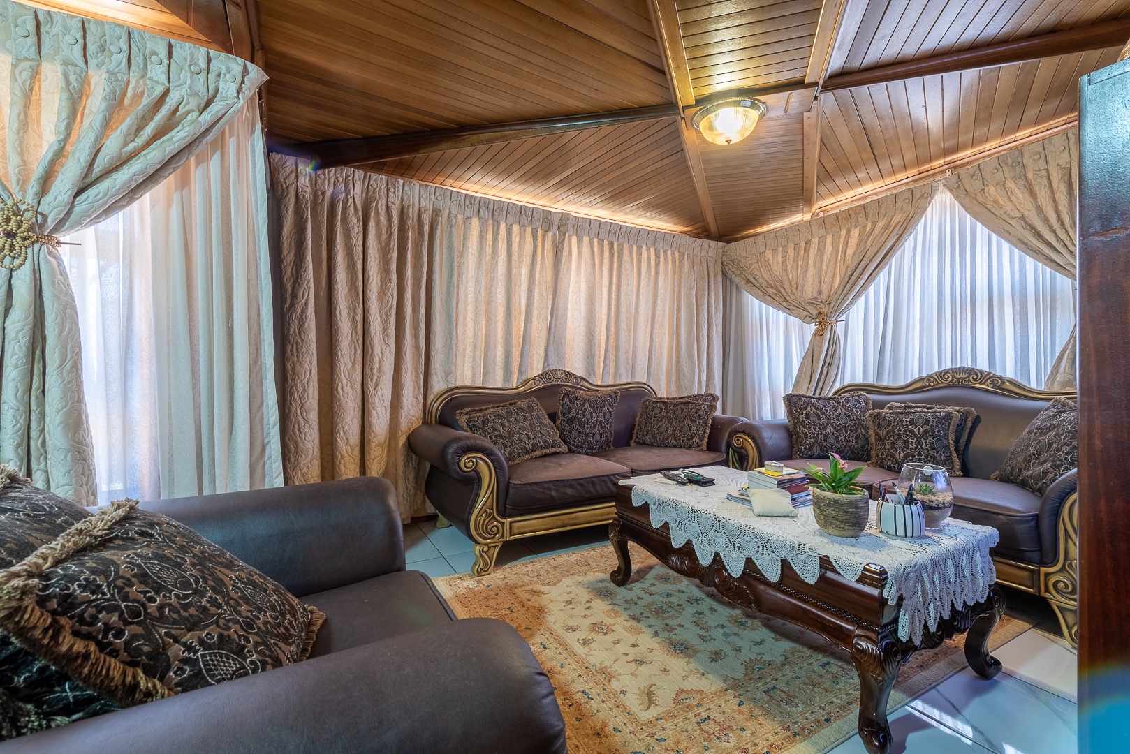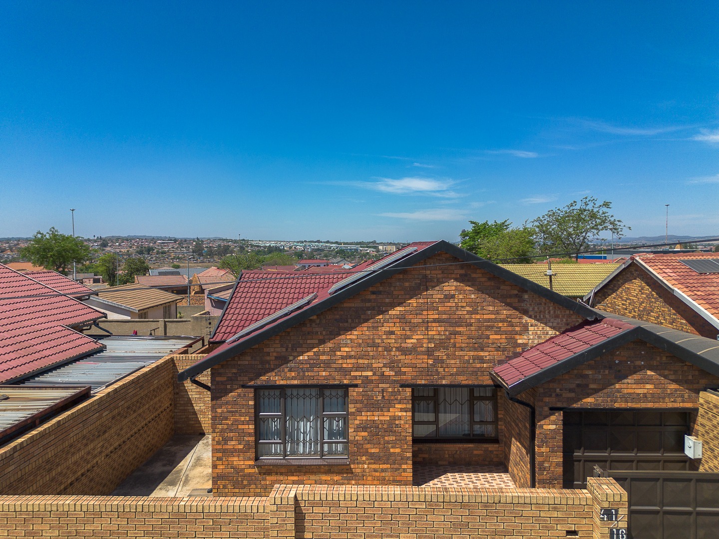 Features include window blinds in the bedrooms and kitchen, aluminium window and door frames, Trellitype burglar proofing with security gates, an automated gate and garage doors, and full boundary walls for added security.