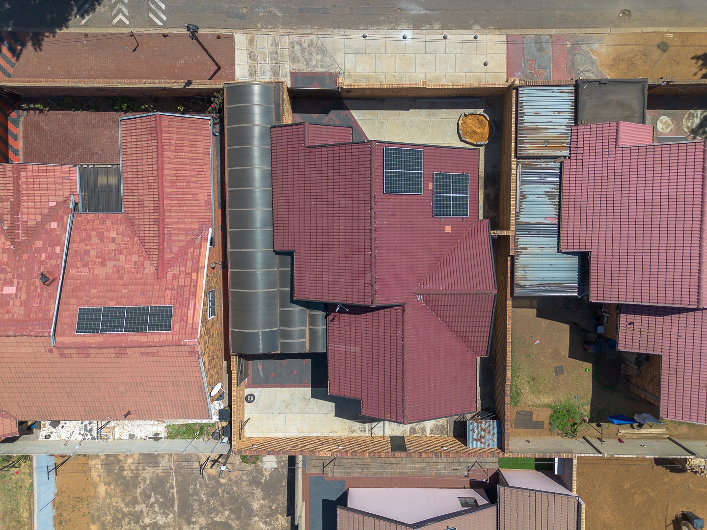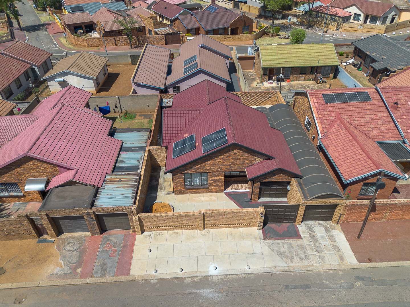The home is equipped with solar panels and an inverter for energy efficiency and offers garaging for up to five vehicles.