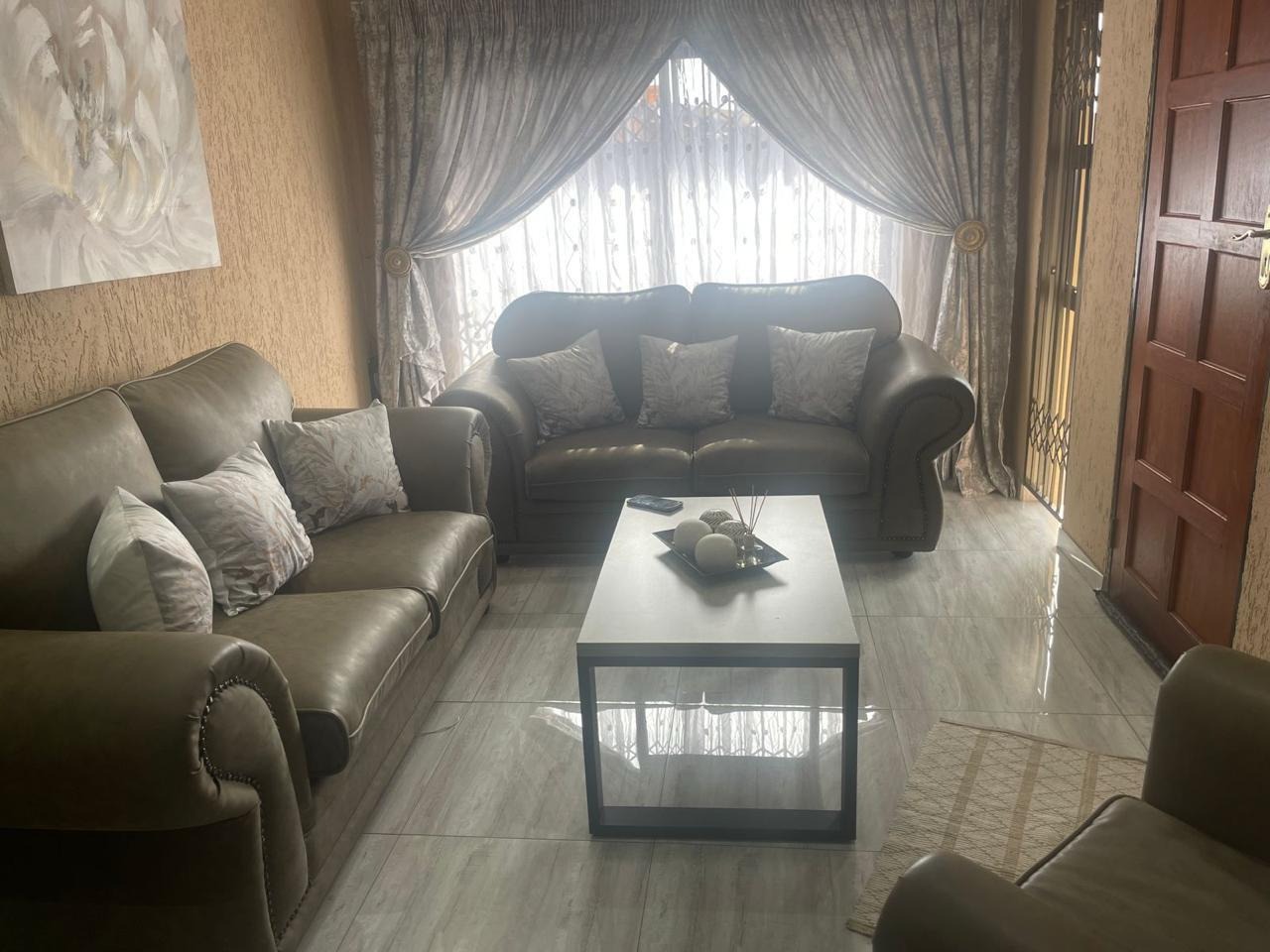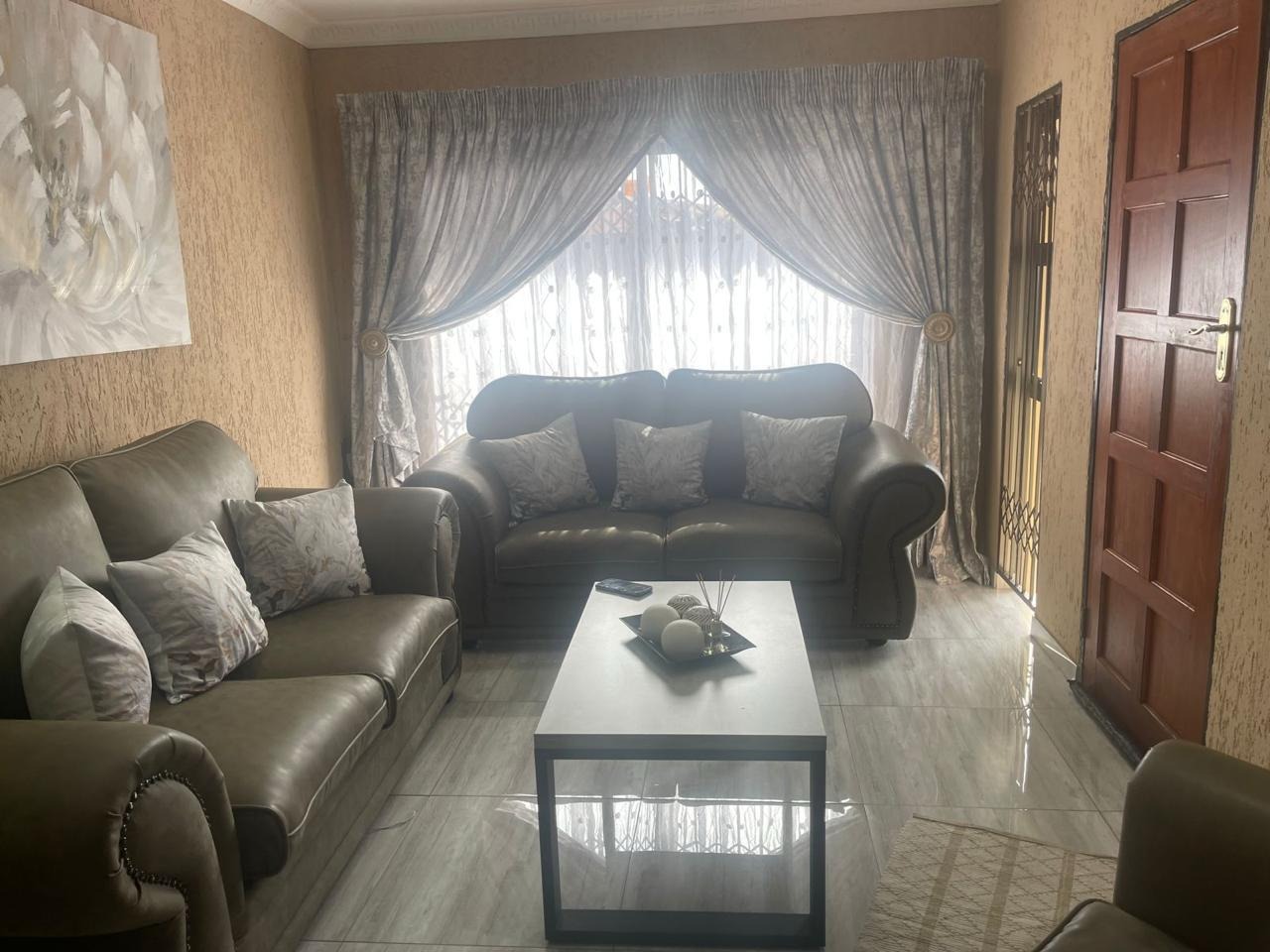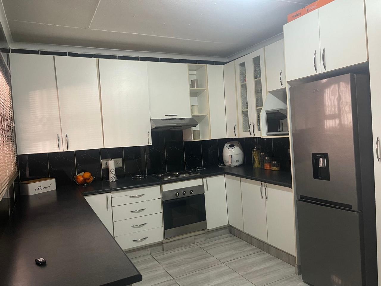 Step into this inviting 3-bedroom, 2-bathroom family home located in the vibrant suburban community of Soweto. The property immediately impresses with its modern grey exterior, complemented by light trim and a well-maintained brick paved entrance, offering a neat and welcoming first impression. A covered porch area adds to the home's curb appeal, setting the stage for comfortable living within. Inside, the residence boasts a contemporary design with tiled flooring throughout, ensuring both style and easy maintenance. The heart of the home is its modern kitchen, featuring extensive white cabinetry, contrasting dark countertops, and a sleek black tiled backsplash. Equipped with an integrated oven, hob, and extractor fan, alongside a modern stainless steel refrigerator, this kitchen provides ample storage and workspace for culinary enthusiasts. The living and dining areas are equally well-appointed, offering comfortable spaces for relaxation and entertaining, benefiting from natural light. The home comprises three well-proportioned bedrooms and two bathrooms, providing comfortable accommodation for the entire family. While there are no garages, the property offers convenient off-street parking for up to four vehicles, a practical feature for residents and guests alike. Security is a key consideration, with robust security bars fitted on all windows and doors, providing peace of mind. This property offers a secure and functional living environment in a well-established South African neighbourhood. The area is known for its community spirit and accessibility. Key Features: * 3 Bedrooms, 2 Bathrooms * Modern Kitchen with Integrated Appliances * Spacious Living and Dining Areas * Tiled Flooring Throughout * Ample Off-Street Parking (4 vehicles) * Enhanced Security with Window and Door Bars * Contemporary Grey Exterior * Brick Paved Entrance