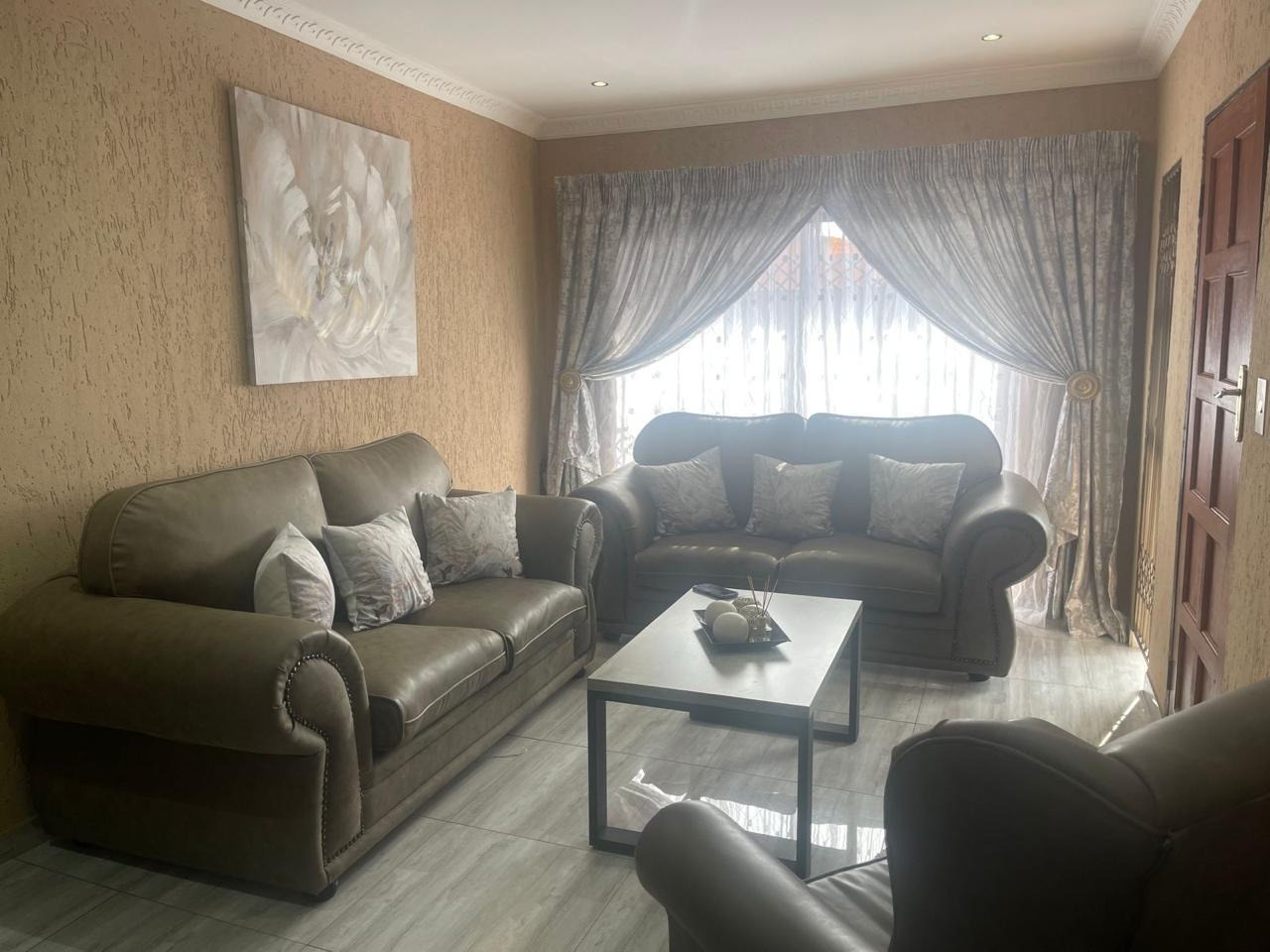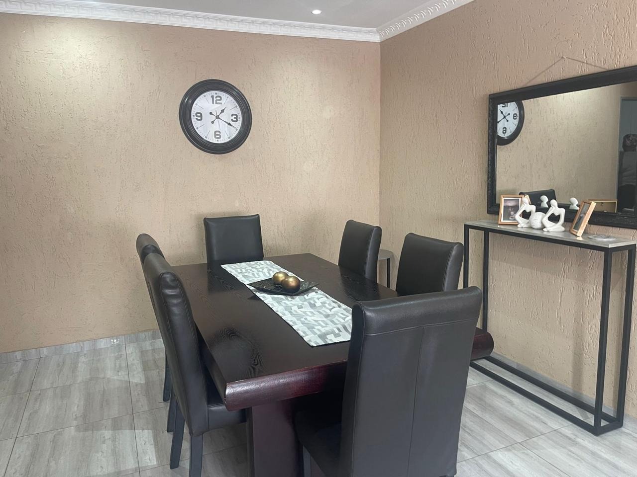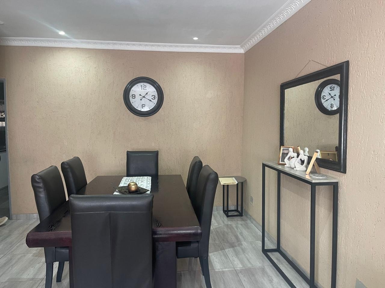 Step into this inviting 3-bedroom, 2-bathroom family home located in the vibrant suburban community of Soweto. The property immediately impresses with its modern grey exterior, complemented by light trim and a well-maintained brick paved entrance, offering a neat and welcoming first impression. A covered porch area adds to the home's curb appeal, setting the stage for comfortable living within. Inside, the residence boasts a contemporary design with tiled flooring throughout, ensuring both style and easy maintenance. The heart of the home is its modern kitchen, featuring extensive white cabinetry, contrasting dark countertops, and a sleek black tiled backsplash. Equipped with an integrated oven, hob, and extractor fan, alongside a modern stainless steel refrigerator, this kitchen provides ample storage and workspace for culinary enthusiasts. The living and dining areas are equally well-appointed, offering comfortable spaces for relaxation and entertaining, benefiting from natural light. The home comprises three well-proportioned bedrooms and two bathrooms, providing comfortable accommodation for the entire family. While there are no garages, the property offers convenient off-street parking for up to four vehicles, a practical feature for residents and guests alike. Security is a key consideration, with robust security bars fitted on all windows and doors, providing peace of mind. This property offers a secure and functional living environment in a well-established South African neighbourhood. The area is known for its community spirit and accessibility. Key Features: * 3 Bedrooms, 2 Bathrooms * Modern Kitchen with Integrated Appliances * Spacious Living and Dining Areas * Tiled Flooring Throughout * Ample Off-Street Parking (4 vehicles) * Enhanced Security with Window and Door Bars * Contemporary Grey Exterior * Brick Paved Entrance