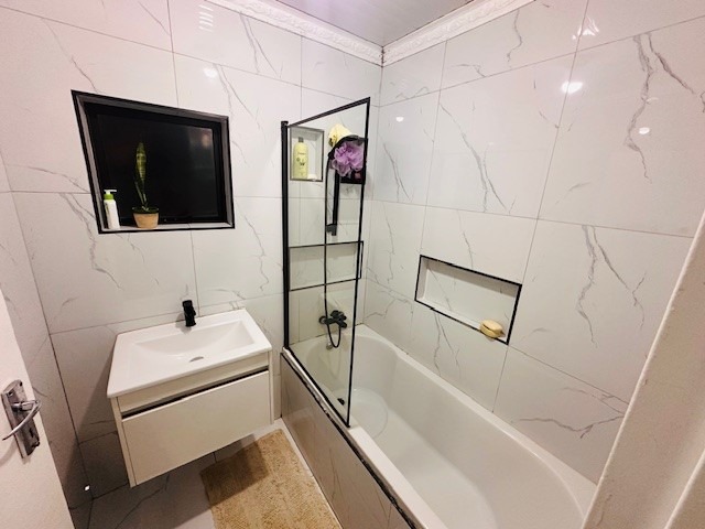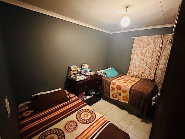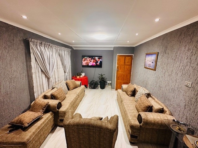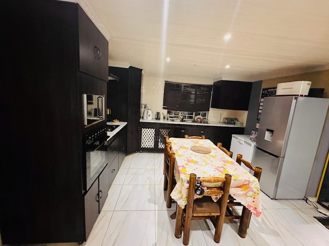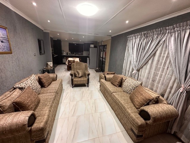 Discover this inviting 4-bedroom, 2.5-bathroom family home in Eldorado Park, Soweto. With a 200 sqm floor size on a 307 sqm erf, this property offers comfortable living. The durable brick exterior features a double garage and additional parking for three vehicles. Security is enhanced with a fence, security gate, and burglar bars, ensuring peace of mind. Step inside to an open-plan layout seamlessly connecting the living, dining, and kitchen areas. Consistent light-colored tiled flooring throughout enhances the bright and airy feel. The lounge area is well-proportioned for relaxation and entertainment, illuminated by modern recessed lighting. The modern kitchen is equipped with sleek dark cabinetry, a built-in oven, and microwave, catering to all culinary needs. An integrated dining area within this open space facilitates easy family meals. The four well-sized bedrooms each feature practical built-in wardrobes. The main bedroom includes an ensuite, complemented by an additional 1.5 bathrooms. Outside, the double garage provides secure parking. While the front yard offers landscaping potential, the paved front area ensures practical access. This pet-friendly suburban residence is an ideal choice for families seeking a functional and secure home in a well-established community. Key Features: * 4 Bedrooms, 2.5 Bathrooms (1 Ensuite) * Open-Plan Living, Dining, and Kitchen * Modern Kitchen with Built-in Appliances * Double Garage and 3 Additional Parking Spaces * Tiled Flooring Throughout * Built-in Wardrobes * Security Gate, Burglar Bars, and Fence * Pet-Friendly Property * Located in Eldorado Park, Soweto
