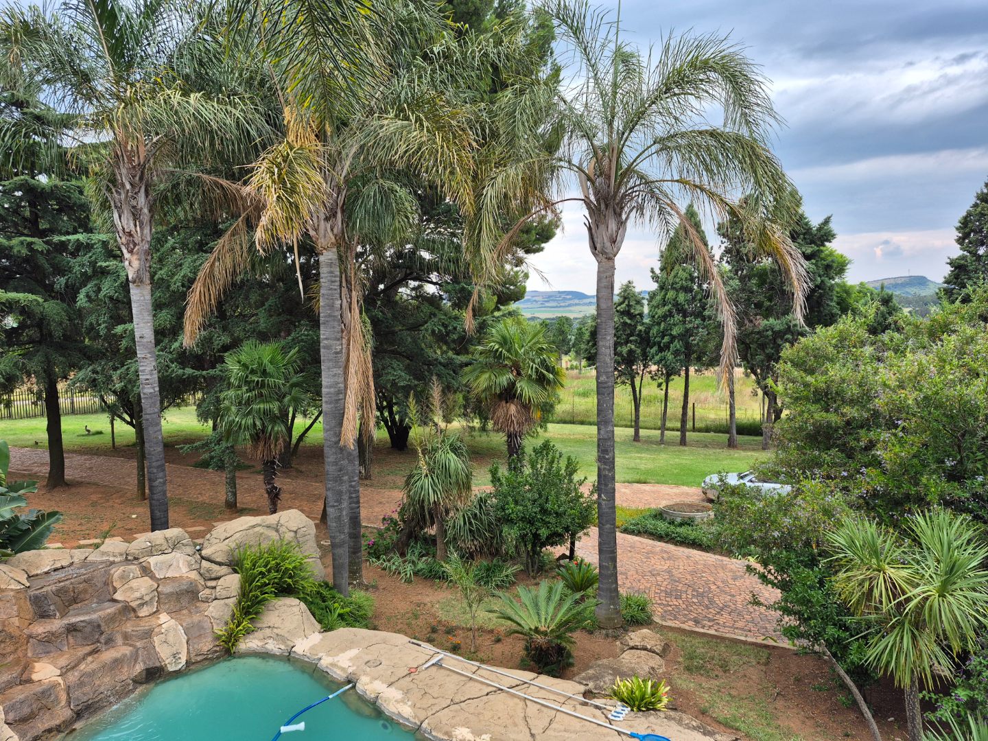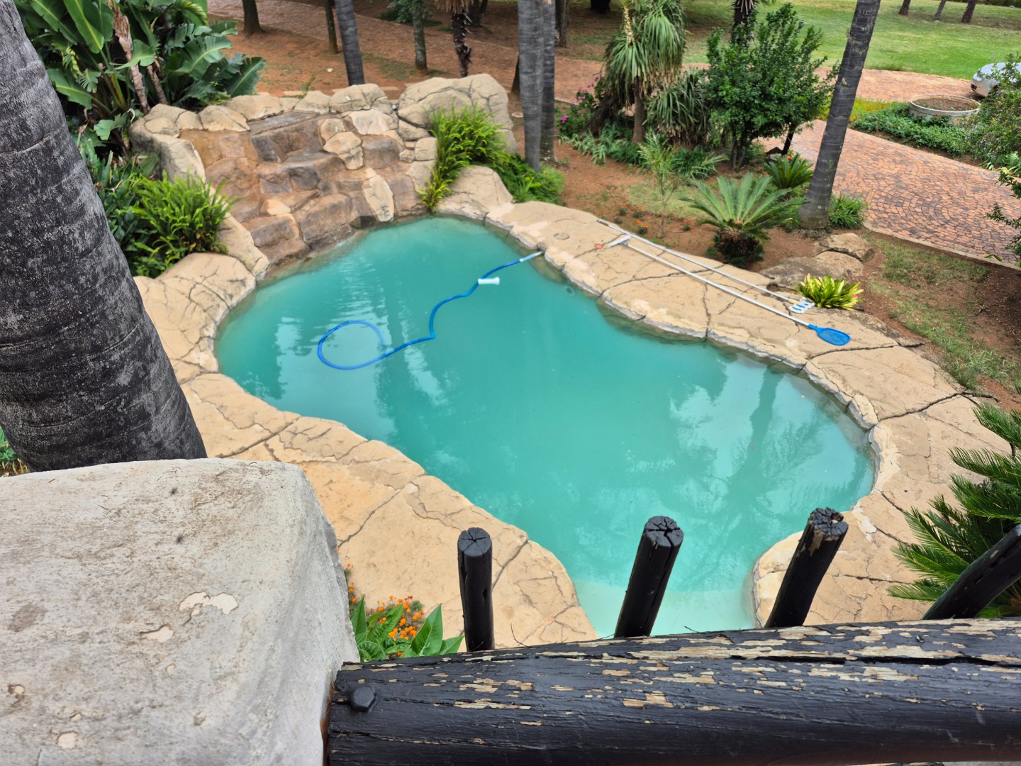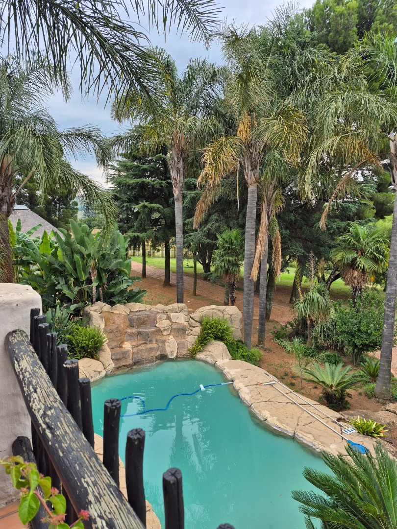 Nestled within the serene expanse of Drumblade AH, Walkerville, this magnificent country estate offers an unparalleled lifestyle of luxury and tranquility. Spanning an impressive 5.90 hectares, this property presents a captivating kerb appeal with its unique architectural style, featuring a charming thatched-roof structure and a multi-story main residence, all set against a backdrop of lush, mature landscaping and distant scenic views. Step inside to discover an interior designed for grand living and intimate comfort. The residence boasts an expansive layout with two sophisticated kitchens, two elegant dining rooms, and three versatile lounges, including a dedicated family TV room. An inviting entrance hall, a private study, and the allure of open-plan living spaces are enhanced by special doors, ambient special lights, and a cozy fireplace, ensuring every moment is imbued with warmth and style. Air conditioning throughout provides year-round comfort. Accommodation is generous, featuring seven opulent bedrooms and four meticulously appointed bathrooms, including a luxurious en-suite and a convenient guest toilet. This thoughtful design caters effortlessly to large families or those who frequently host guests, offering privacy and comfort for all. A separate private garden cottage and staff quarters further enhance the property's versatility and convenience. Embrace the quintessential outdoor lifestyle with a sparkling swimming pool, complete with a captivating rock waterfall feature, surrounded by tropical landscaping that creates a private oasis. Expansive patios and balconies invite al fresco dining and relaxation, while the meticulously maintained garden and paved pathways lead to an impressive seven-car garage, providing ample space for vehicles and storage. Pets are welcome to roam the secure, fenced grounds. Security is paramount, with an alarm system, CCTV surveillance, intercom, access gate, security gate, and burglar bars ensuring peace of mind. The estate also champions self-sufficiency with a borehole and multiple water tanks, underscoring a commitment to sustainable living. Situated in a desirable cul-de-sac, this property offers an exclusive retreat from the everyday. Key Features: * 7 Bedrooms, 4 Bathrooms (1 En-suite) * 2 Kitchens, 2 Dining Rooms, 3 Lounges * Private Study & Family TV Room * Sparkling Swimming Pool with Rock Waterfall * Expansive 5.90 Hectare Erf * 7 Garages & Staff Quarters * Private Garden Cottage * Borehole & Water Tanks * Alarm System, CCTV, Intercom, Access Gate * Air Conditioning & Fireplace
