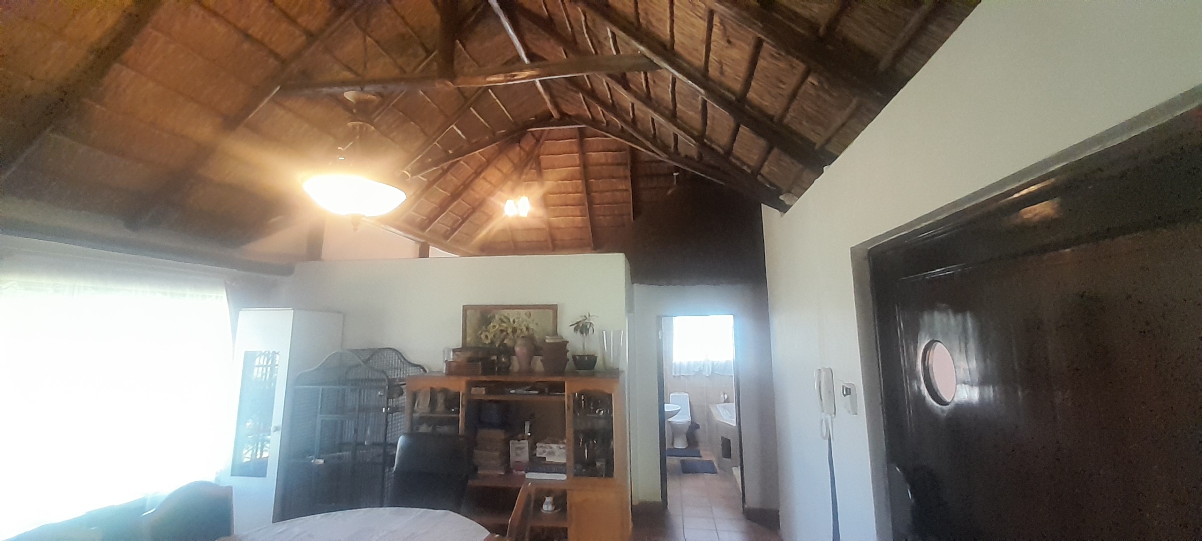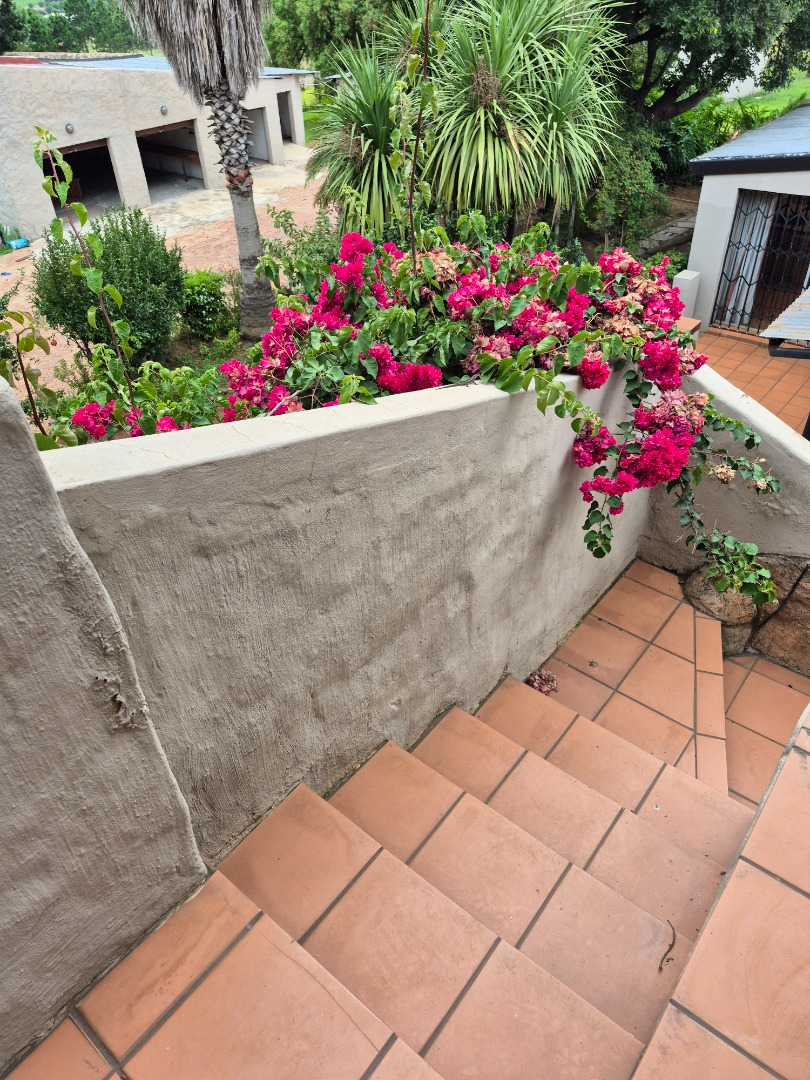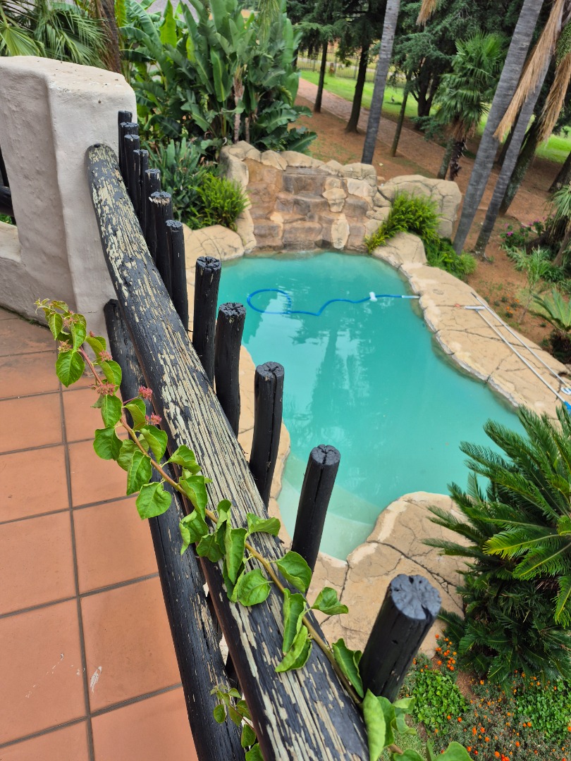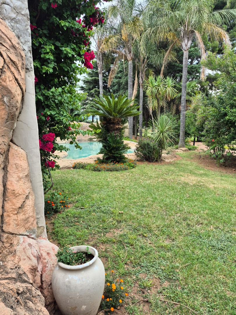 Nestled within the serene expanse of Drumblade AH, Walkerville, this magnificent country estate offers an unparalleled lifestyle of luxury and tranquility. Spanning an impressive 5.90 hectares, this property presents a captivating kerb appeal with its unique architectural style, featuring a charming thatched-roof structure and a multi-story main residence, all set against a backdrop of lush, mature landscaping and distant scenic views. Step inside to discover an interior designed for grand living and intimate comfort. The residence boasts an expansive layout with two sophisticated kitchens, two elegant dining rooms, and three versatile lounges, including a dedicated family TV room. An inviting entrance hall, a private study, and the allure of open-plan living spaces are enhanced by special doors, ambient special lights, and a cozy fireplace, ensuring every moment is imbued with warmth and style. Air conditioning throughout provides year-round comfort. Accommodation is generous, featuring seven opulent bedrooms and four meticulously appointed bathrooms, including a luxurious en-suite and a convenient guest toilet. This thoughtful design caters effortlessly to large families or those who frequently host guests, offering privacy and comfort for all. A separate private garden cottage and staff quarters further enhance the property's versatility and convenience. Embrace the quintessential outdoor lifestyle with a sparkling swimming pool, complete with a captivating rock waterfall feature, surrounded by tropical landscaping that creates a private oasis. Expansive patios and balconies invite al fresco dining and relaxation, while the meticulously maintained garden and paved pathways lead to an impressive seven-car garage, providing ample space for vehicles and storage. Pets are welcome to roam the secure, fenced grounds. Security is paramount, with an alarm system, CCTV surveillance, intercom, access gate, security gate, and burglar bars ensuring peace of mind. The estate also champions self-sufficiency with a borehole and multiple water tanks, underscoring a commitment to sustainable living. Situated in a desirable cul-de-sac, this property offers an exclusive retreat from the everyday. Key Features: * 7 Bedrooms, 4 Bathrooms (1 En-suite) * 2 Kitchens, 2 Dining Rooms, 3 Lounges * Private Study & Family TV Room * Sparkling Swimming Pool with Rock Waterfall * Expansive 5.90 Hectare Erf * 7 Garages & Staff Quarters * Private Garden Cottage * Borehole & Water Tanks * Alarm System, CCTV, Intercom, Access Gate * Air Conditioning & Fireplace
