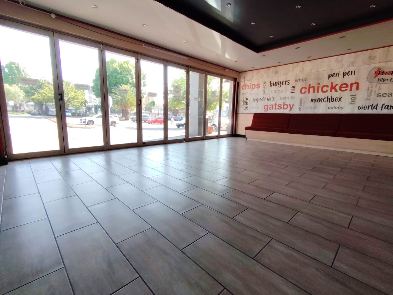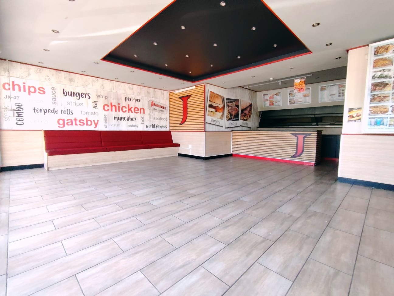 This exceptional 250sqm commercial rental opportunity is ideally situated in the vibrant Alberton Central node, offering high visibility and significant foot traffic within the established Alberton Crossing complex. The unit presents a versatile open-plan layout, previously operating as a fast-food establishment, featuring expansive glass frontage that floods the interior with natural light and ensures excellent street exposure. Modern tiled flooring and recessed lighting contribute to a professional and inviting atmosphere, complemented by existing built-in bench seating and a service counter that can be adapted or removed to suit diverse business models.