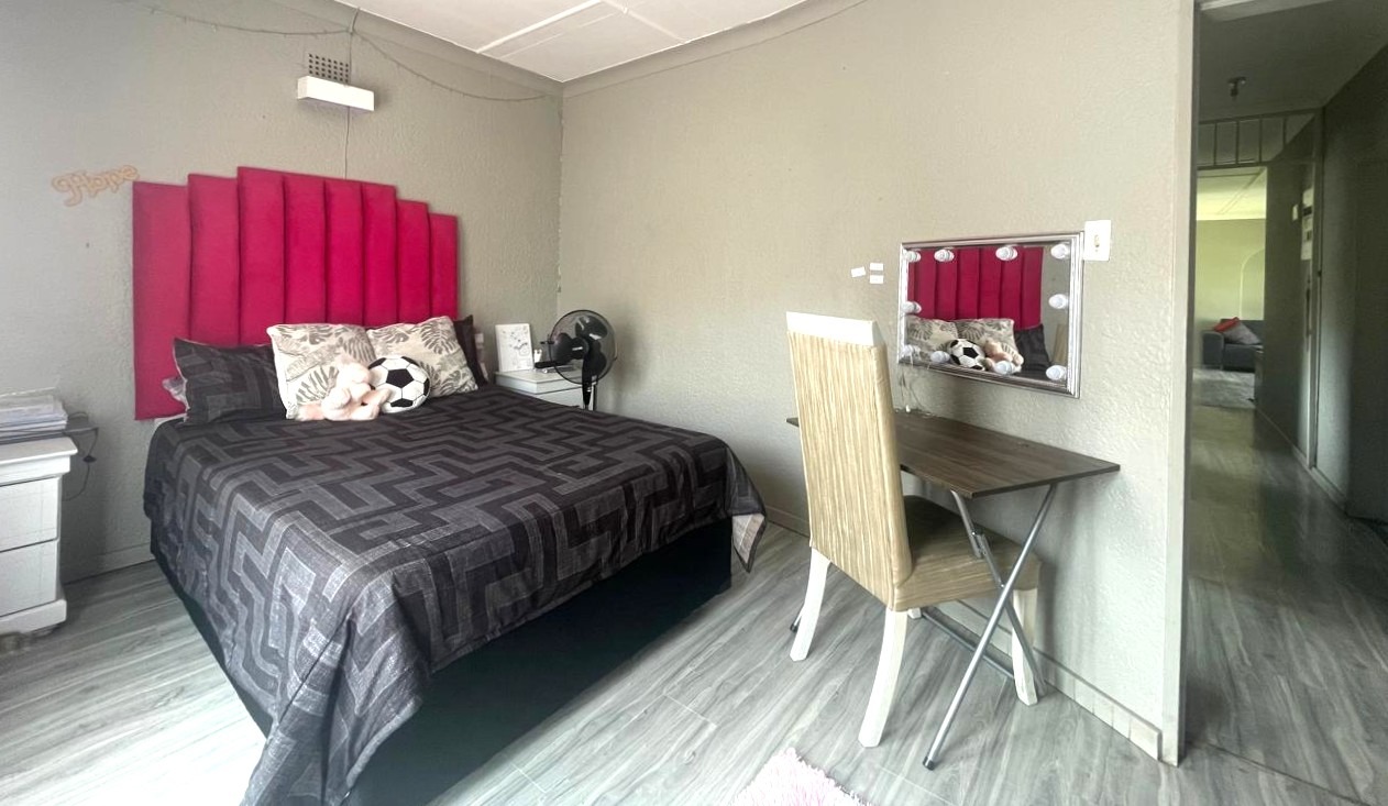 Discover this inviting 3-bedroom, 2-bathroom rental home spanning 150 square metres, perfectly situated in the suburban heart of Raceview, Alberton. Designed for comfortable family living, this residence features two spacious lounges, a dedicated dining room, and a versatile study, providing ample space for relaxation, entertaining, and work-from-home needs. The interiors boast modern wood-look laminate flooring and neutral wall colours, creating a bright and welcoming atmosphere throughout, complemented by an open-plan layout that enhances the sense of space.