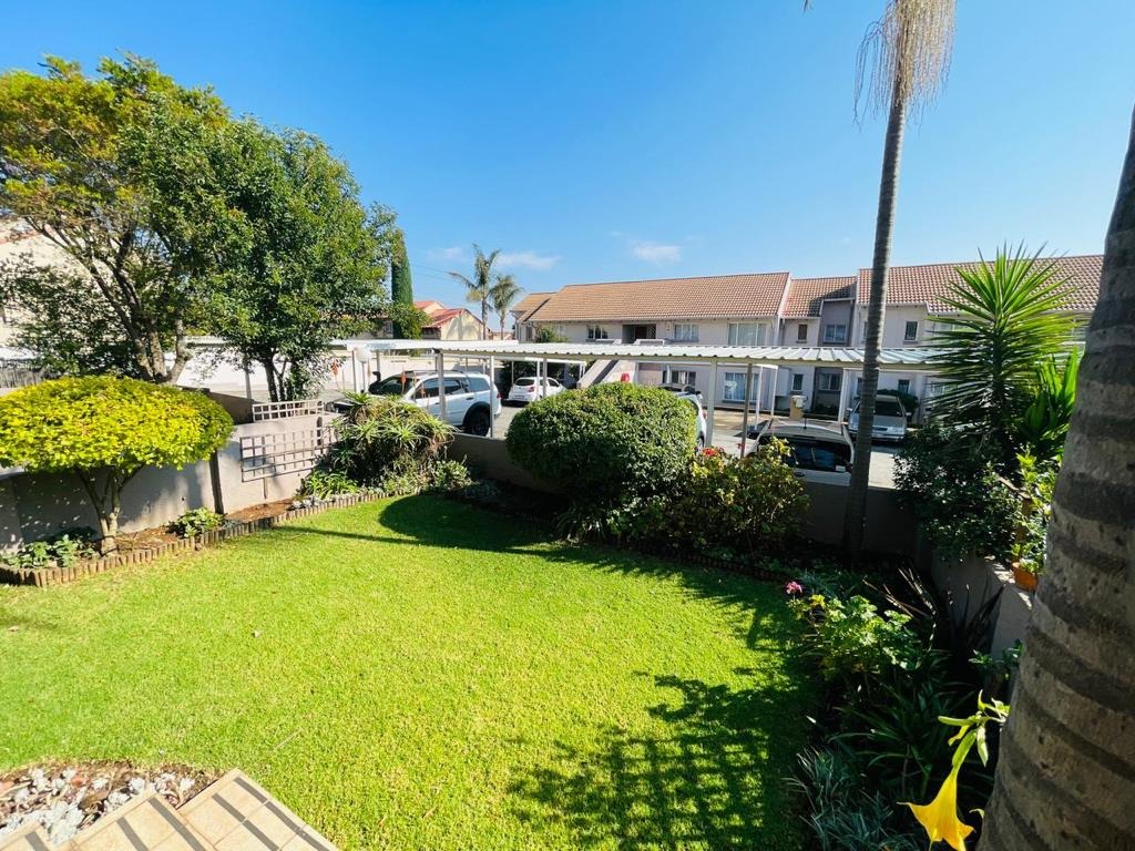 Step outside to your private, well-maintained garden, complete with a lush lawn and mature tropical landscaping, including palm trees. A covered patio provides an ideal spot for outdoor enjoyment, whether for morning coffee or evening unwinding. The unit also benefits from a dedicated covered parking bay, ensuring convenience and protection for your vehicle. Pets are allowed, making this an ideal home for animal lovers.