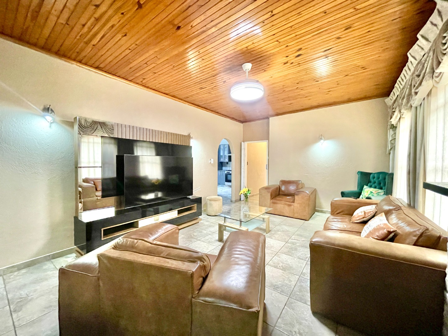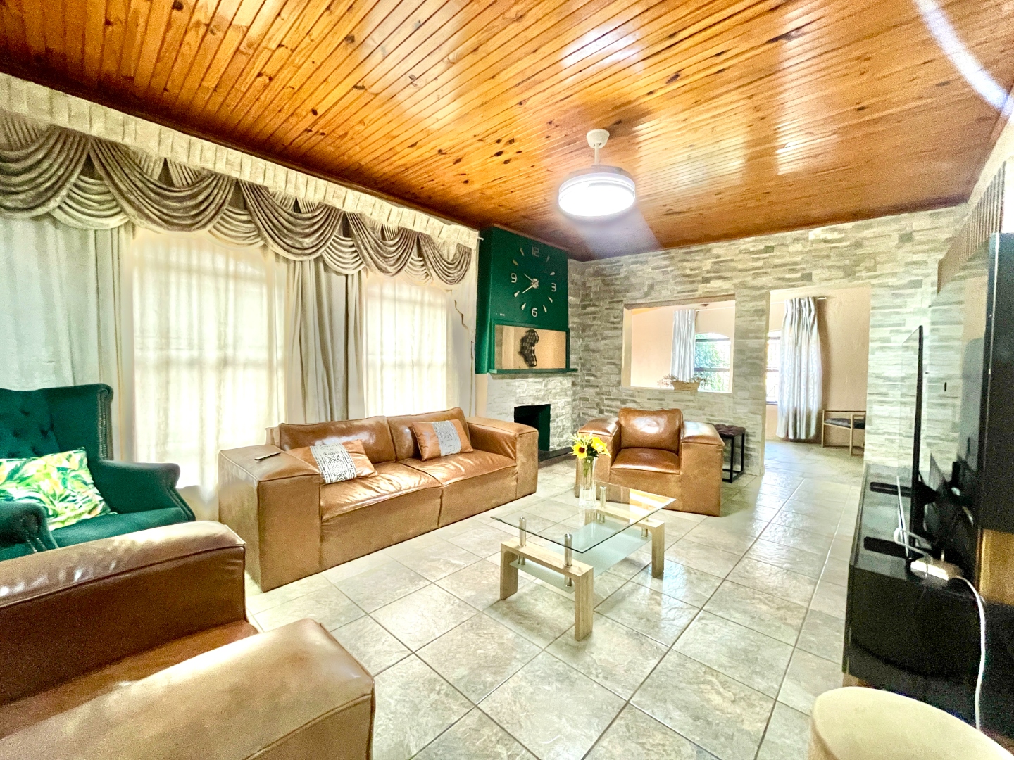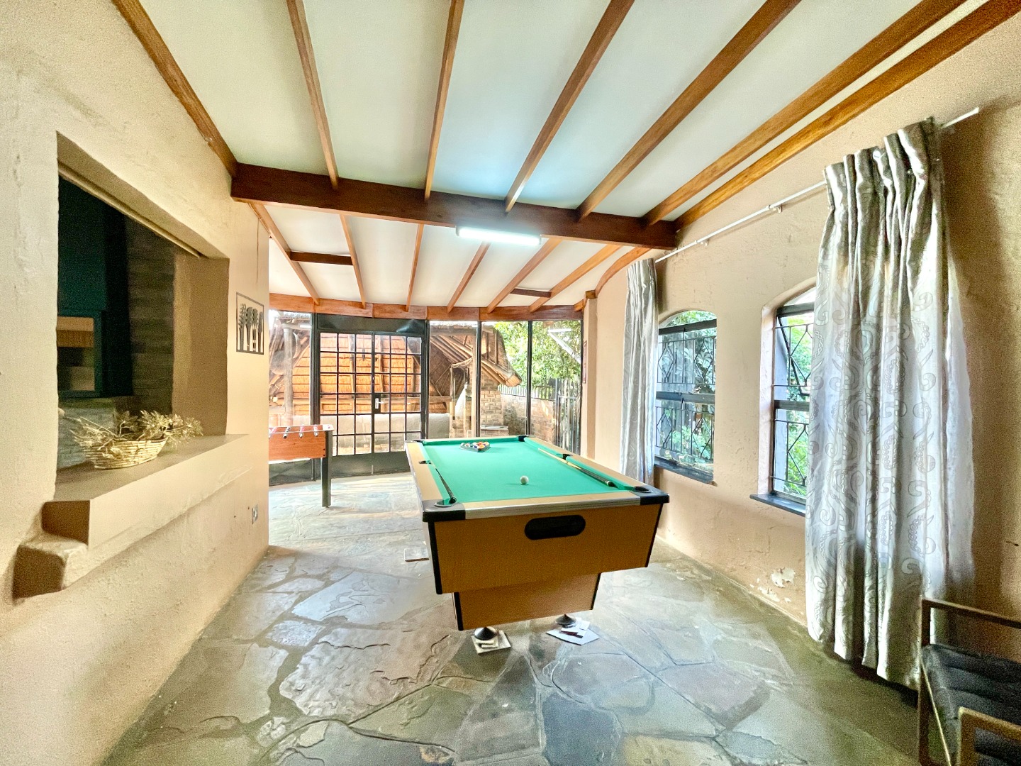 Discover this inviting 4-bedroom, 2.5-bathroom residential rental property located in the desirable suburb of Glenanda, Johannesburg. Spanning a generous 250 sqm under roof on a 991 sqm erf, this home offers ample space for comfortable living and entertaining. The interior features two lounges, a dedicated dining room, and a functional kitchen, providing versatile areas for relaxation and family gatherings. Tiled flooring throughout ensures durability and easy maintenance, complemented by a distinctive living room with a rustic wooden plank ceiling, stone accent wall, and a fireplace. Designed for a vibrant lifestyle, this property boasts a dedicated game room, complete with space for a pool and foosball table. This area features high beamed ceilings, natural stone flooring, and glass doors opening to the outdoor area. Enjoy sunny days by the private swimming pool and make use of the braai room for entertaining. With a spacious garden and pet-friendly policy, it's ideal for families. The property also includes an additional flatlet, offering flexible living arrangements or extra space. Security is enhanced by a robust brick exterior, a paved driveway, and perimeter walls topped with security spikes, ensuring peace of mind. The property offers an impressive six garages and two additional parking spaces, providing abundant secure parking for multiple vehicles. Fibre connectivity is available, catering to modern work-from-home or entertainment needs. Situated in this established suburban area, residents benefit from a convenient location within Johannesburg, offering access to local amenities and transport routes. Key Features: * 4 Bedrooms, 2.5 Bathrooms * 6 Garages, 2 Parking Spaces * Private Swimming Pool * Dedicated Game Room * Braai Room * Spacious Garden * Pet-Friendly * Fibre Ready * Includes Flatlet