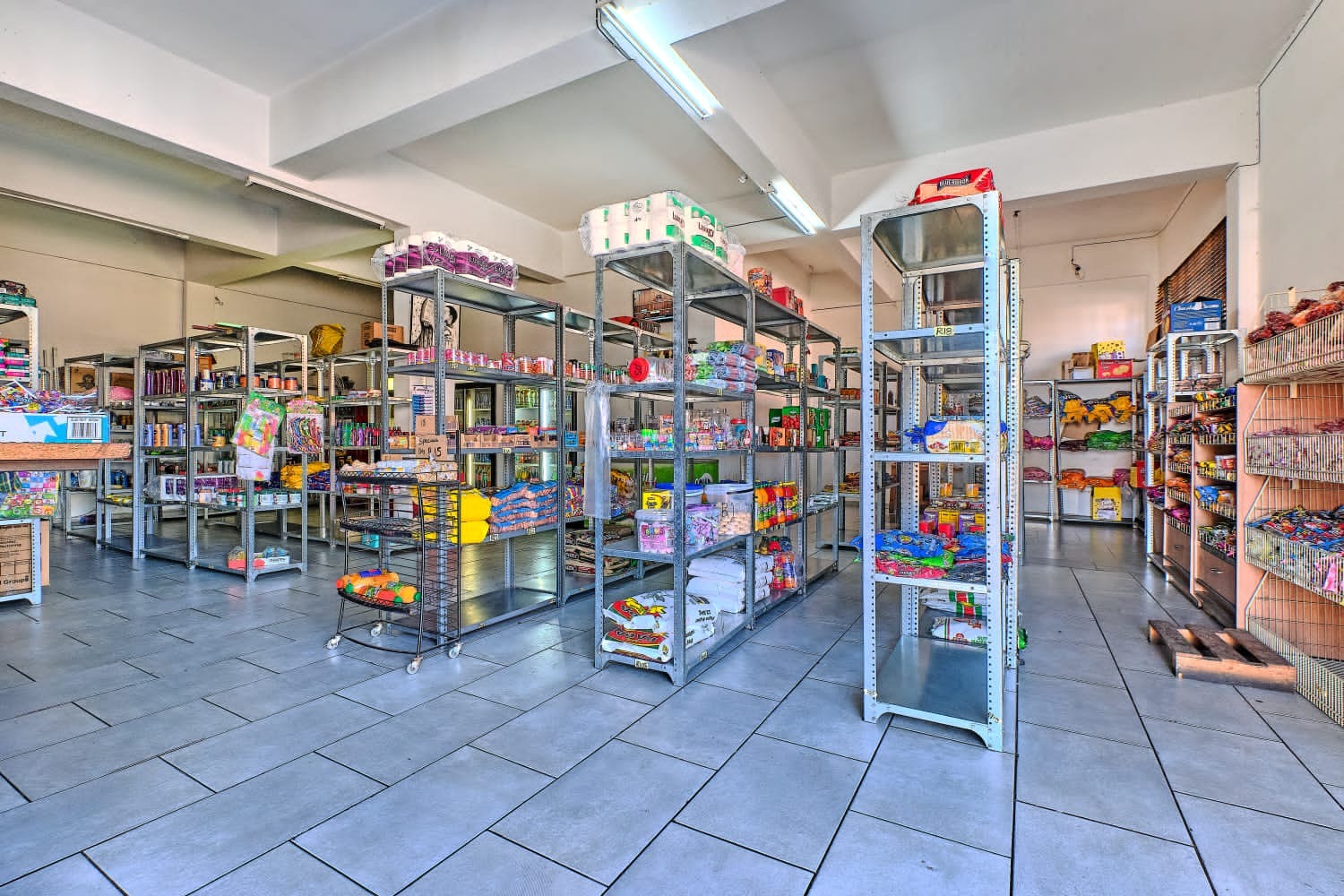 - Structure: Solid building with tiled flooring and high ceilings, offering flexibility for internal customization or partitioning.