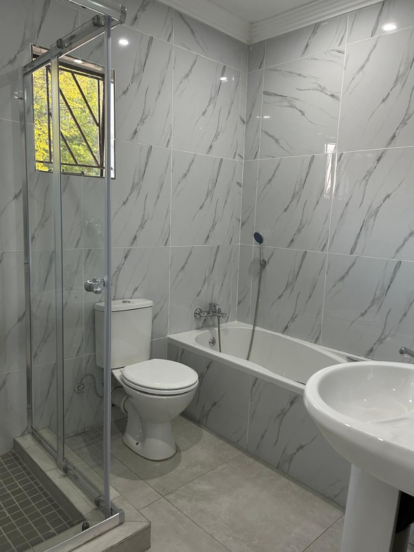 Both bedrooms are spacious and fitted with large built-in closets, offering ample storage. The modern full bathroom is neat and well-appointed, catering to all your needs. The kitchen is functional and stylish, equipped with gas stove cupboard space, and a double sink. Outside, enjoy access to a sparkling swimming pool and a dedicated entertainment area — perfect for relaxing weekends or hosting family and friends.
