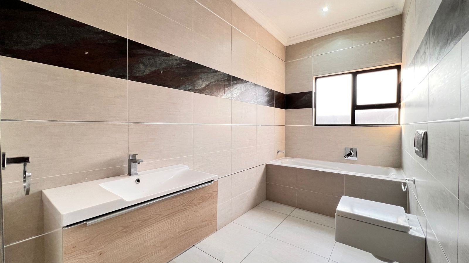 The expansive lounge and dining area flow effortlessly into a modern, fully equipped kitchen, complete with ample cupboard space and additional storage — perfect for family life and hosting guests. - Private, Well-Maintained Garden