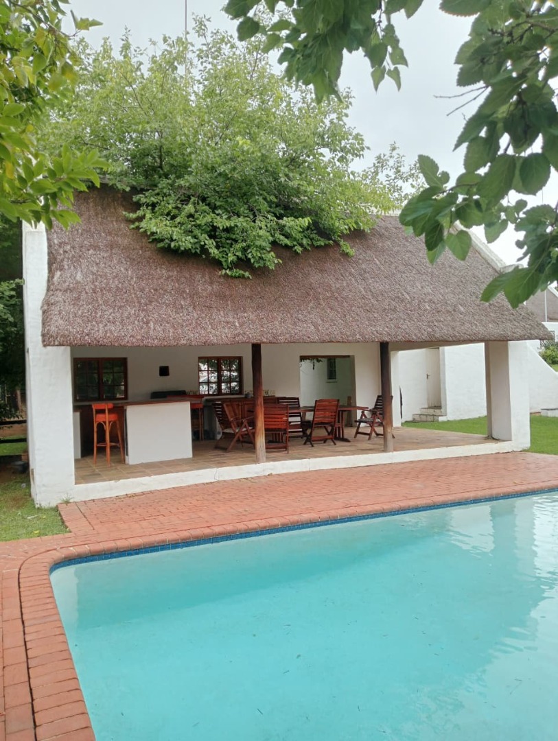 The cottage provides a comfortable and well-designed living experience. The open-plan lounge, dining area, and kitchen create an inviting atmosphere, and the private patio leads into an enclosed garden area. The property includes a washing machine, uncapped internet at no extra charge, and shared use of a swimming pool and poolside braai area. Security features include an electric fenced perimeter, night security, and twenty-four-hour camera monitoring. The lease is offered on a month-to-month basis. Viewings are by appointment only.